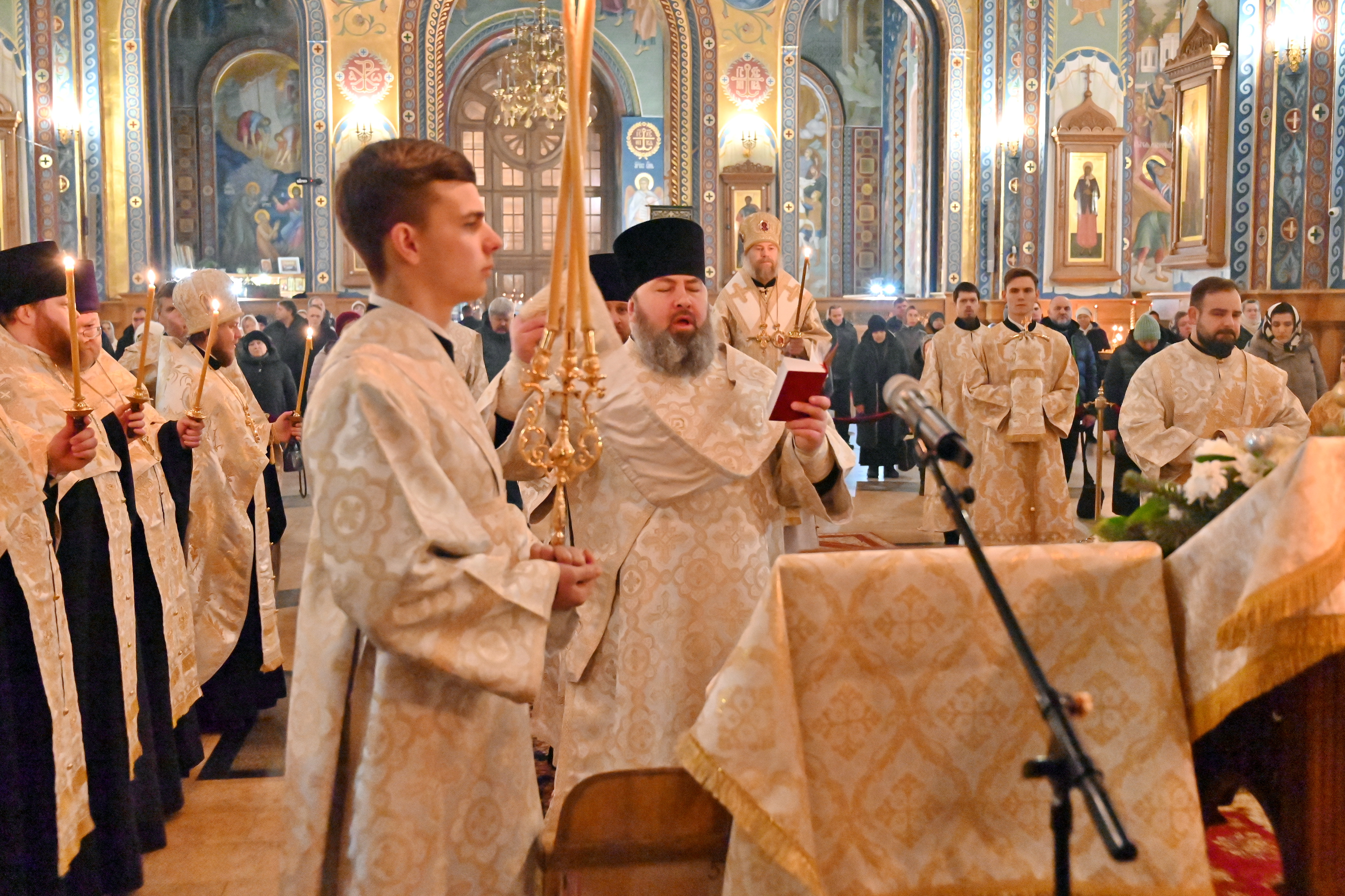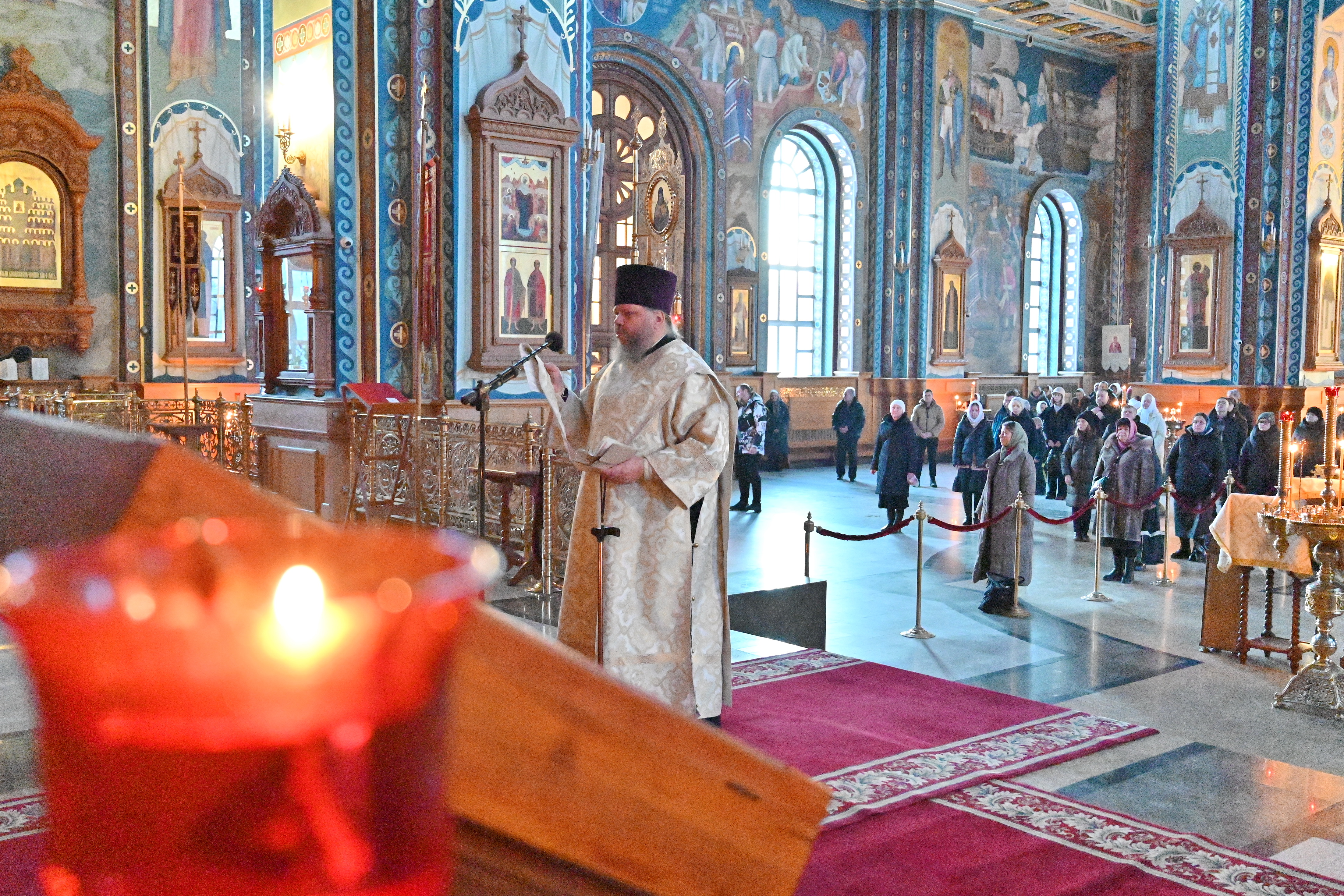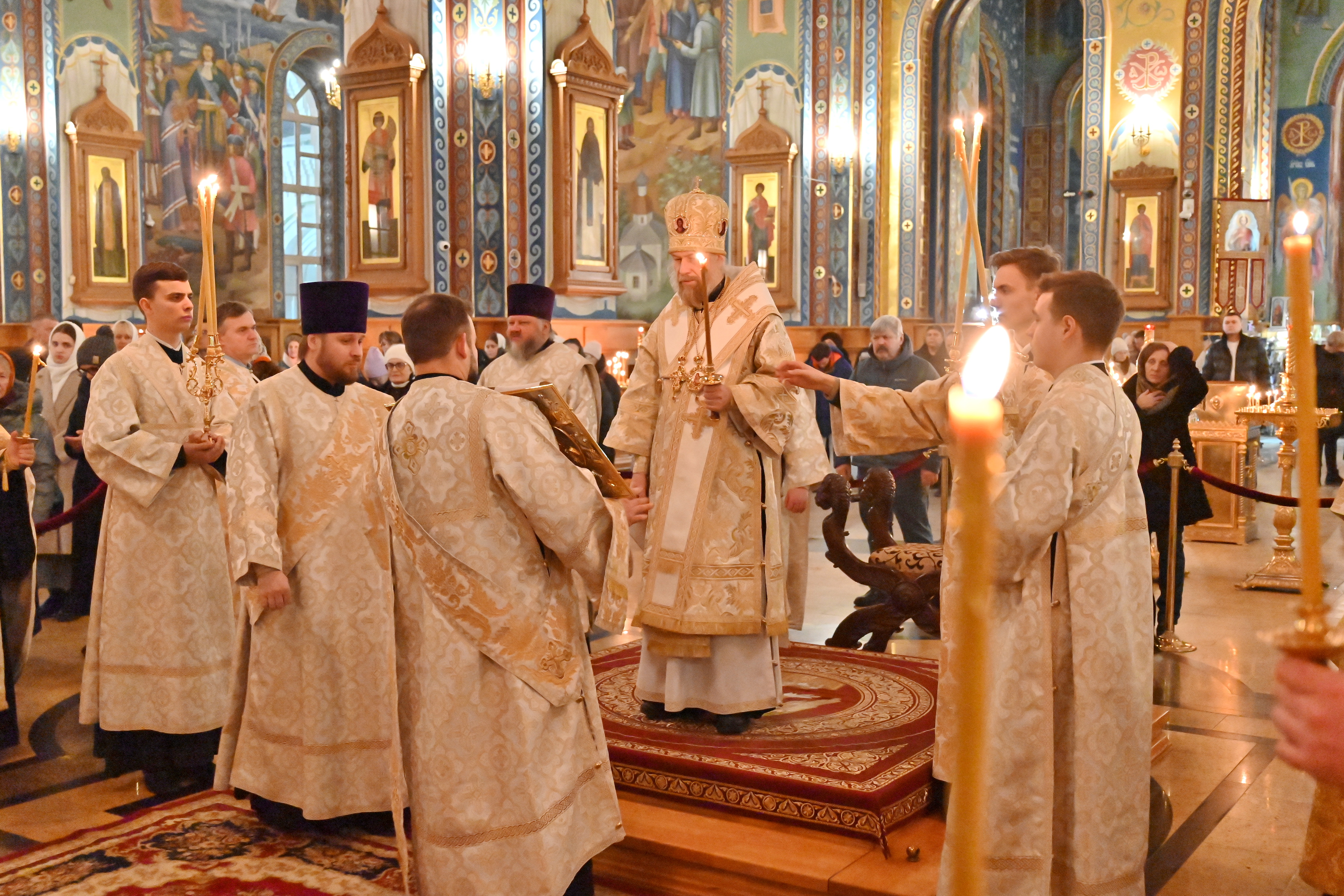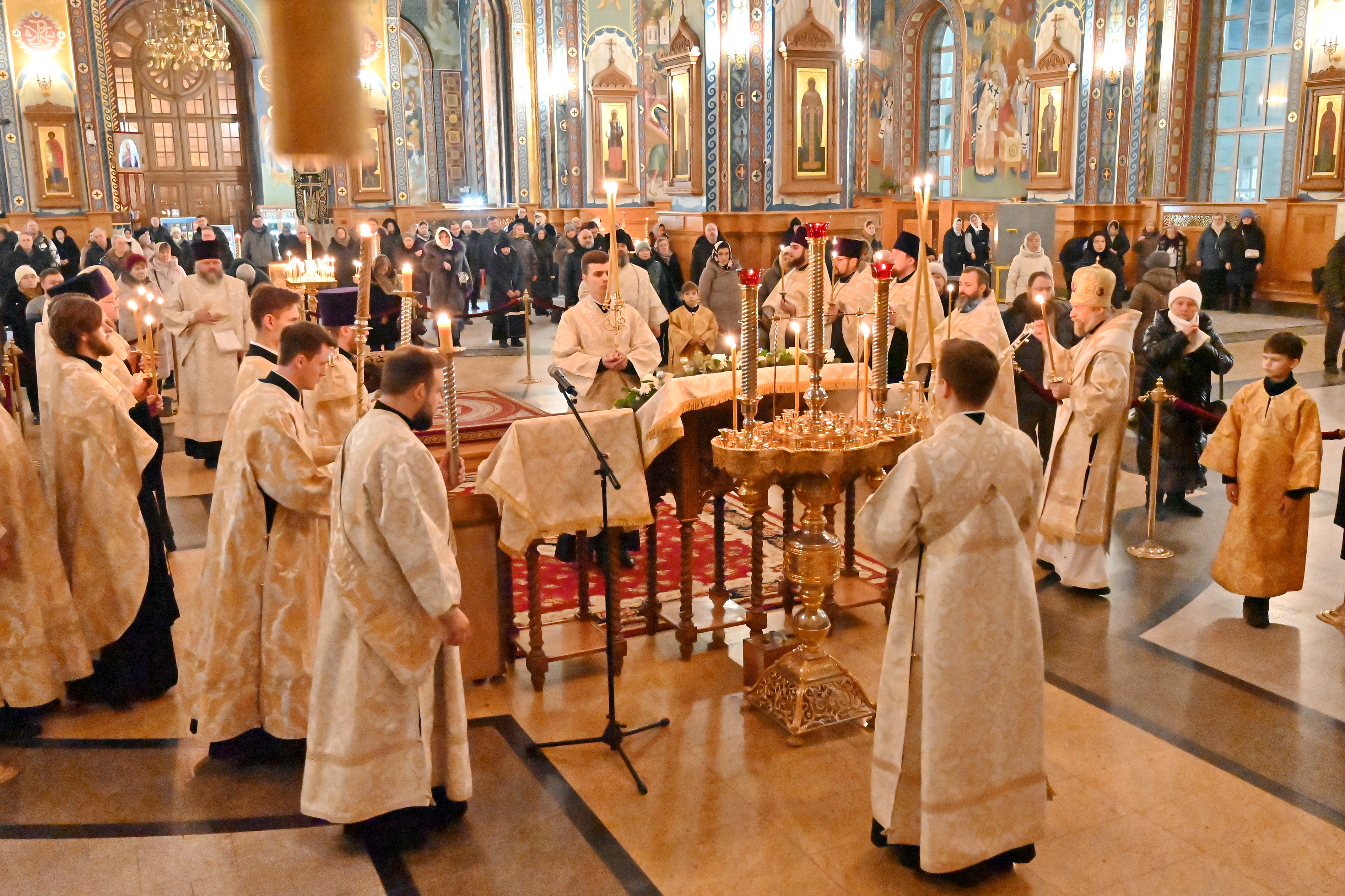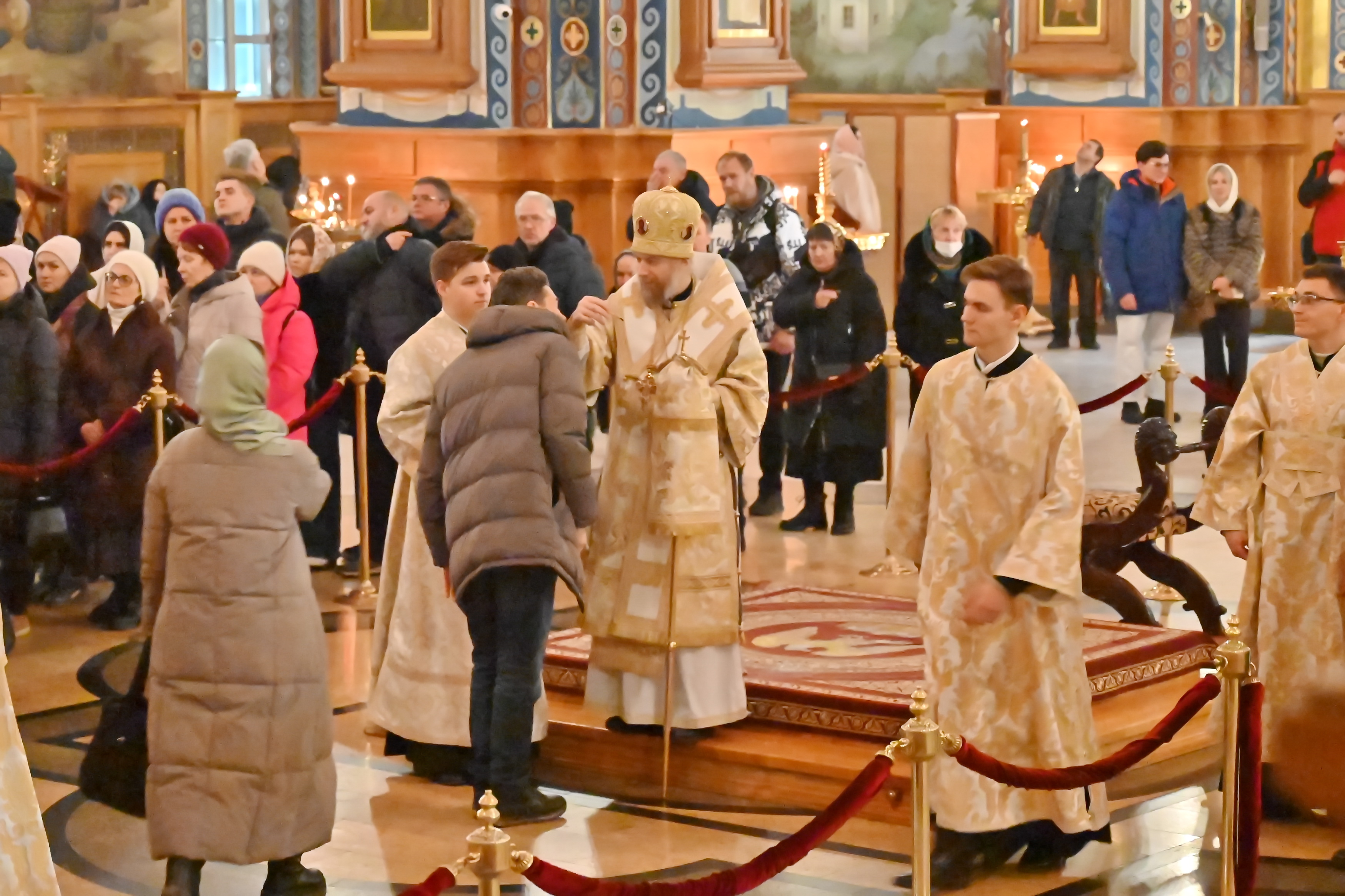 Богослужебные песнопения исполнял митрополичий смешанный хор Благовещенского кафедрального собора под управлением регента Ильи Ижогина.