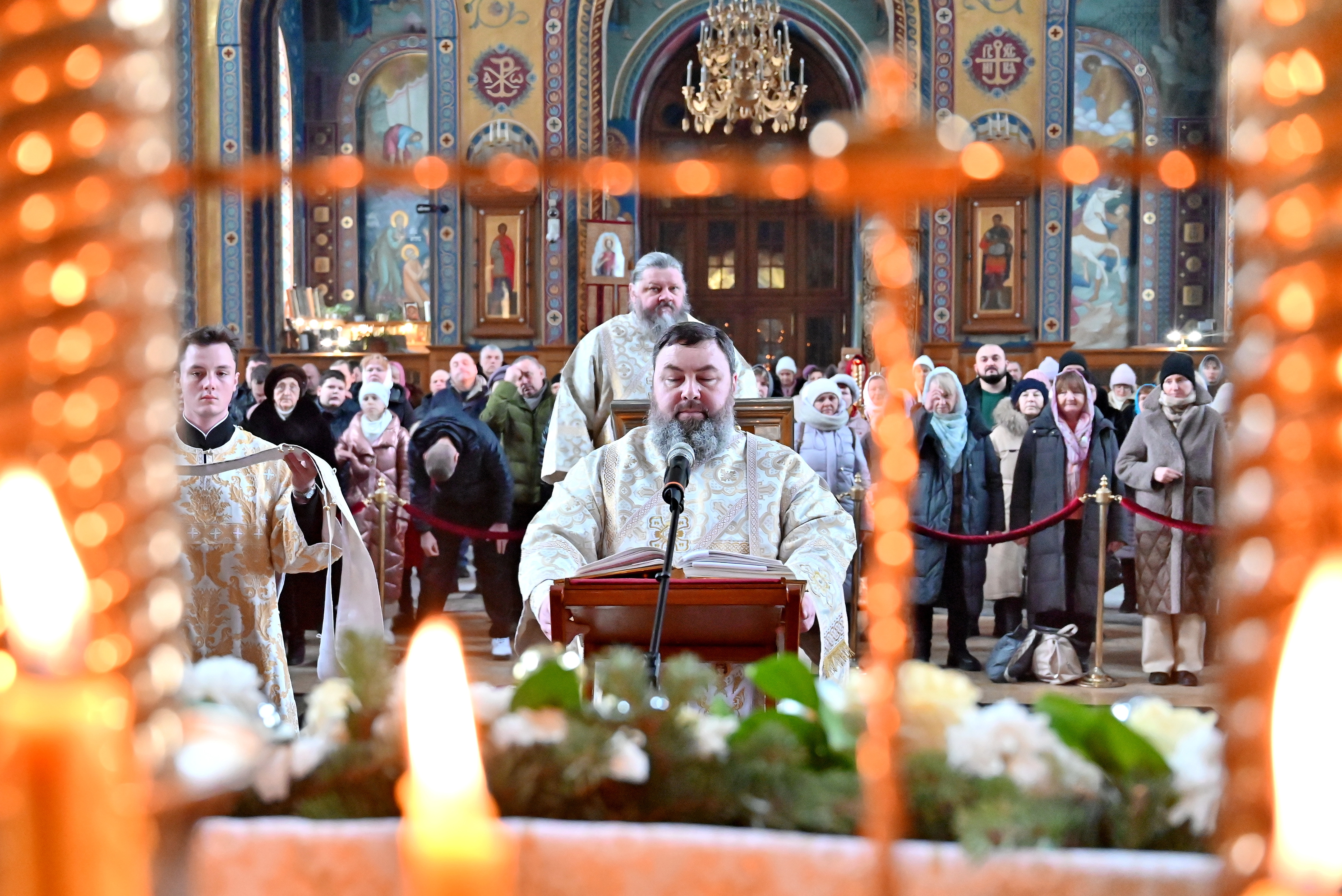 На сугубой ектении были произнесены прошения: "...о еже прияти молитвы нас недостойных рабов Твоих в сию годину испытания..." и прошение о "Преосвященных архипастырях, пастырях, монашествующих и мирянах земли Украинския, о единстве Церкви Христовы ревнующих, в заточении и гонениях сущих". Затем митрополит Леонтий вознес молитву о Святой Руси. По благословению Святейшего Патриарха Московского и всея Руси Кирилла эта молитва возносится во всех храмах Русской Православной Церкви.