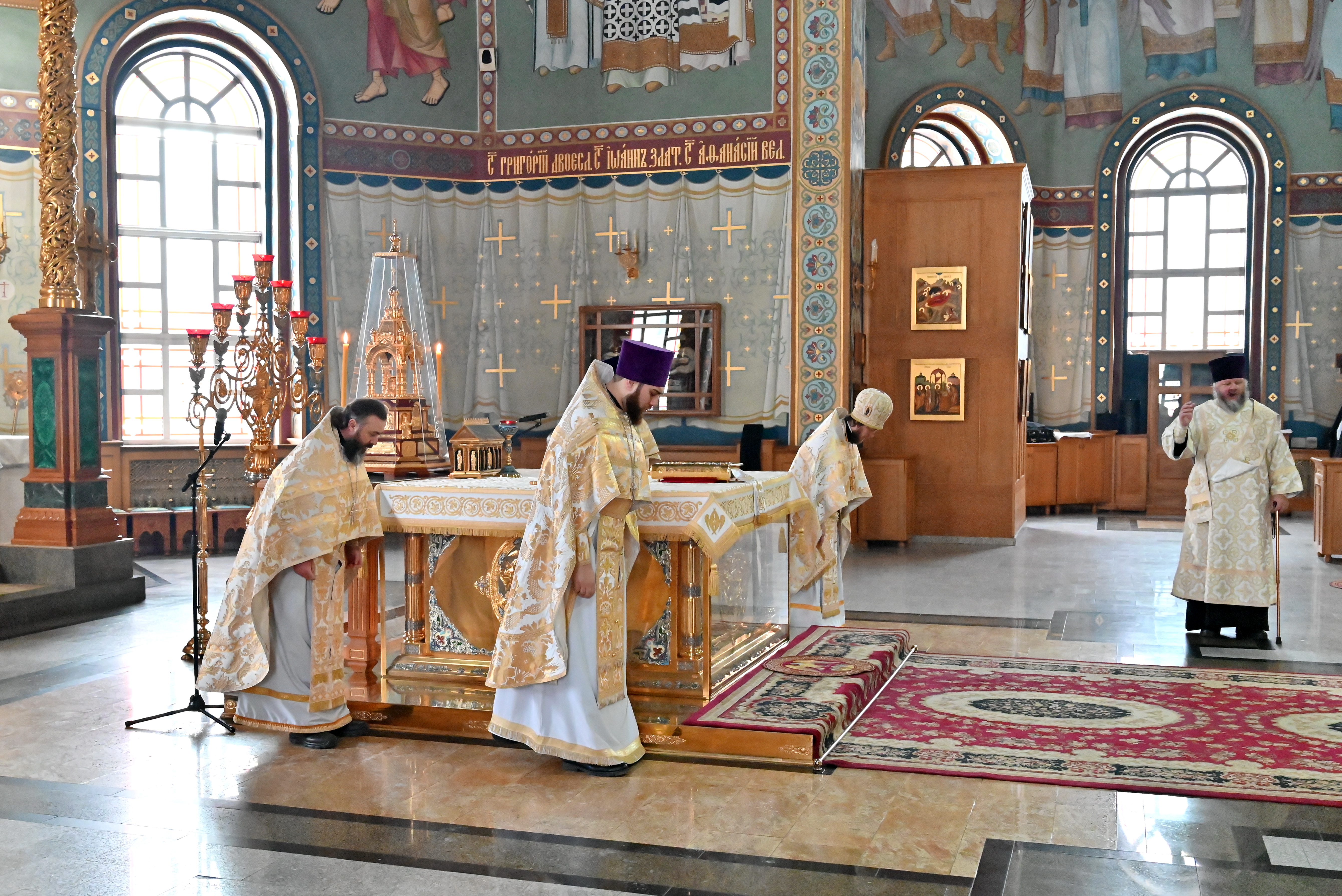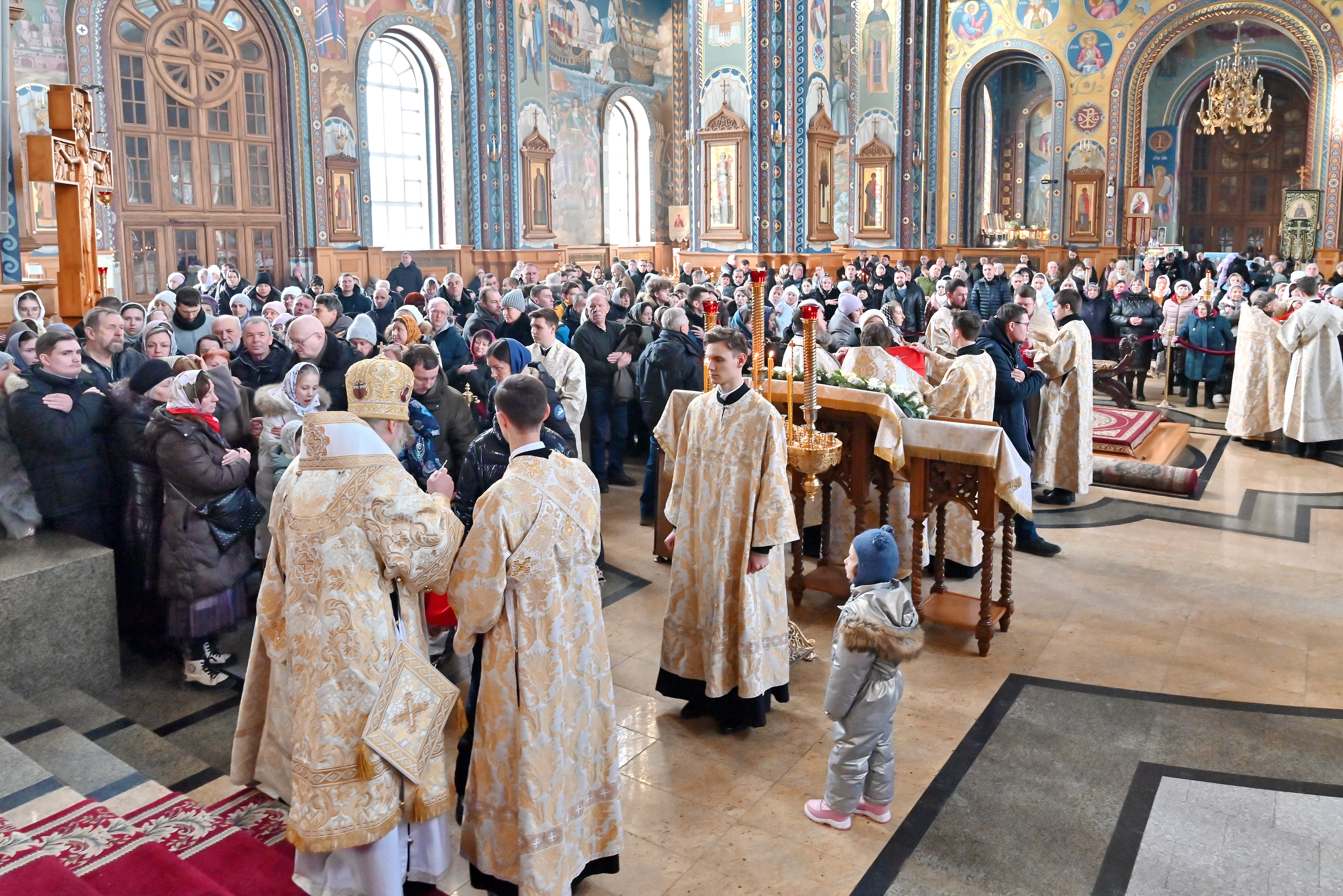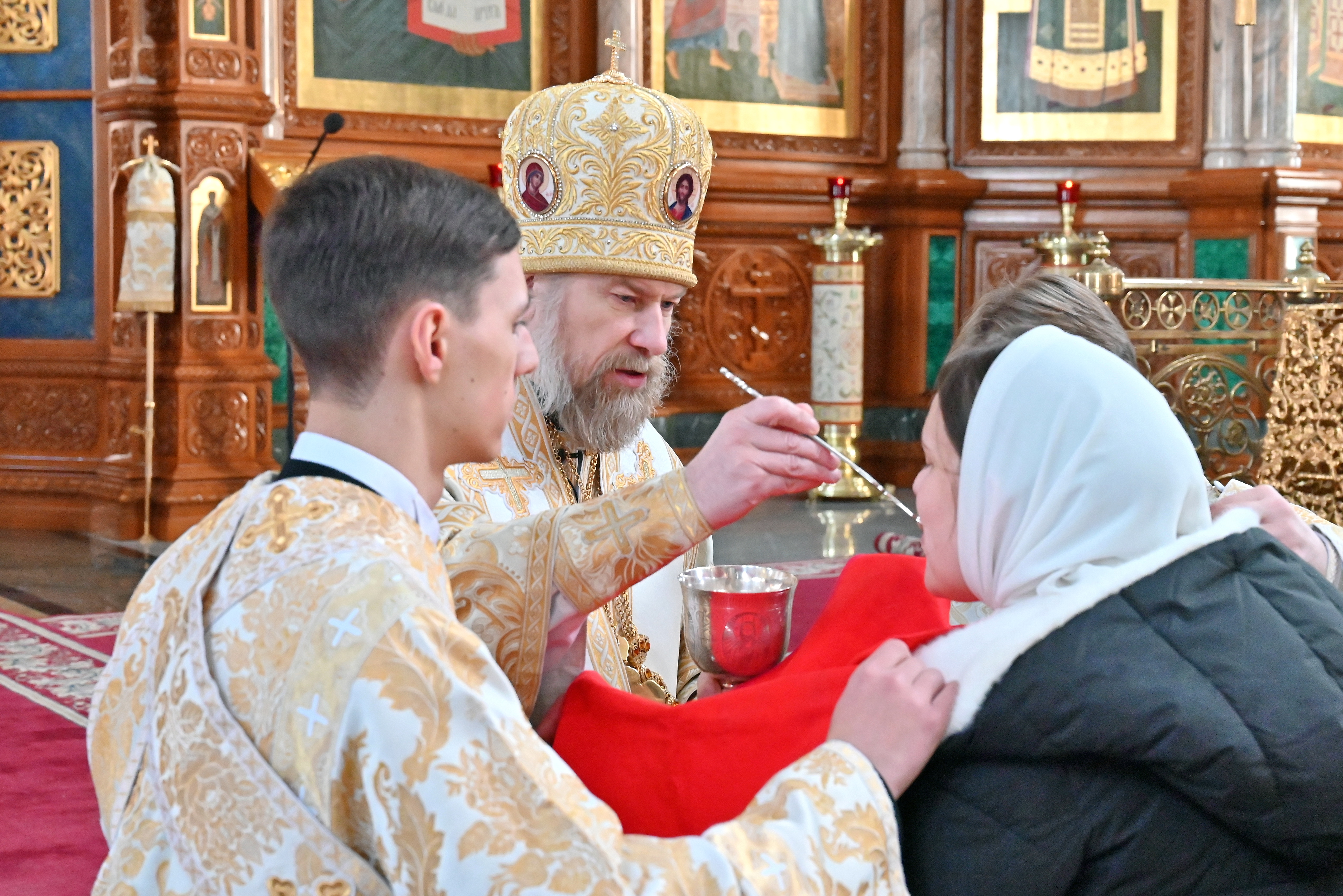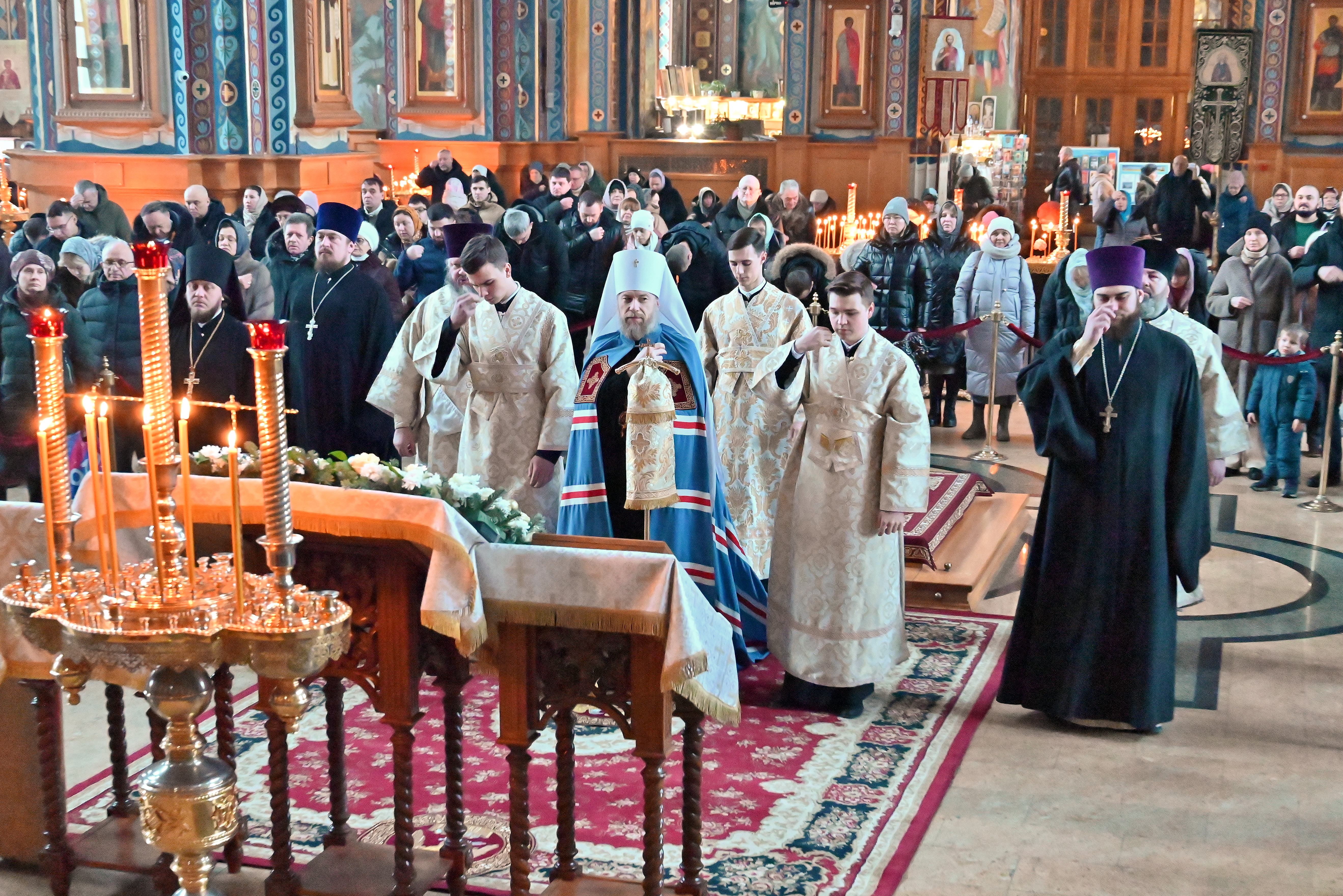 Богослужебные песнопения исполнял митрополичий смешанный хор Благовещенского кафедрального собора под управлением регента Ильи Ижогина.