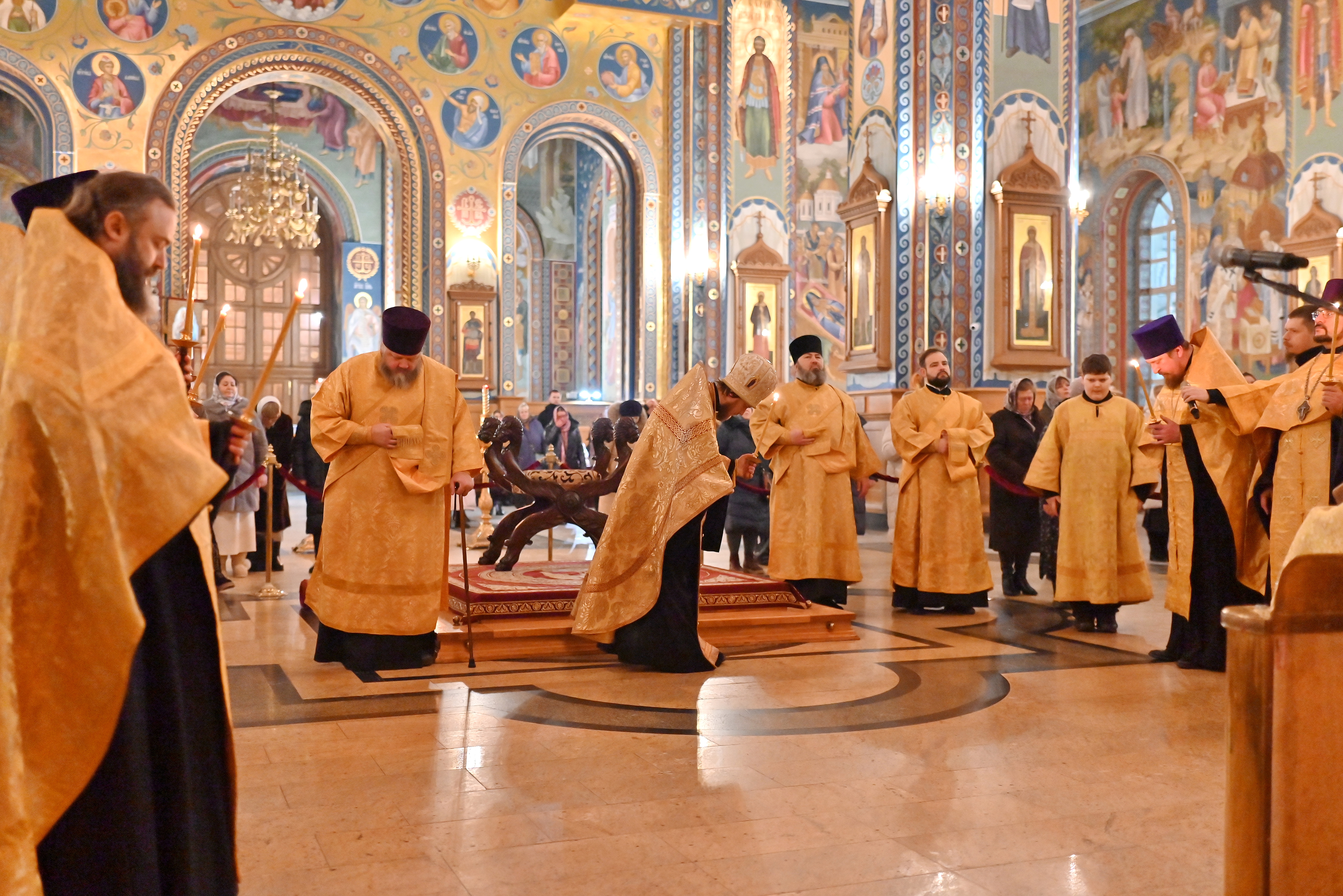31 января 2026 года, в канун Недели о мытаре и фарисее, в Благовещенском кафедральном соборе было совершено Всенощное бдение которое возглавил архимандрит Серафим (Тищенко)