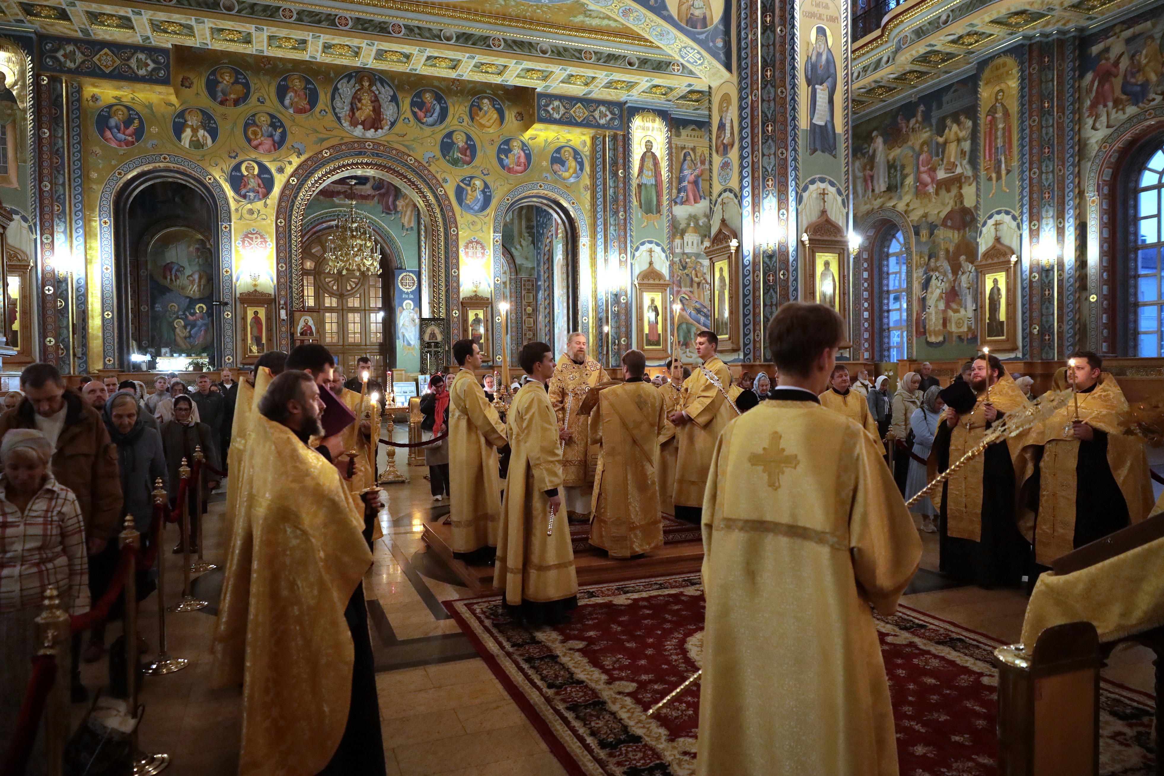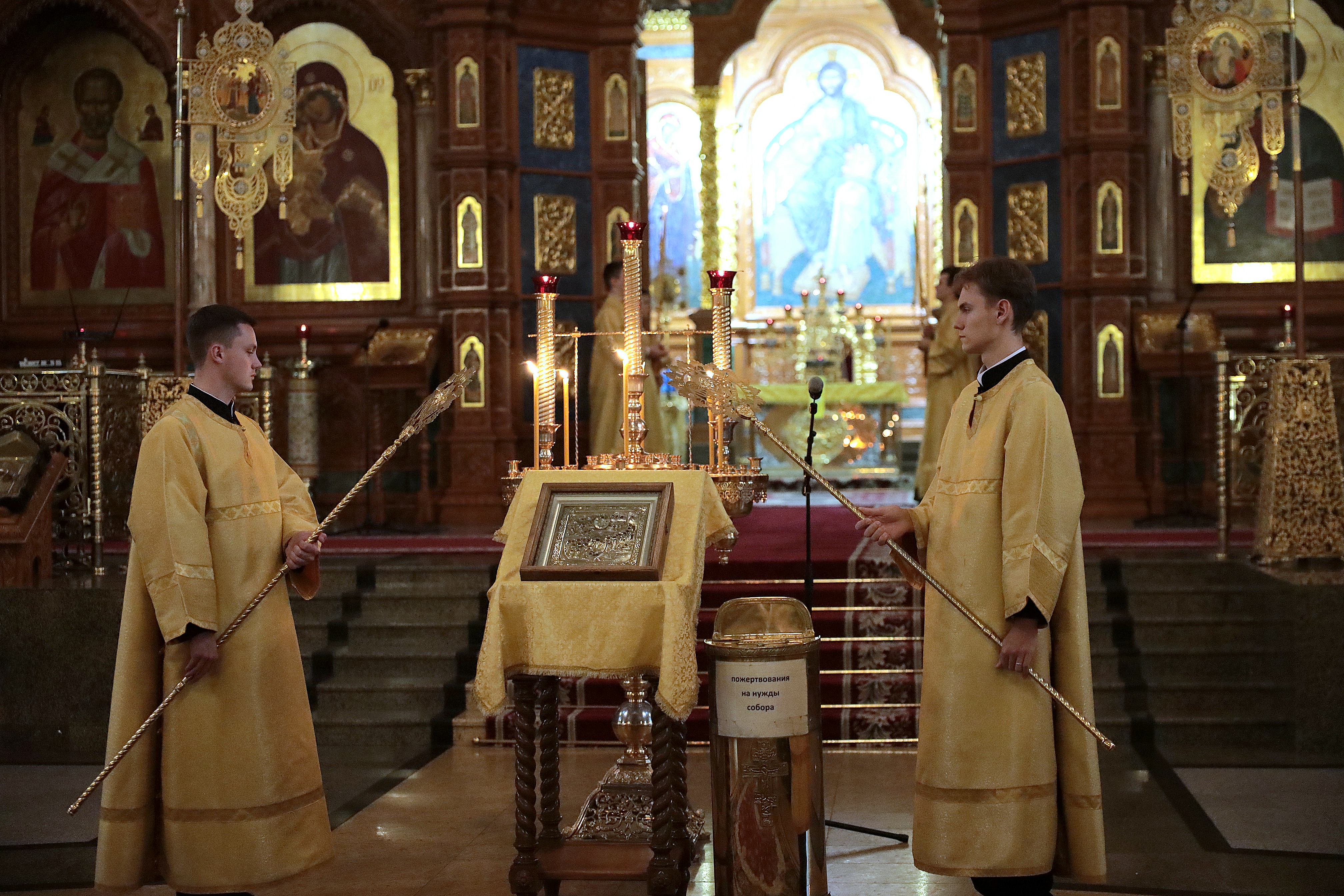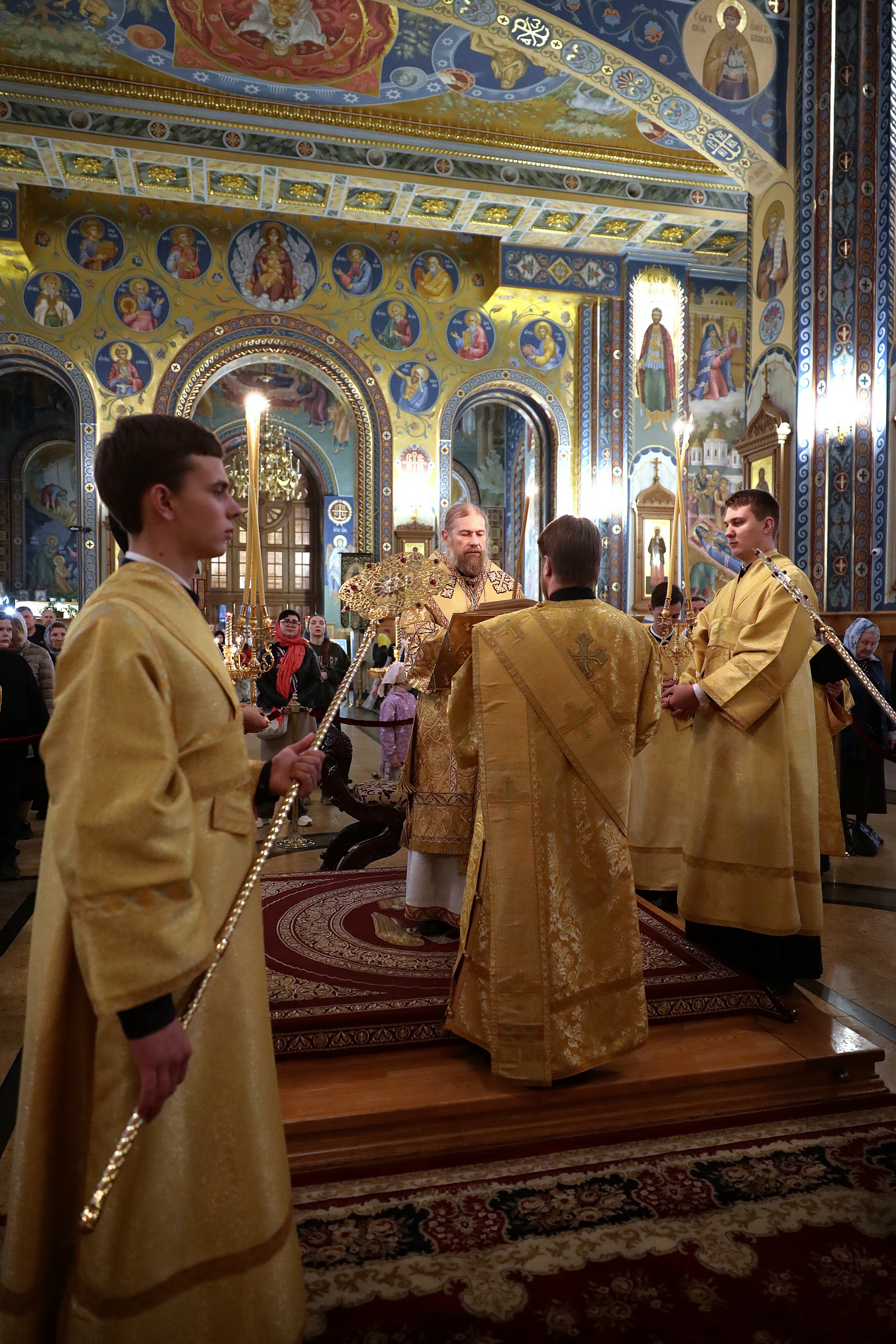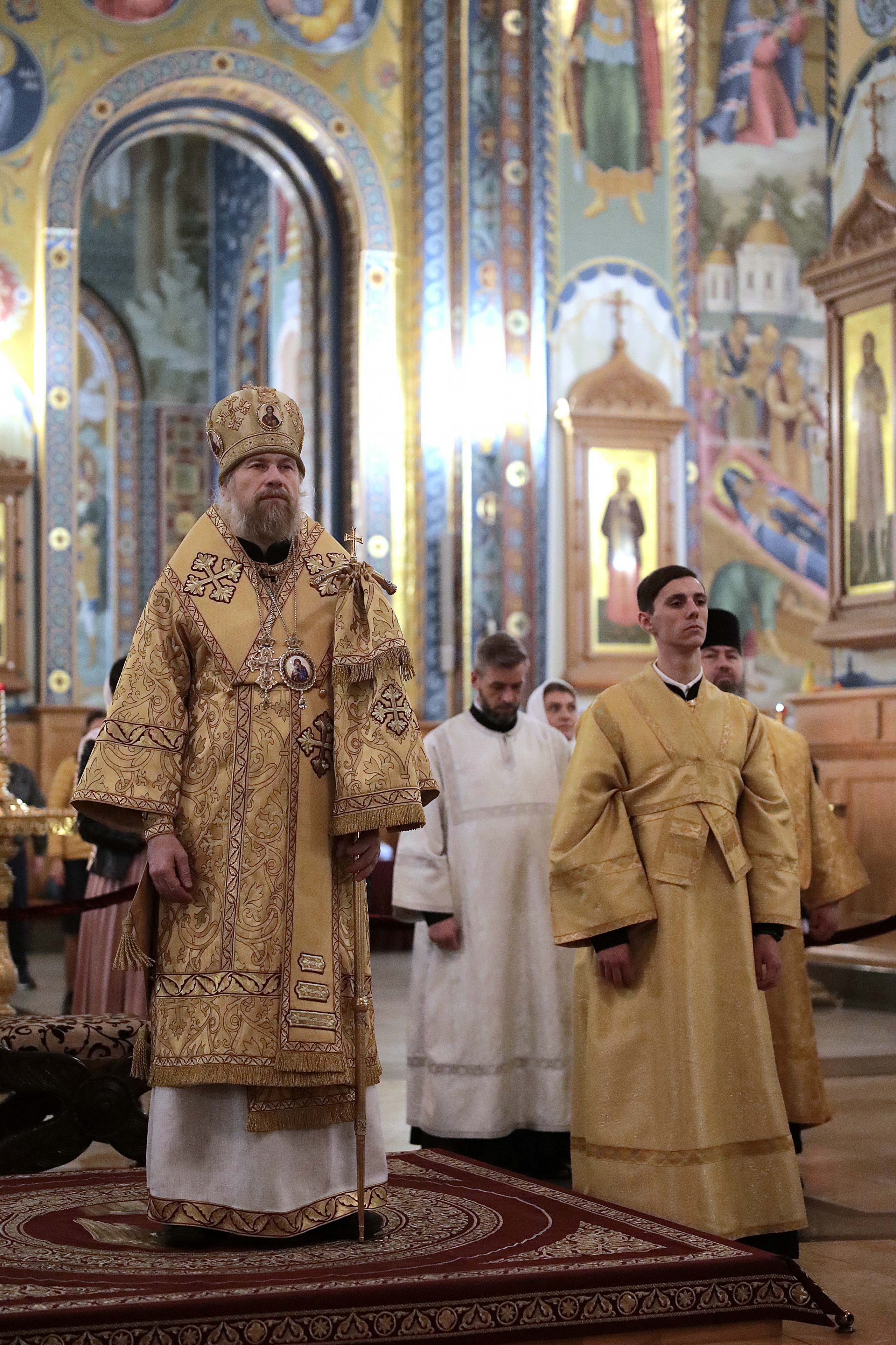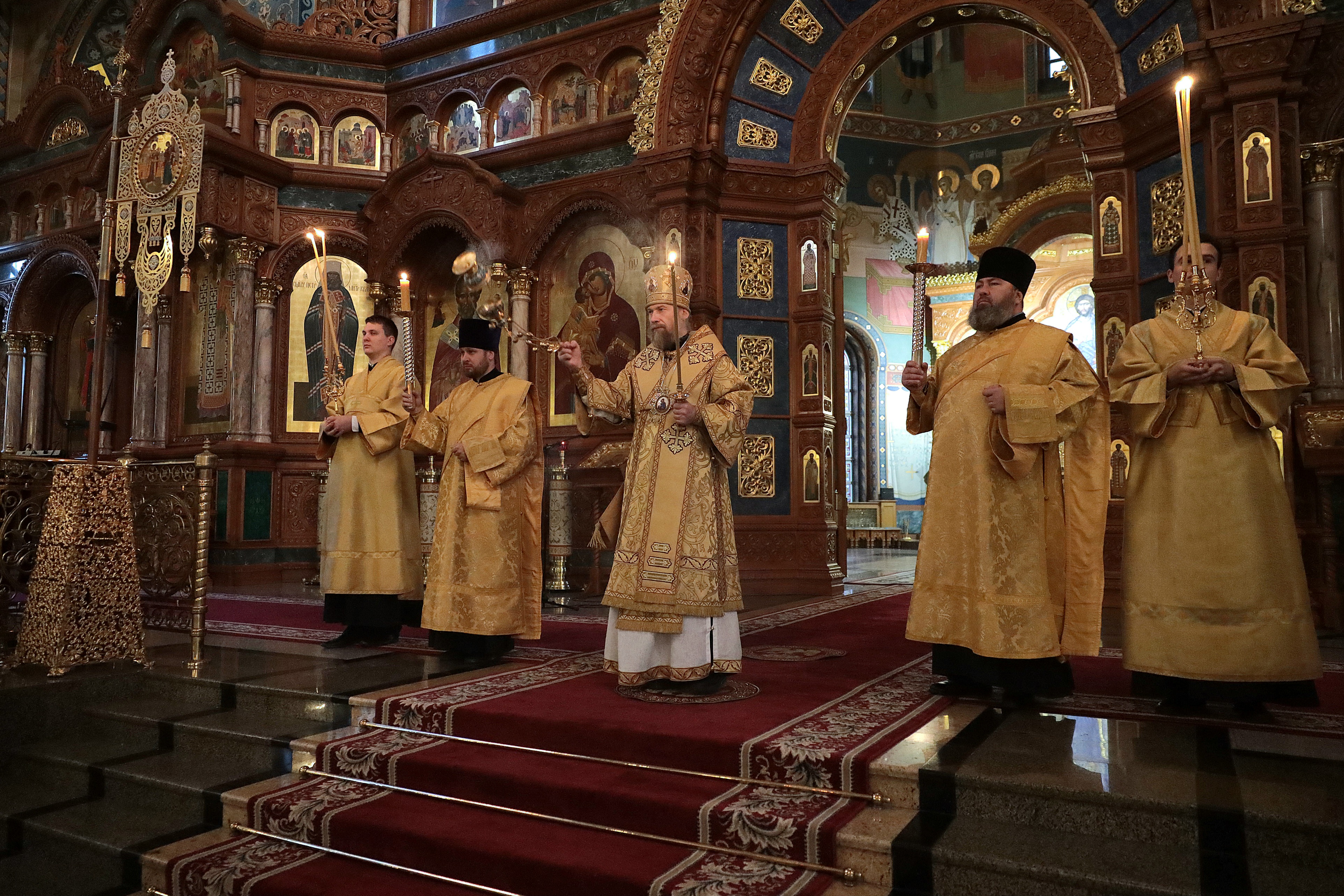 Богослужебные песнопения исполнял мужской хор кафедрального собора под управлением регента Михаила Перфильева.