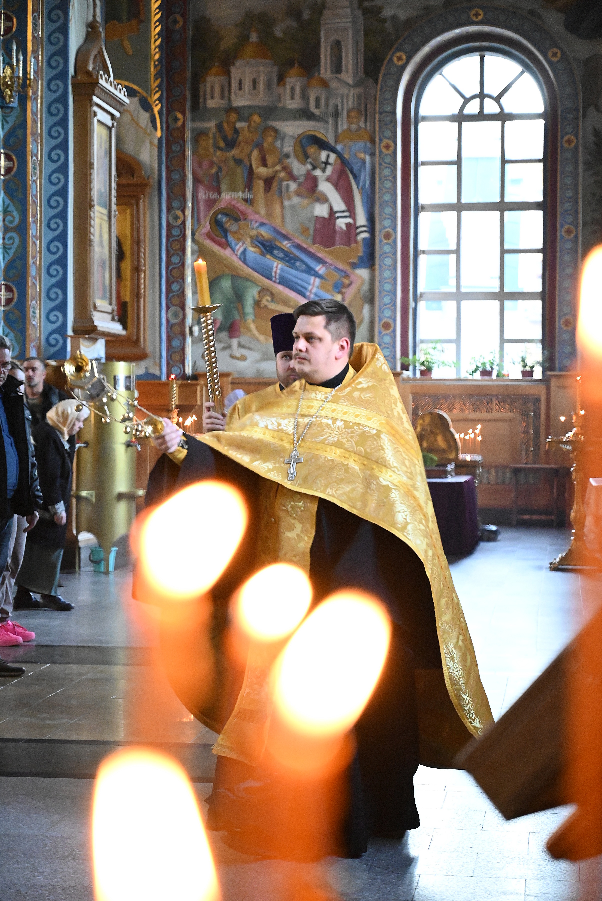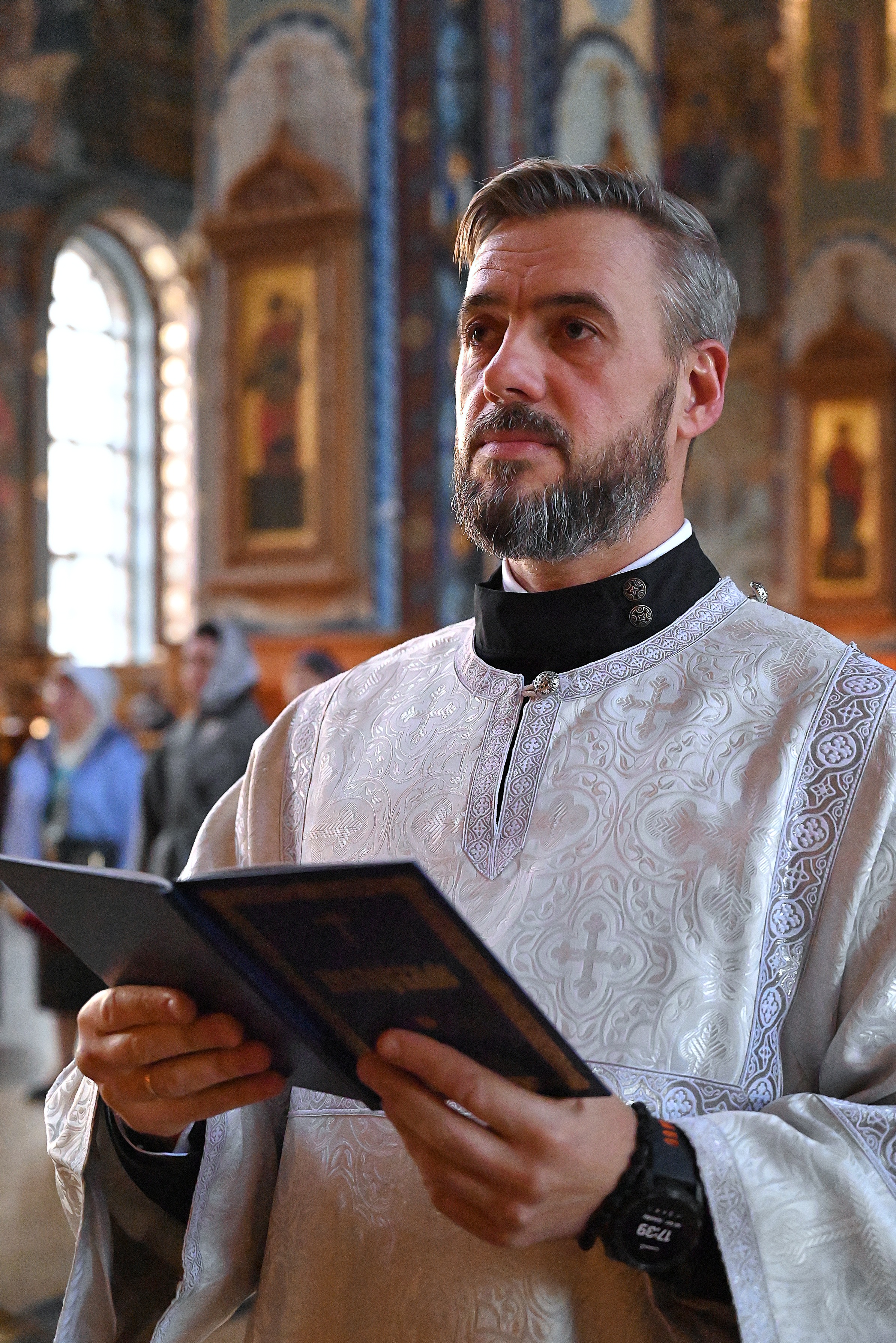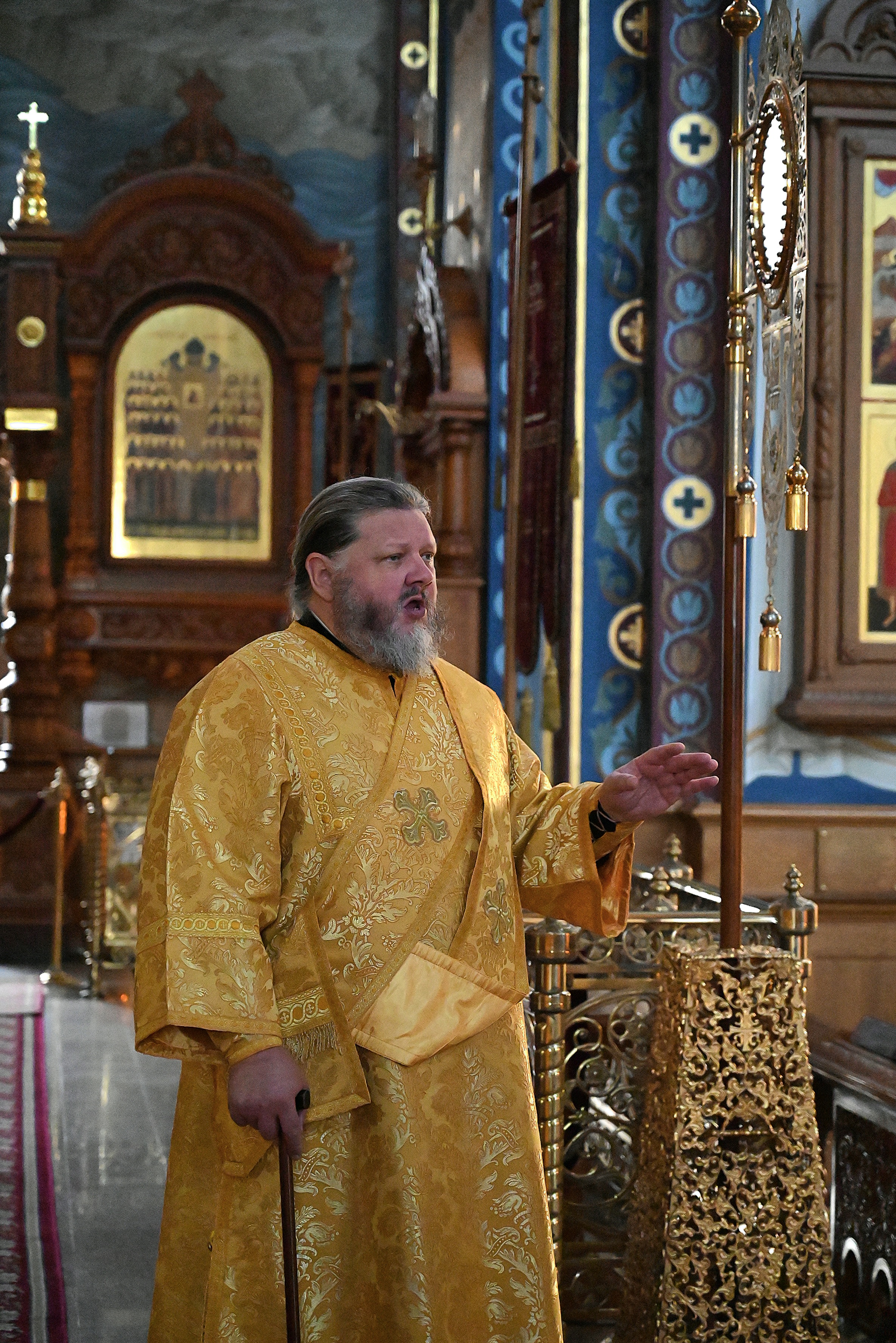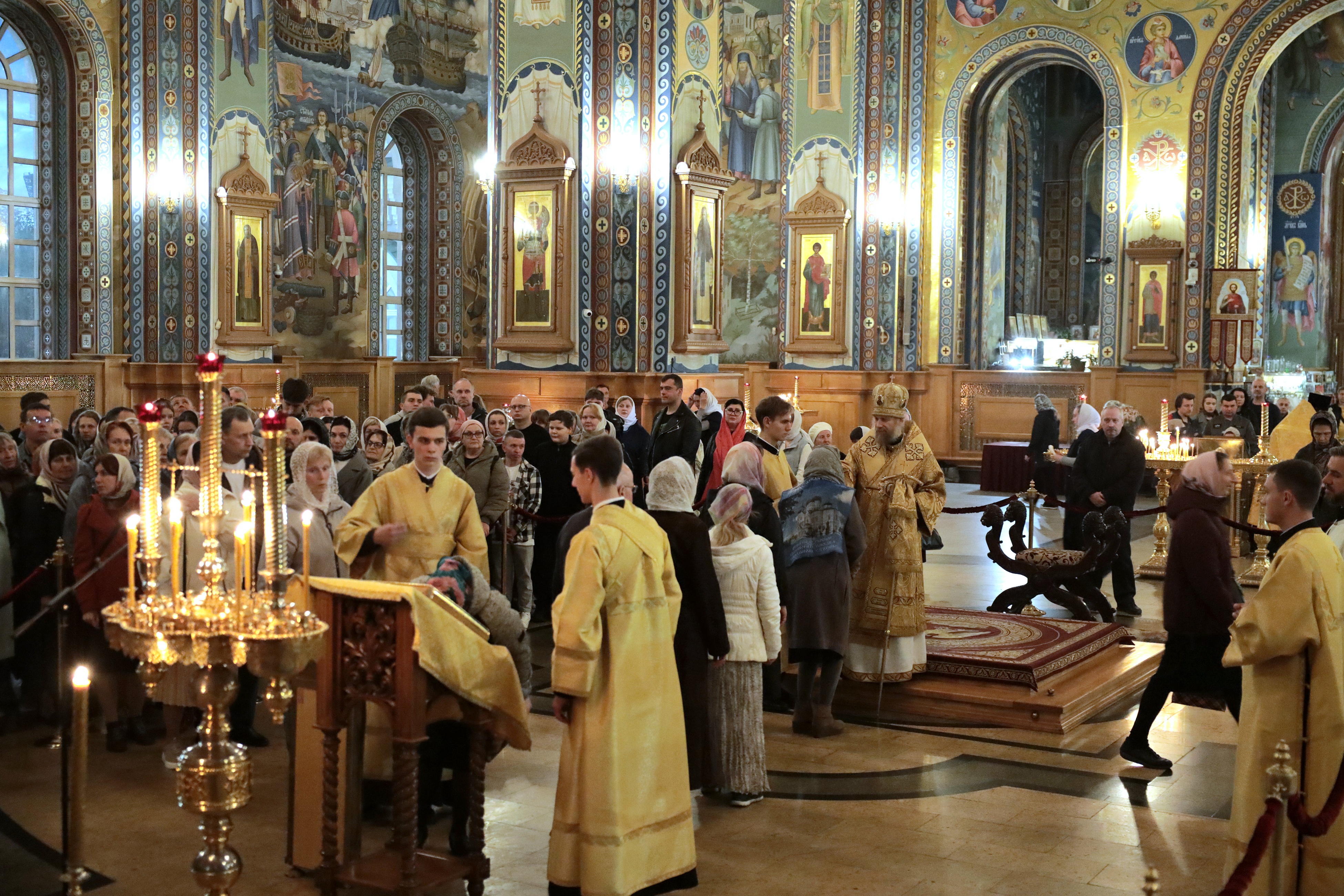 Богослужебные песнопения исполнял мужской хор кафедрального собора под управлением регента Михаила Перфильева.