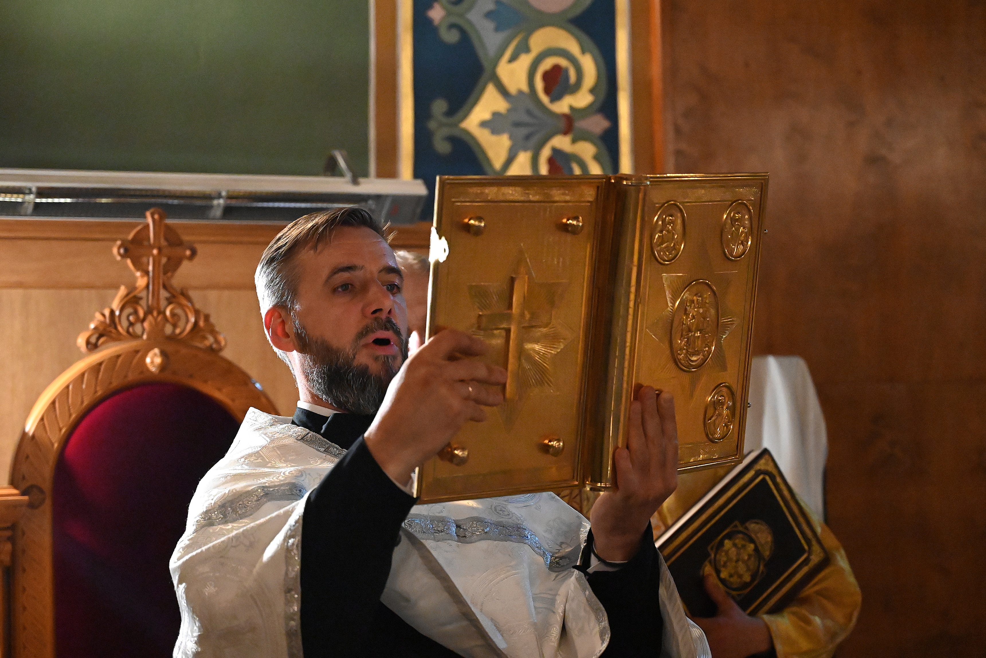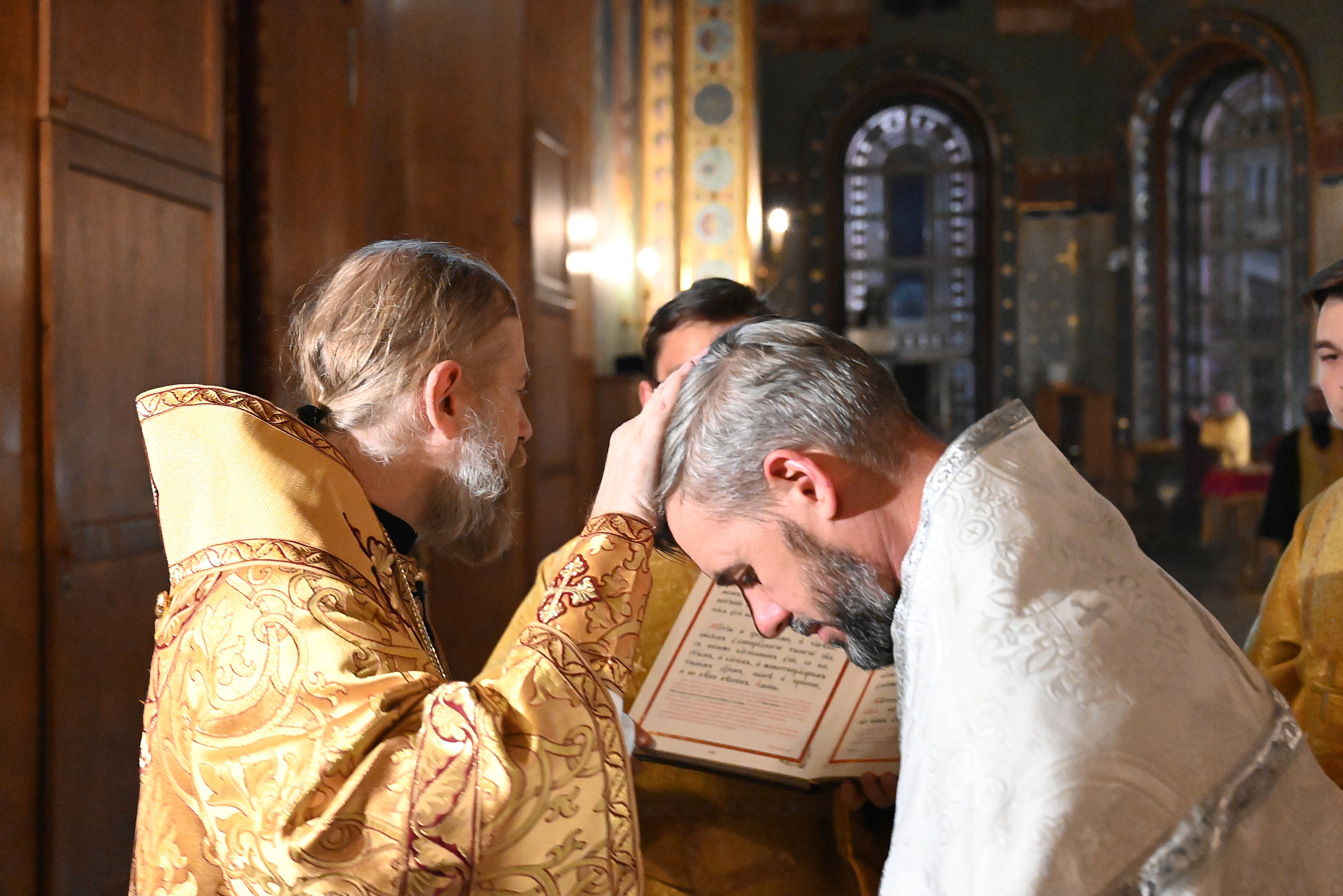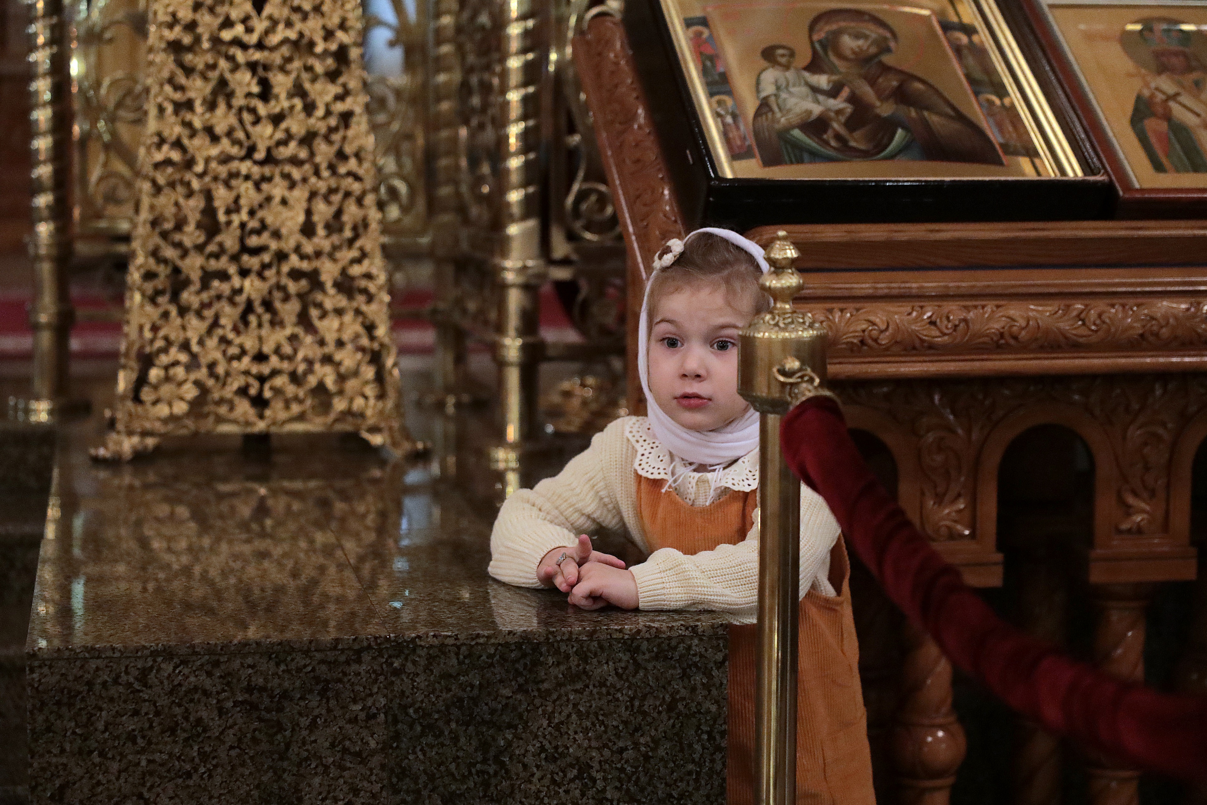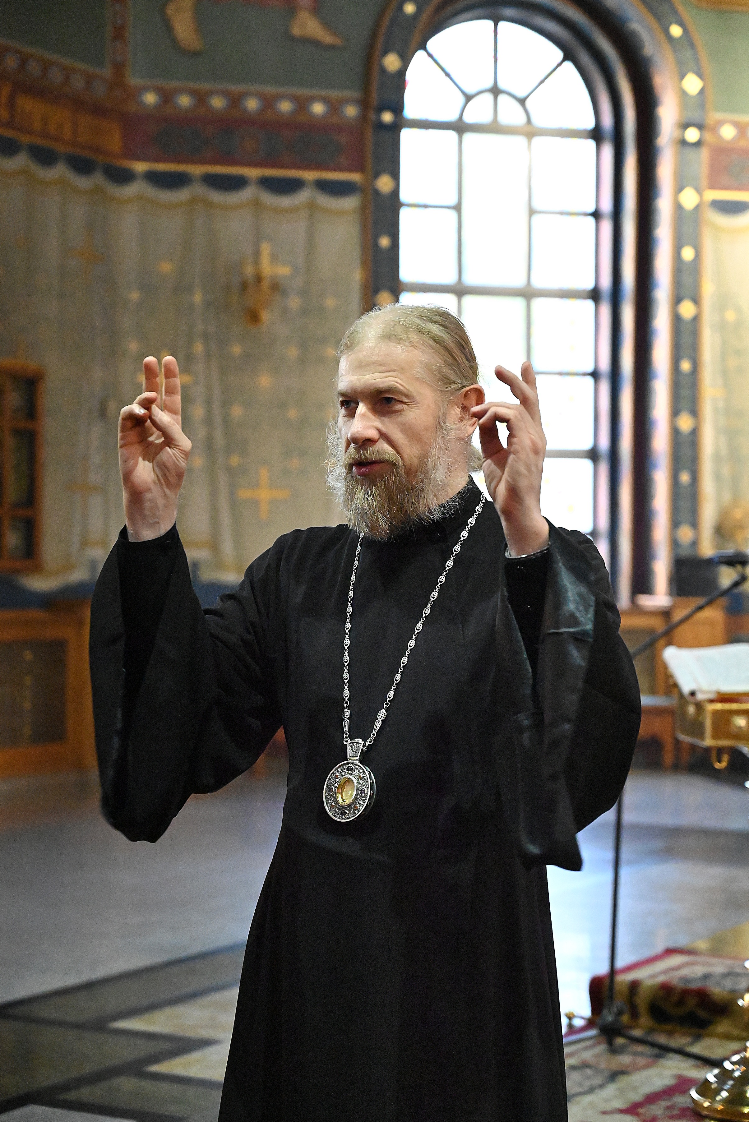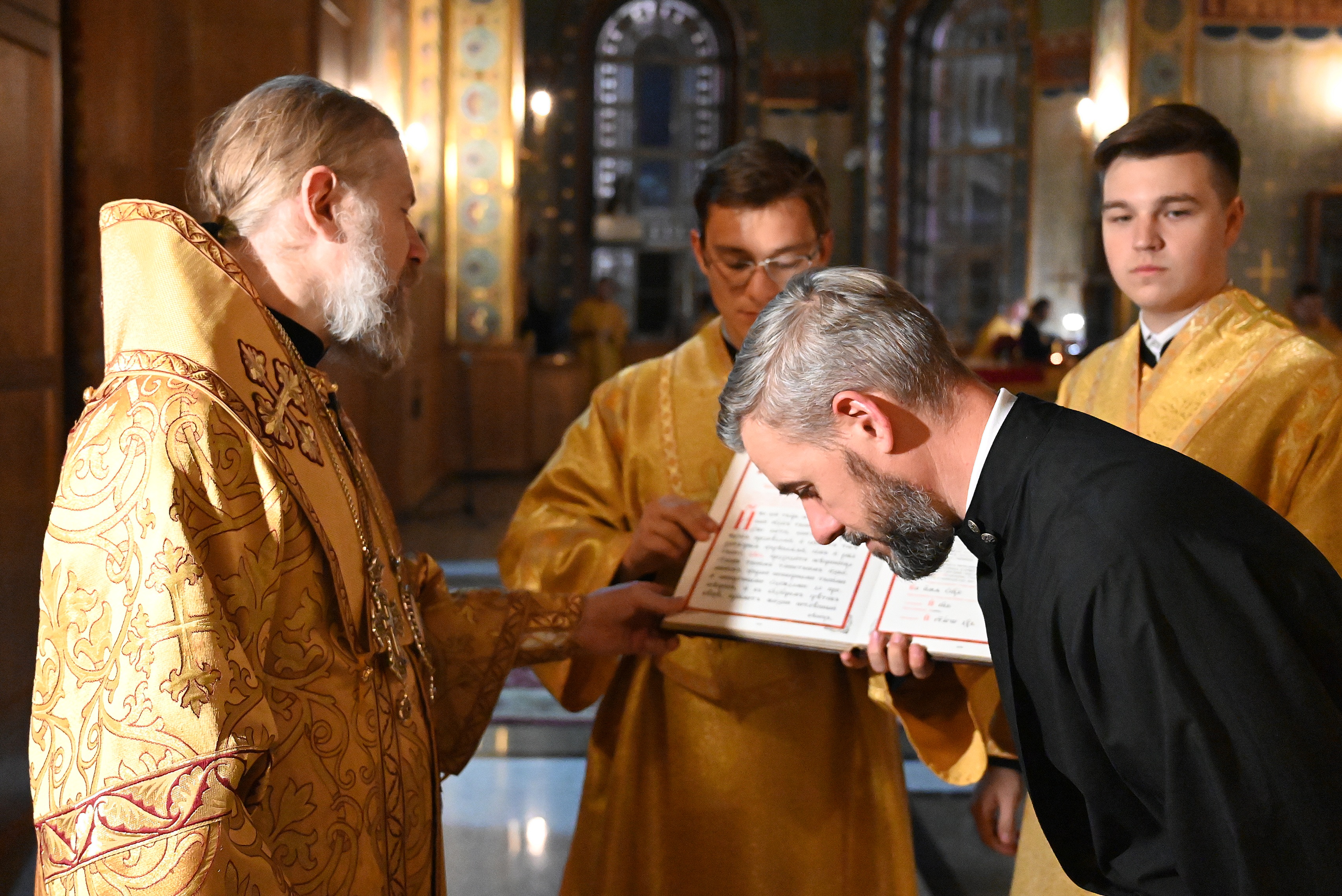 Богослужебные песнопения исполнял мужской хор кафедрального собора под управлением регента Михаила Перфильева.