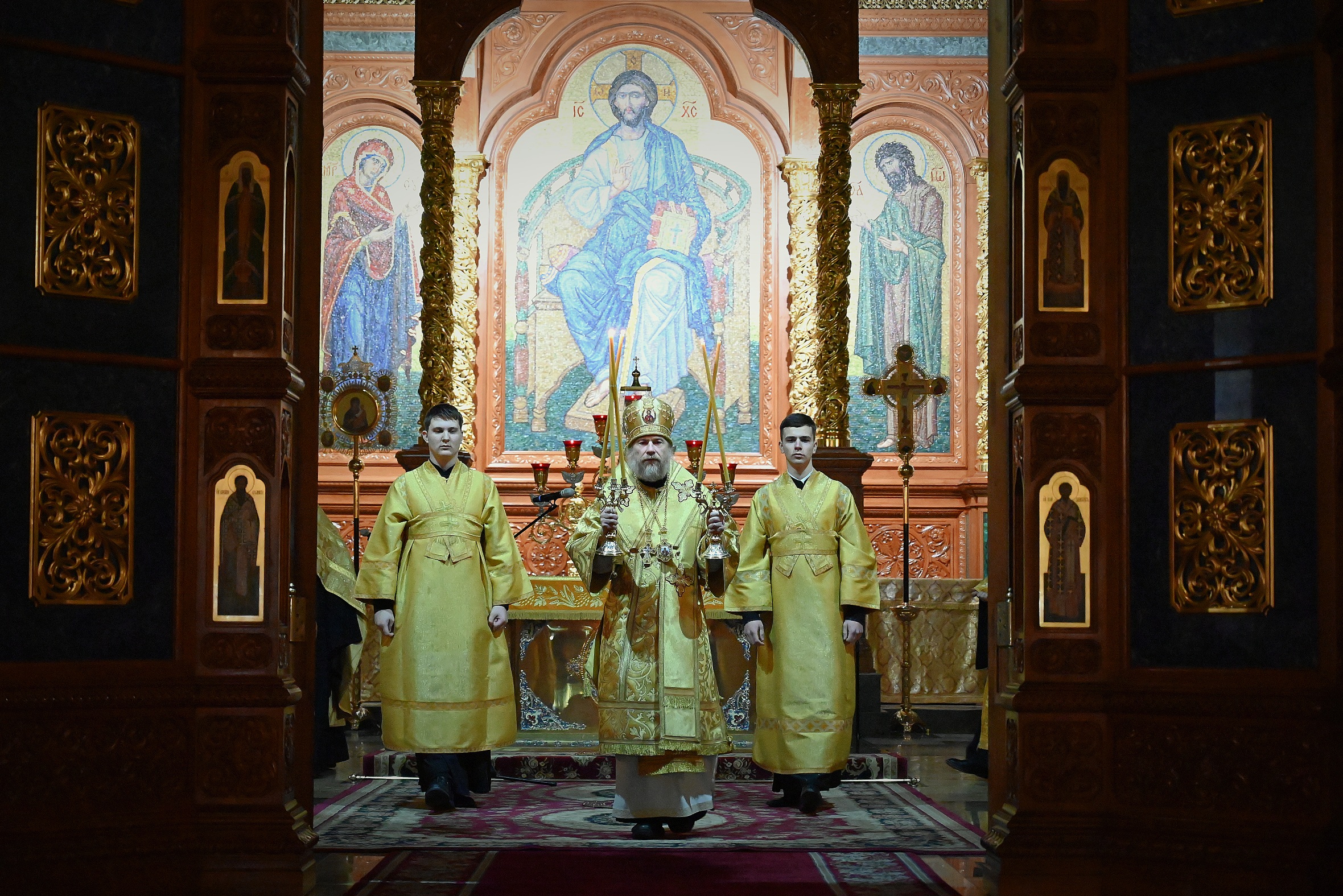 Богослужебные песнопения исполнял хор кафедрального собора.