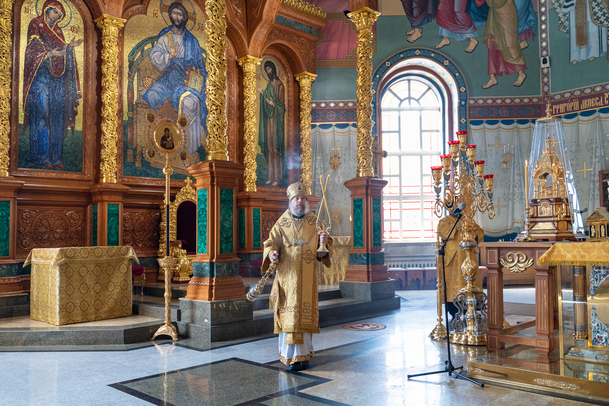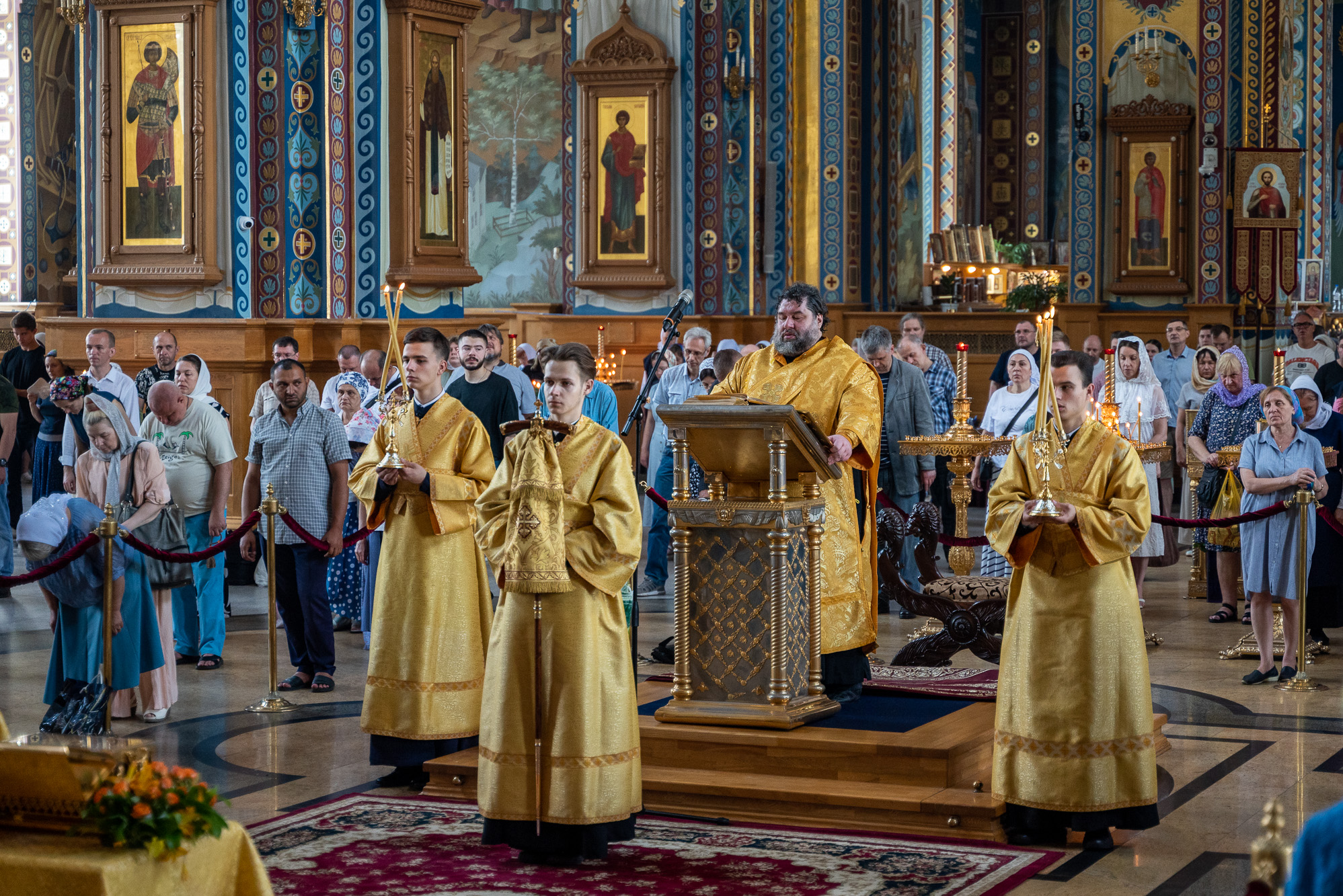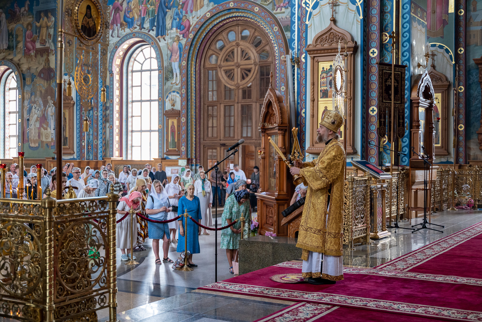 После пения молитвы Господней "Отче наш" и запричастного стиха проповедь на тему евангельского чтения произнес клирик кафедрального собора иерей Олег Шурупов. Множество прихожан в этот воскресный день за архиерейским богослужением приобщились Святых Христовых Таин.