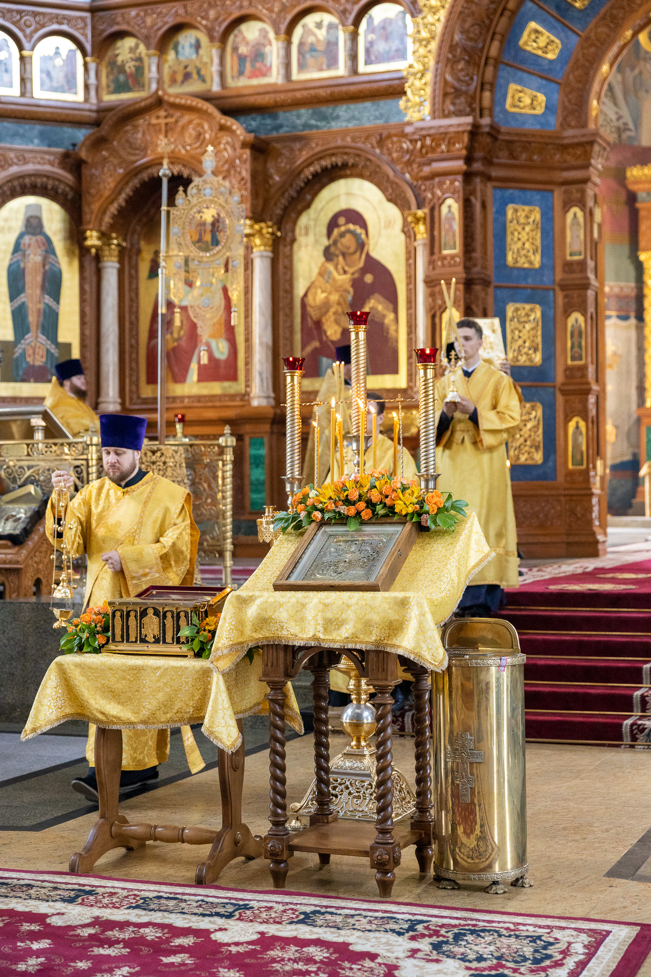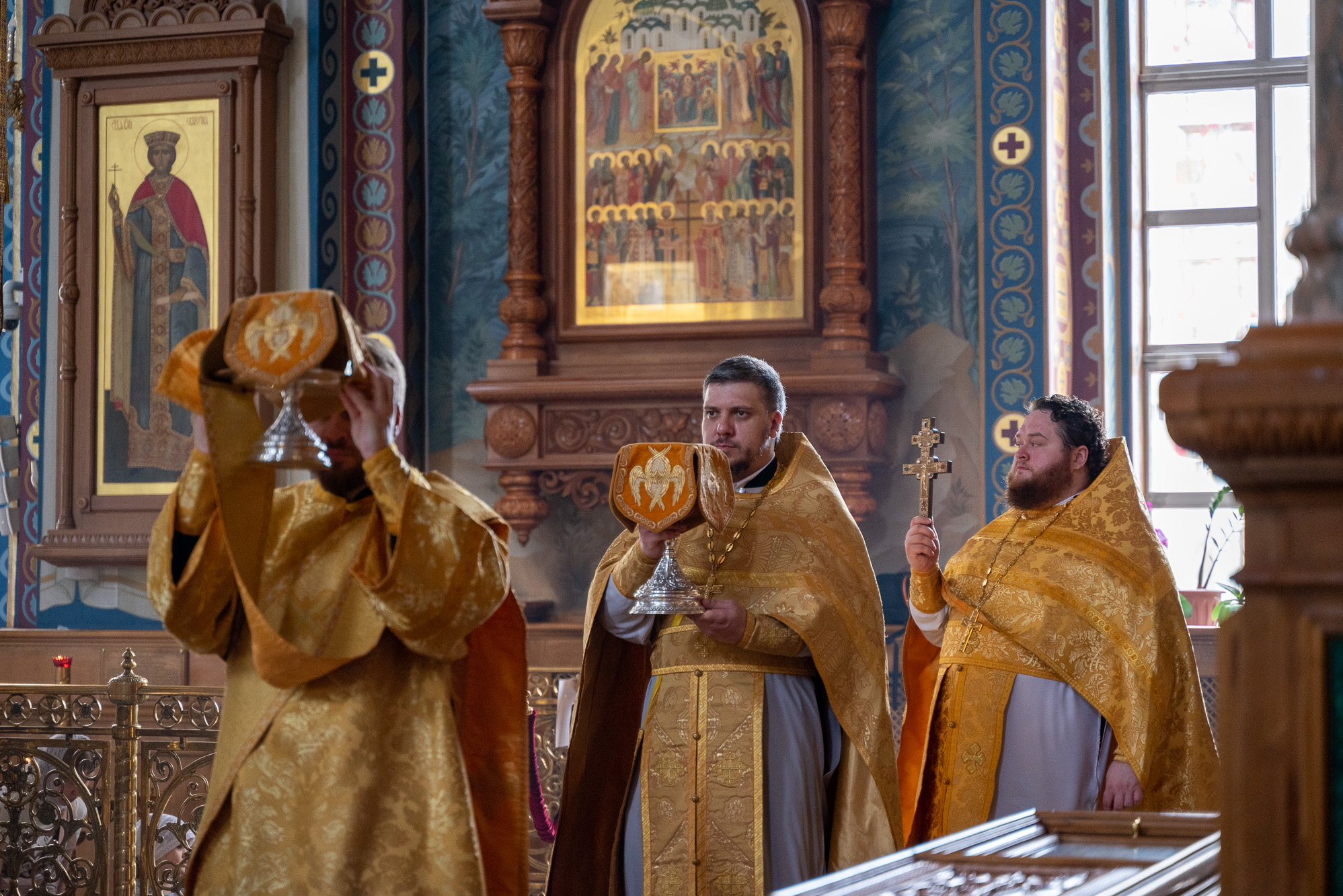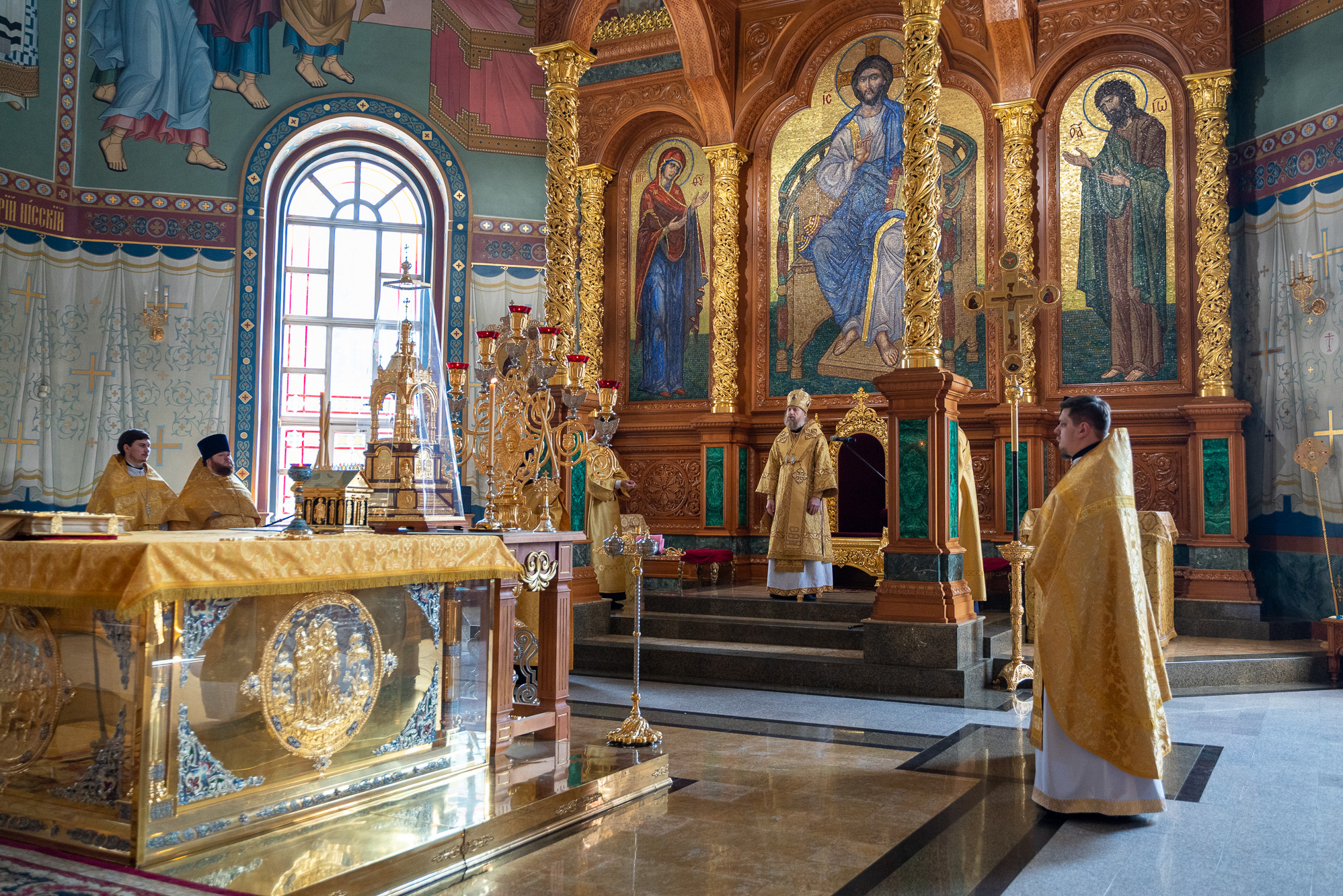 После пения молитвы Господней "Отче наш" и запричастного стиха проповедь на тему евангельского чтения произнес клирик кафедрального собора иерей Олег Шурупов. Множество прихожан в этот воскресный день за архиерейским богослужением приобщились Святых Христовых Таин.