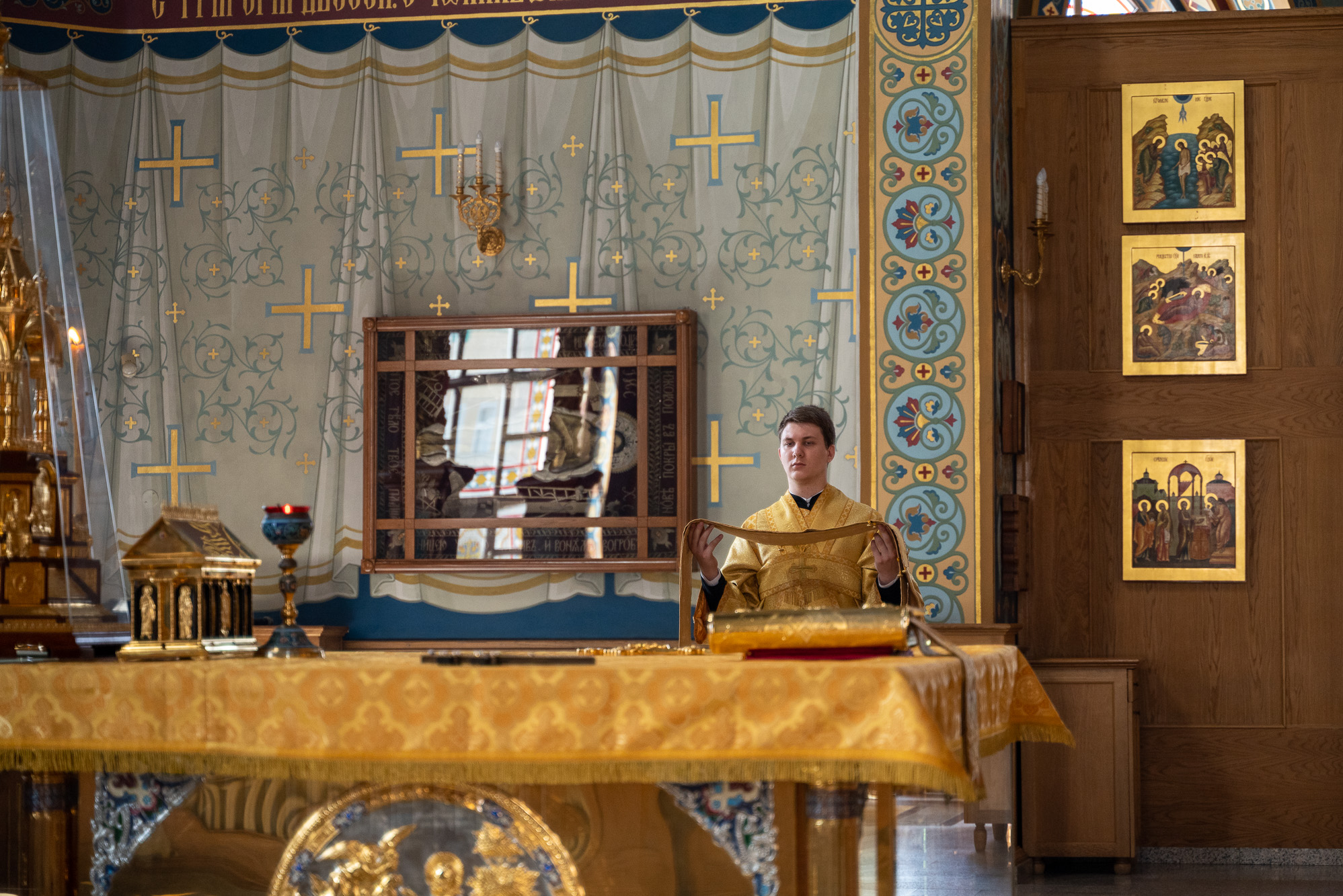 На сугубой ектении были произнесены особые прошения: "...о еже прияти молитвы нас недостойных рабов Твоих в сию годину испытания..." и прошение о "Преосвященных архипастырях, пастырях, монашествующих и мирянах земли Украинския, о единстве Церкви Христовы ревнующих, в заточении и гонениях сущих". Затем митрополит Леонтий вознес молитву о Святой Руси. По благословению Святейшего Патриарха Московского и всея Руси Кирилла эта молитва читается во всех храмах Русской Православной Церкви.