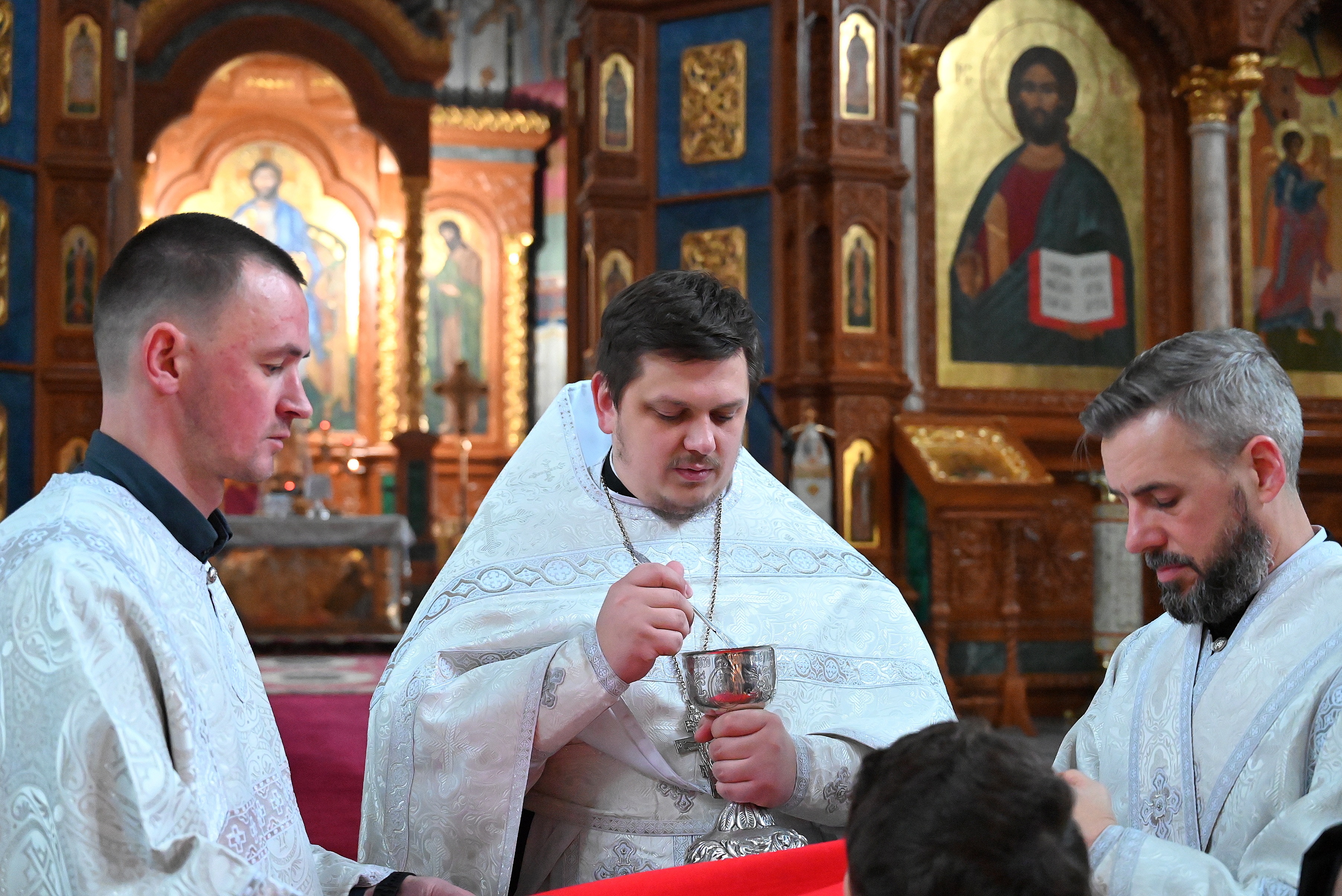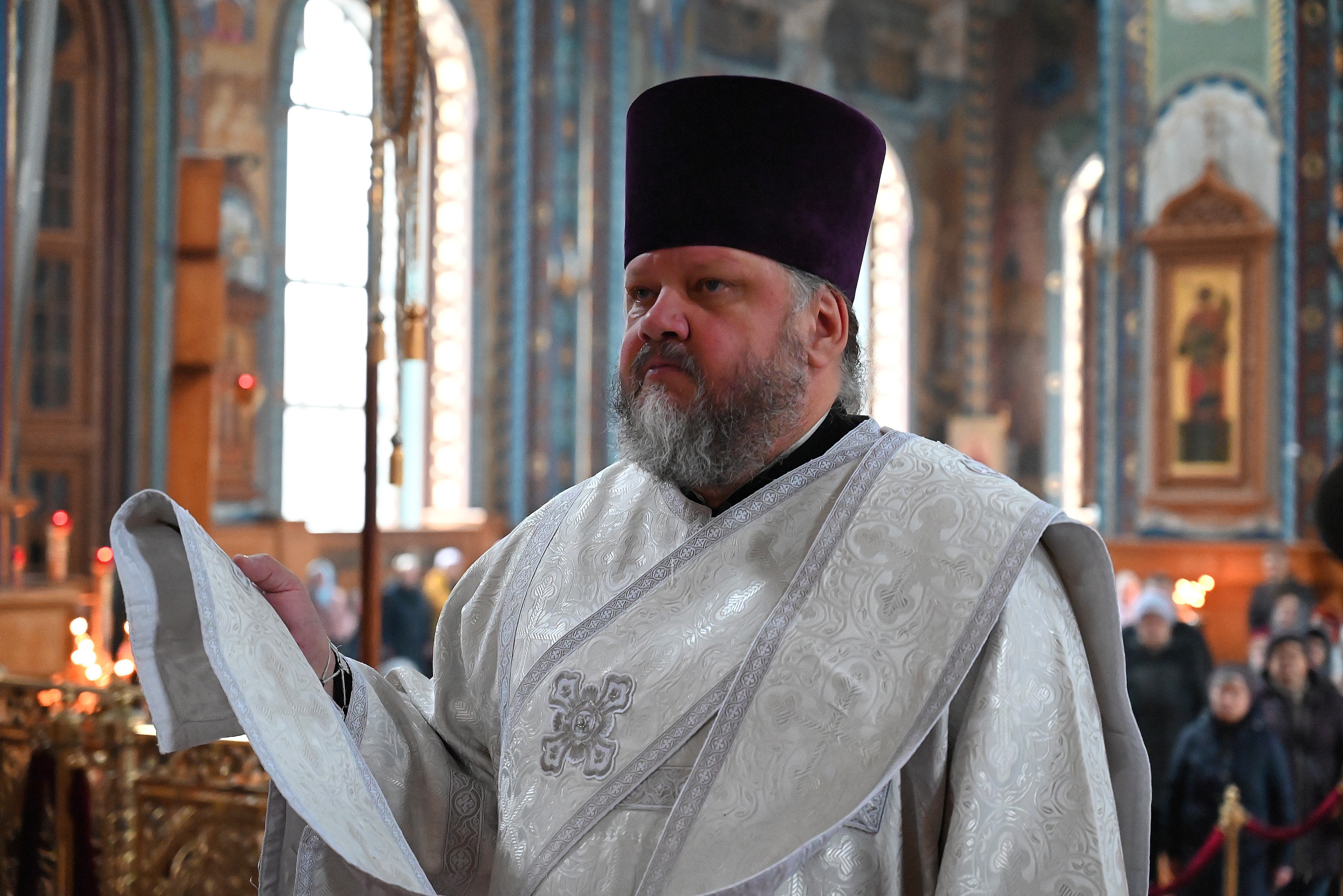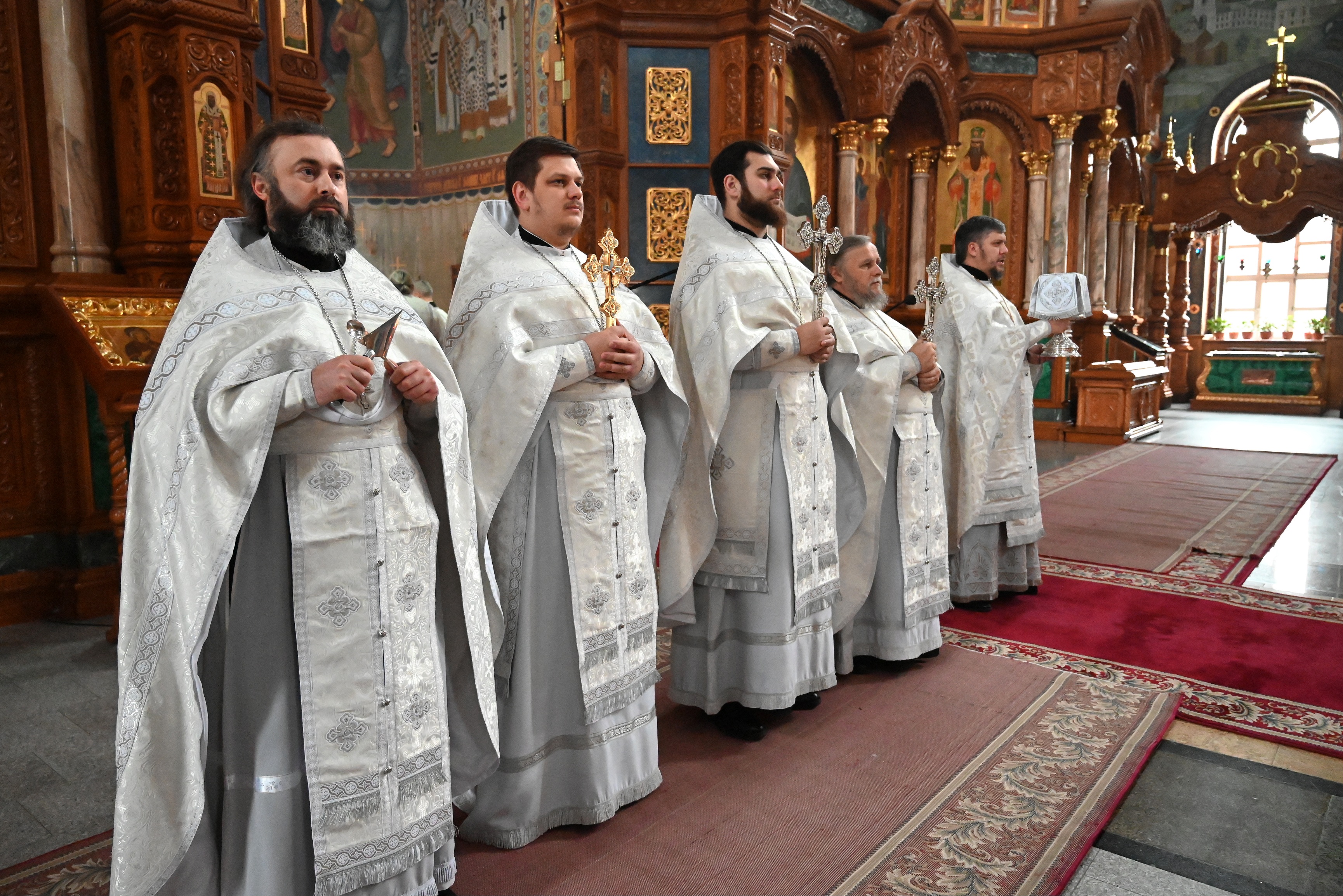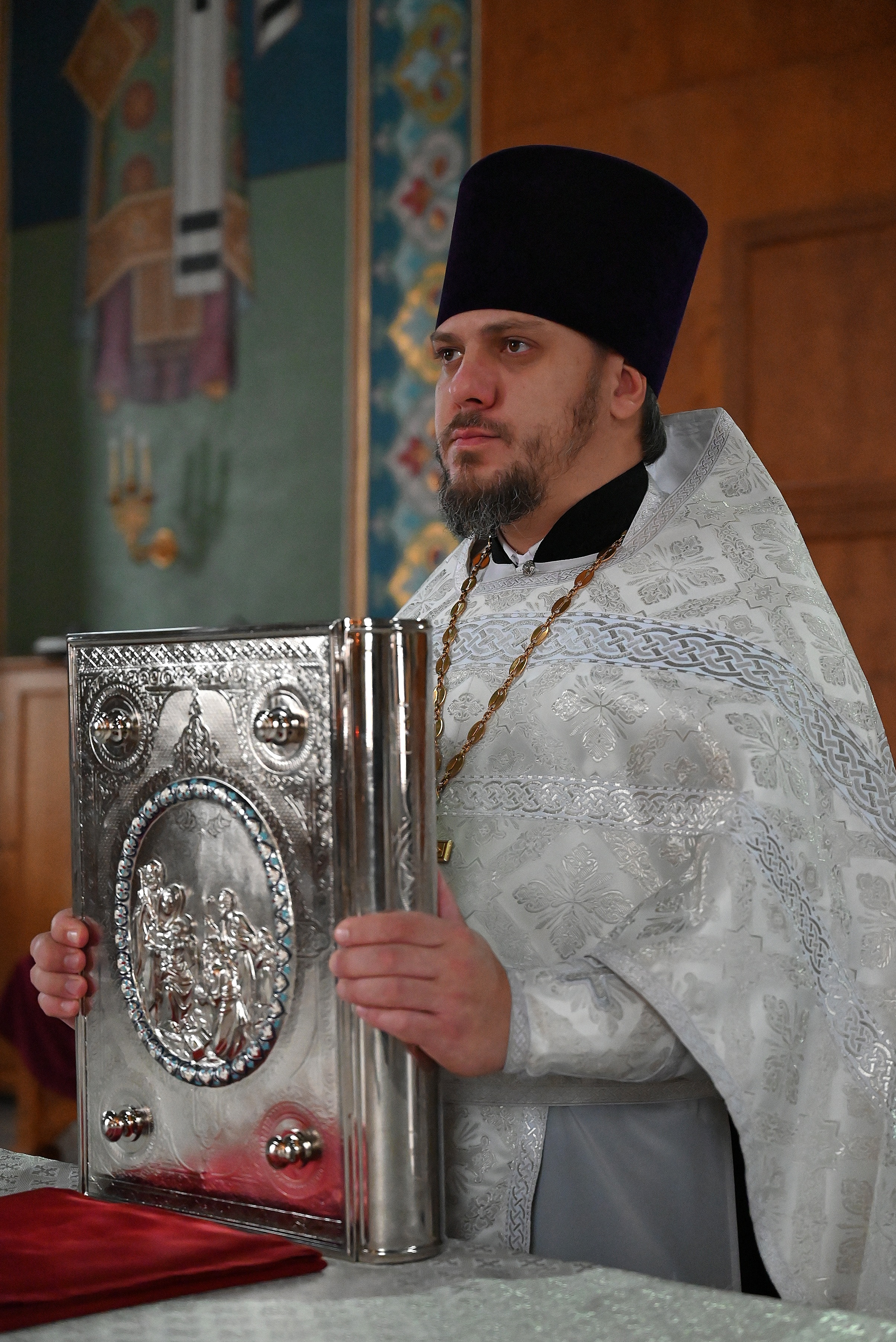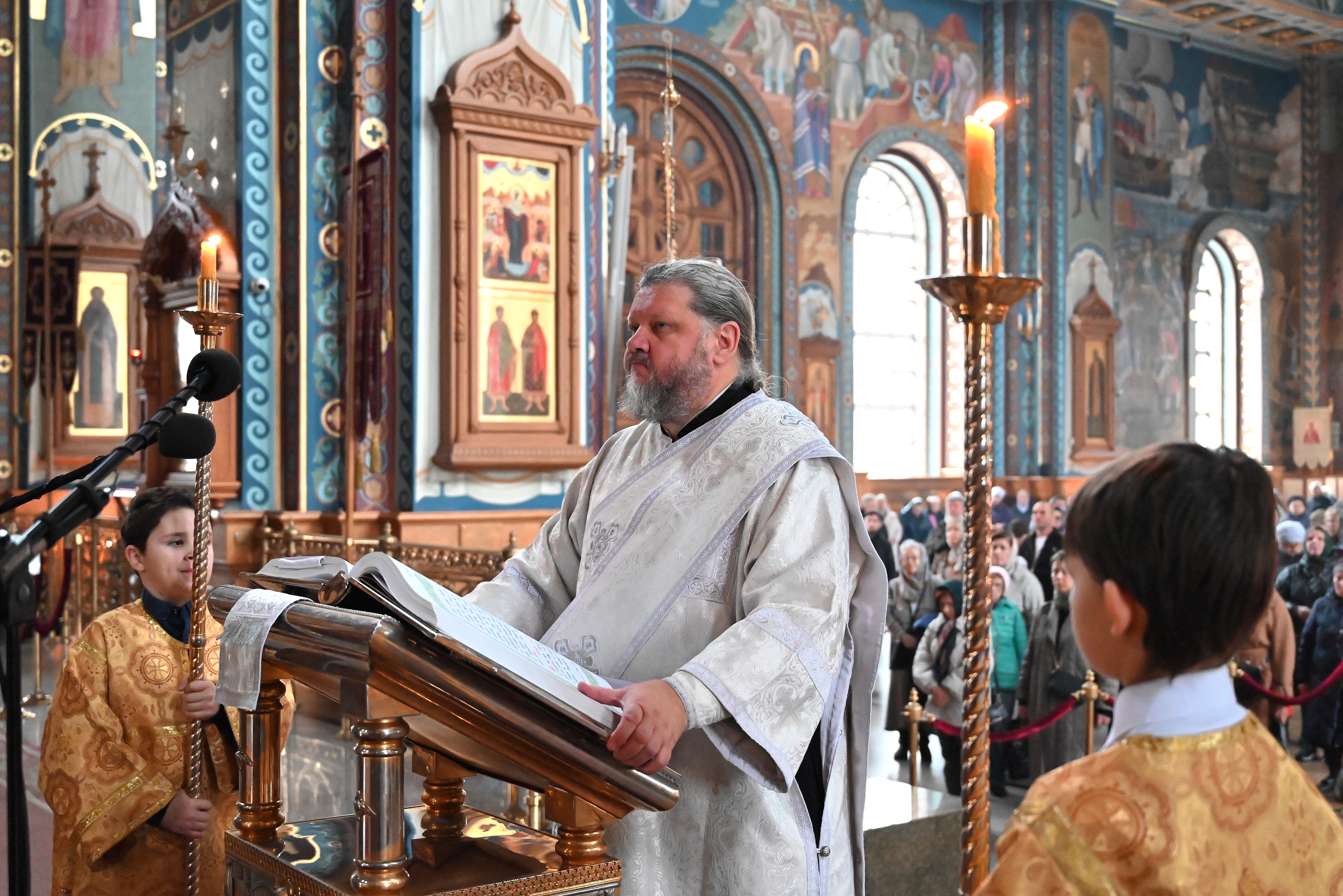 Возглавил Божественную литургию ключарь кафедрального собора иерей Павел Колбасов в сослужении клириков собора.