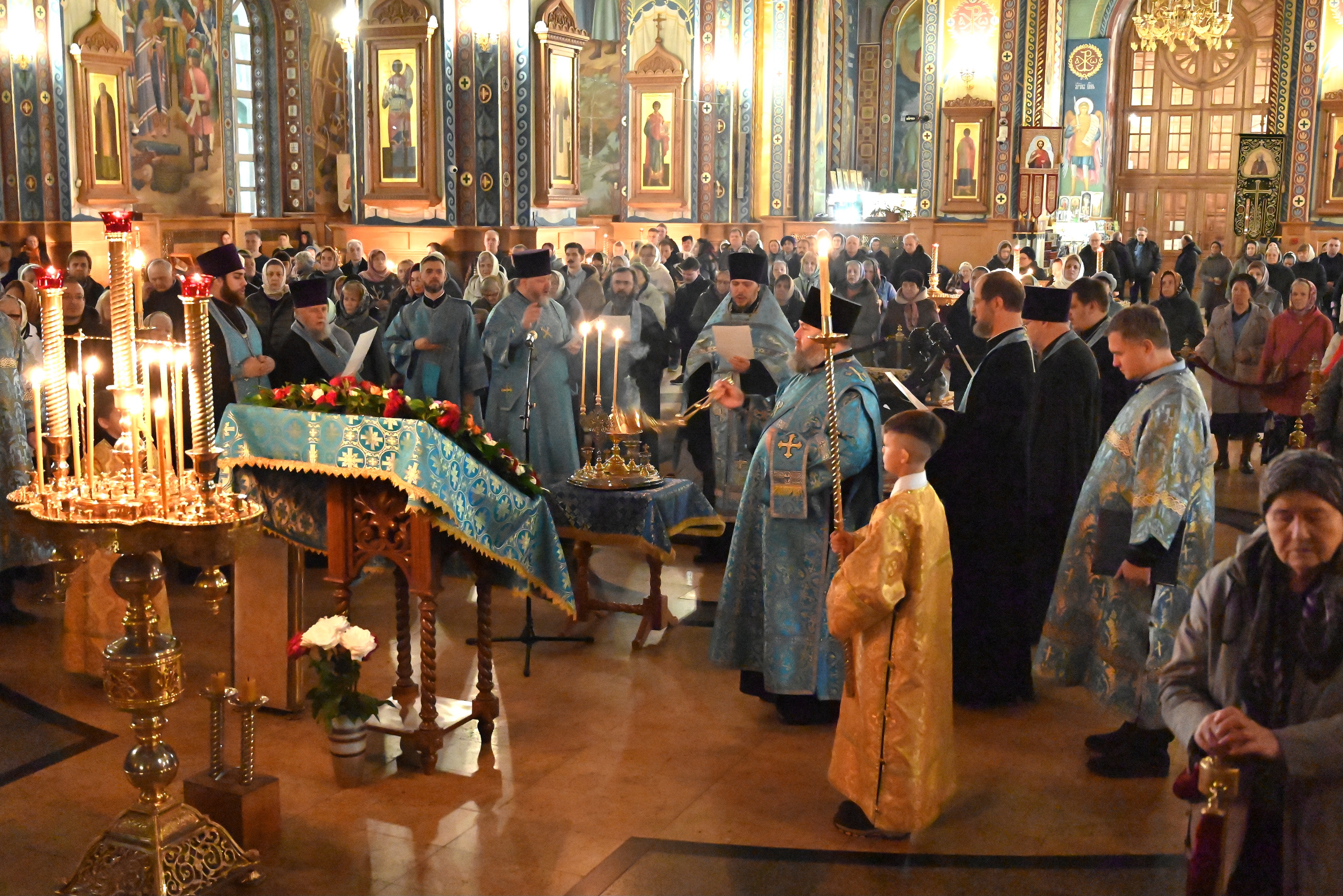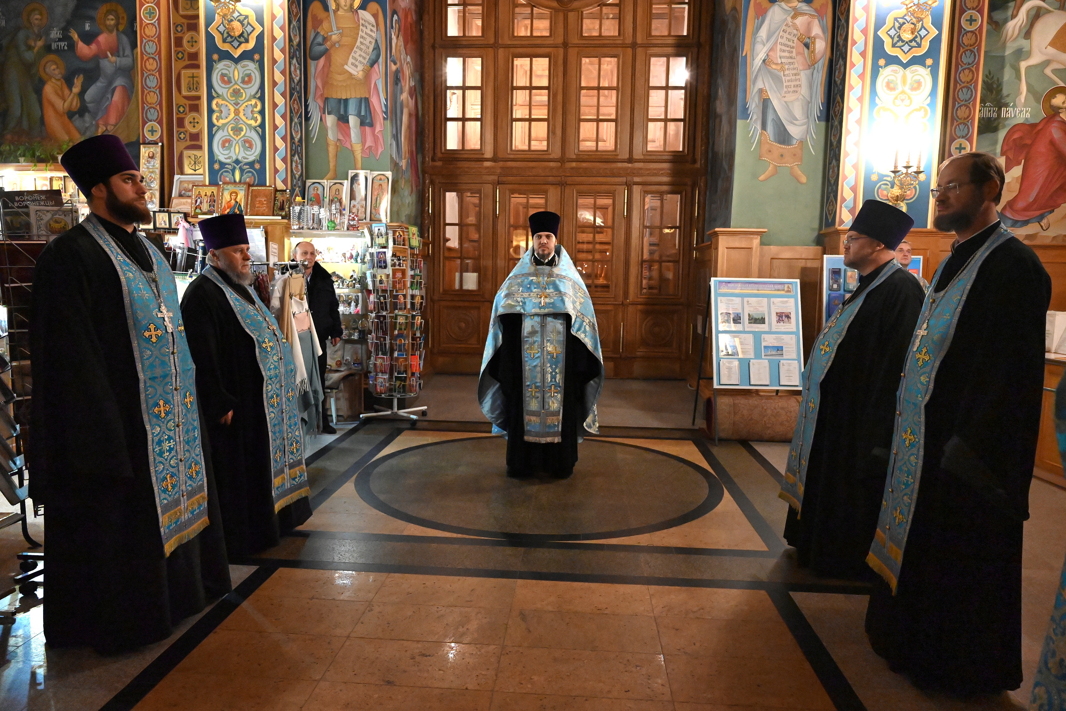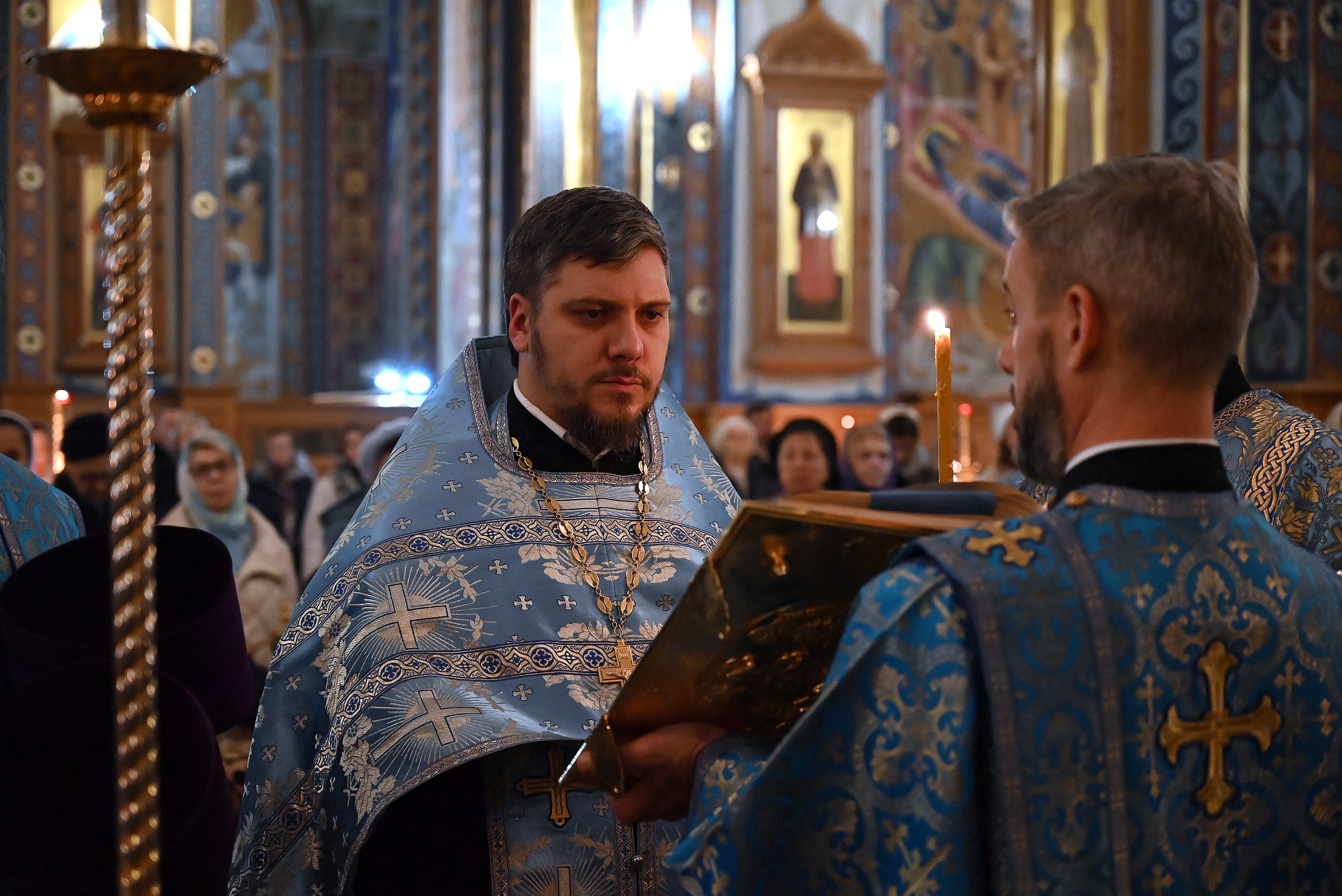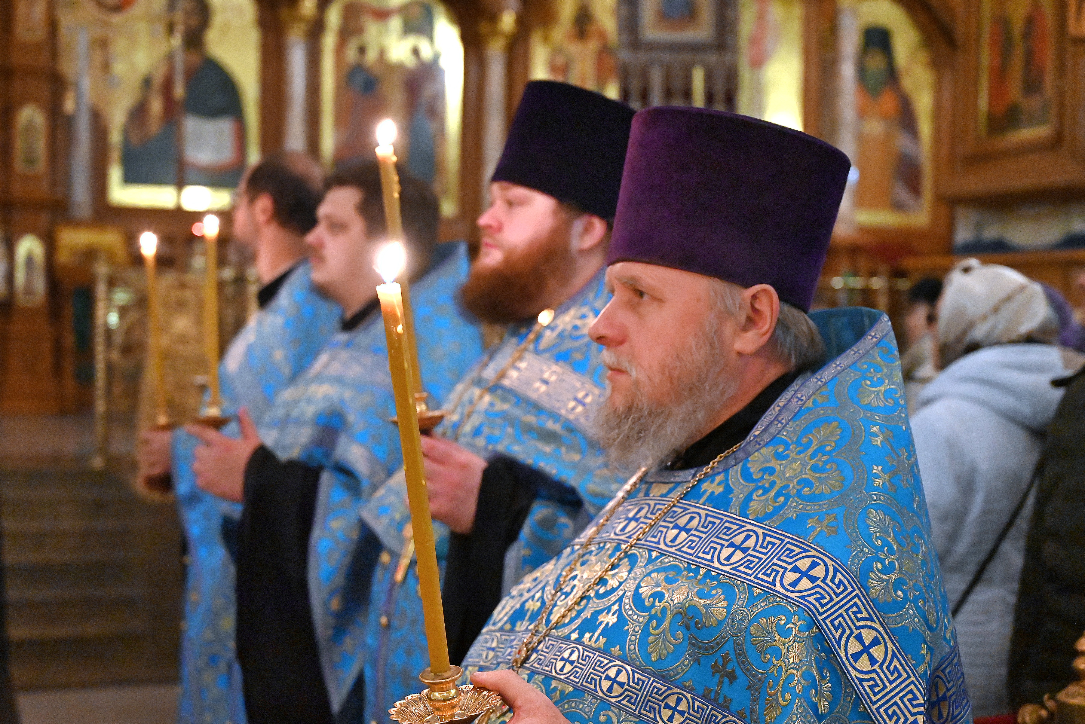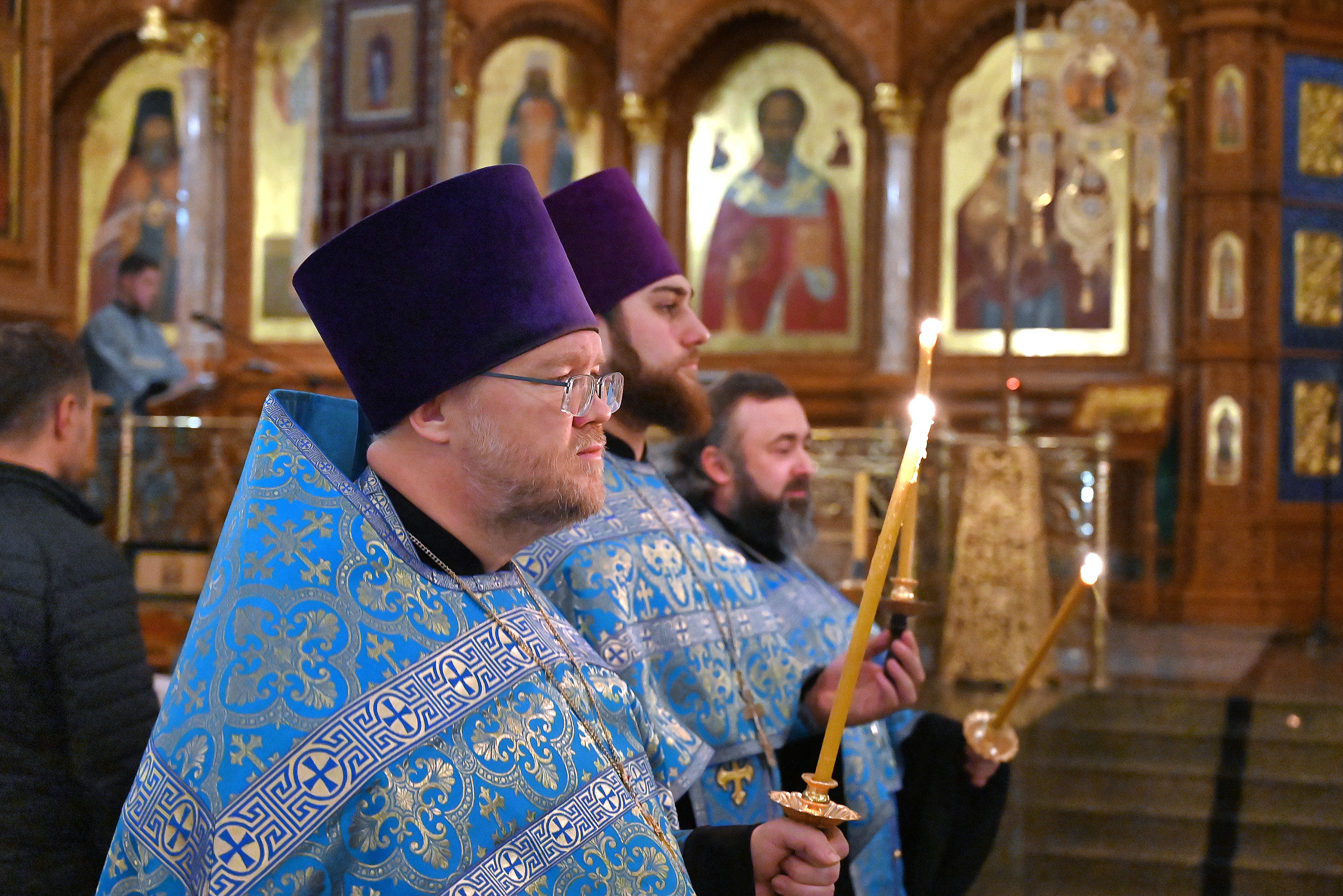 Праздничное богослужение возглавил ключарь кафедрального собора иерей Павел Колбасов. Его Преподобию сослужили клирики храма.