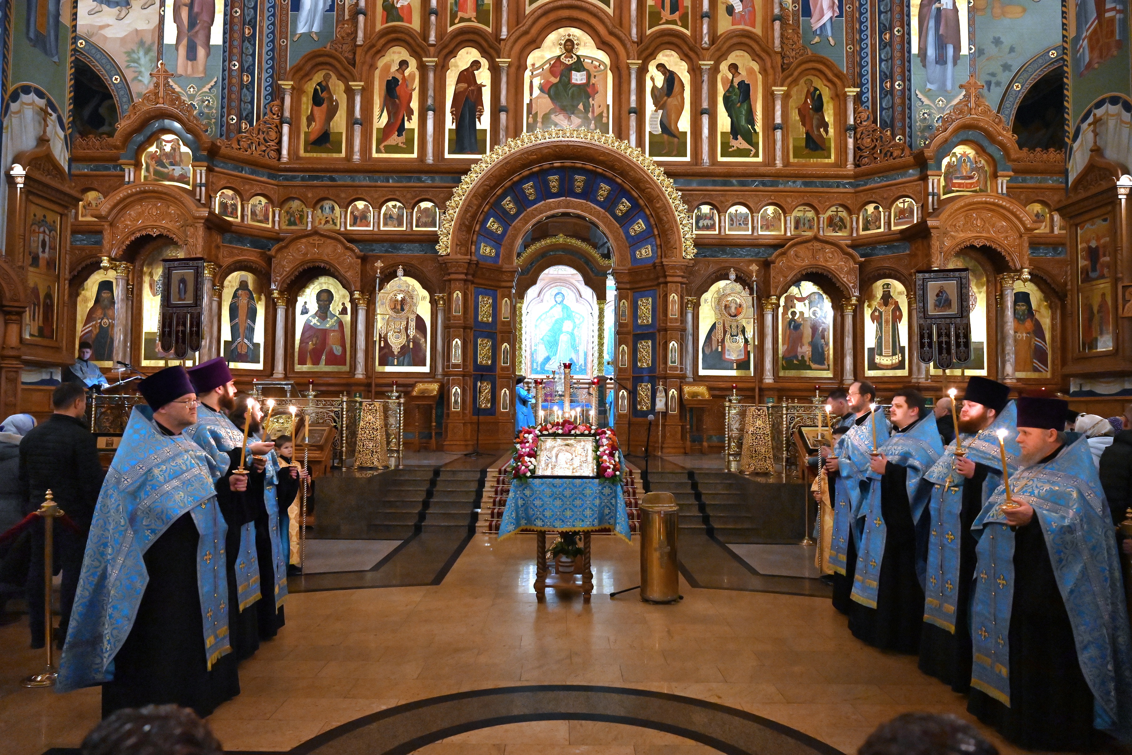 В канун празднования Казанской иконы Пресвятой Богородицы в Благовещенском кафедральном соборе города Воронежа было совершено Всенощное бдение с чином литии.