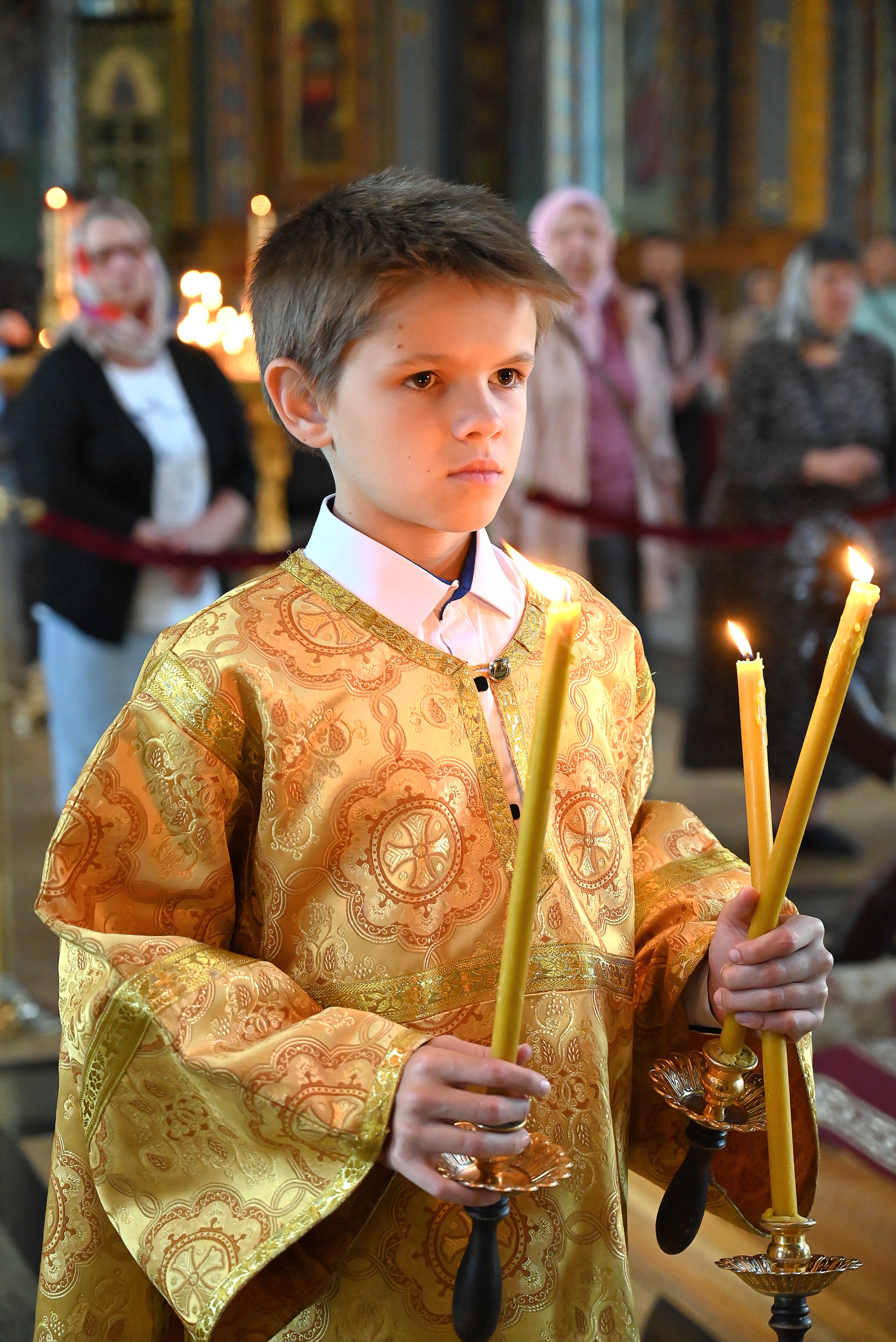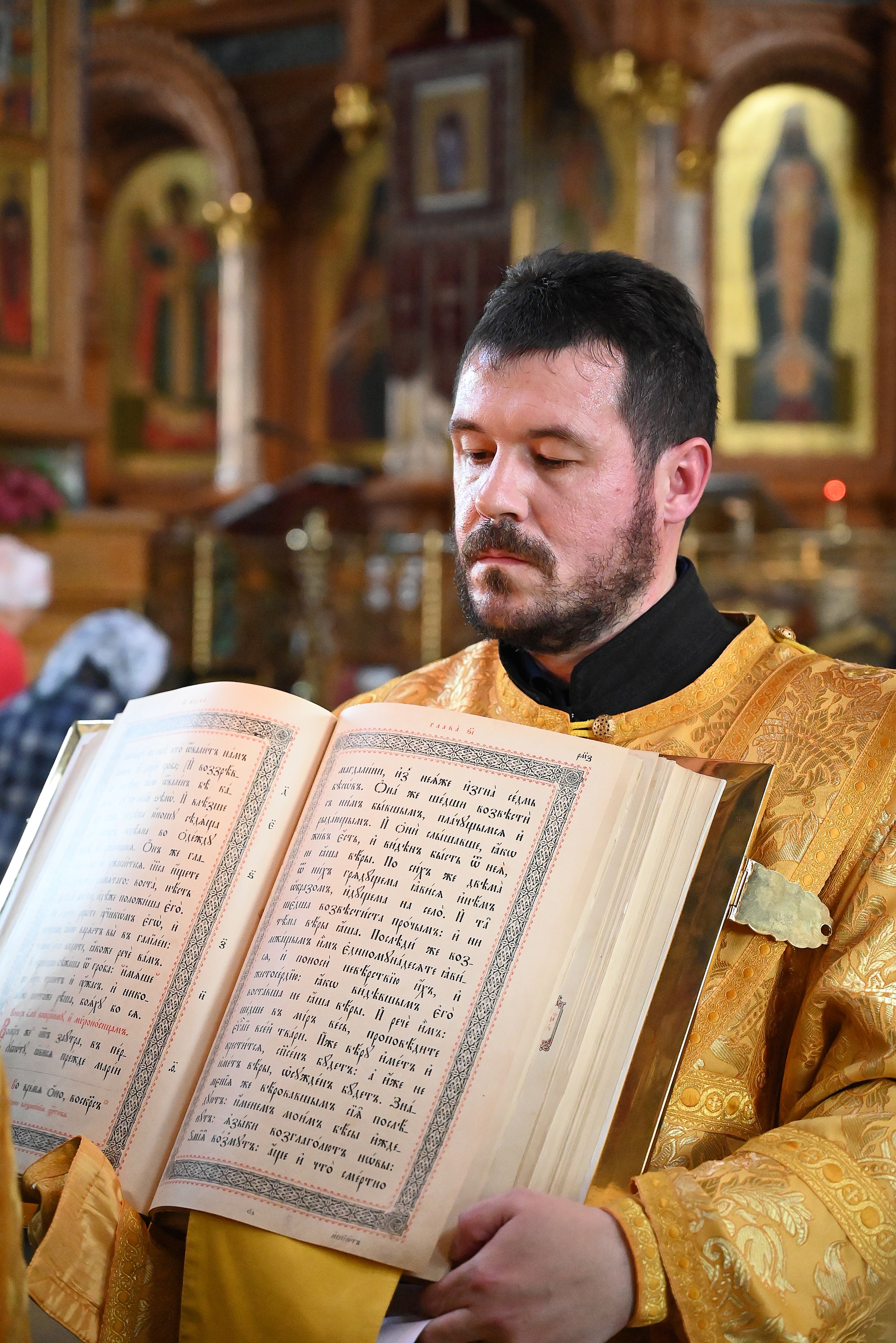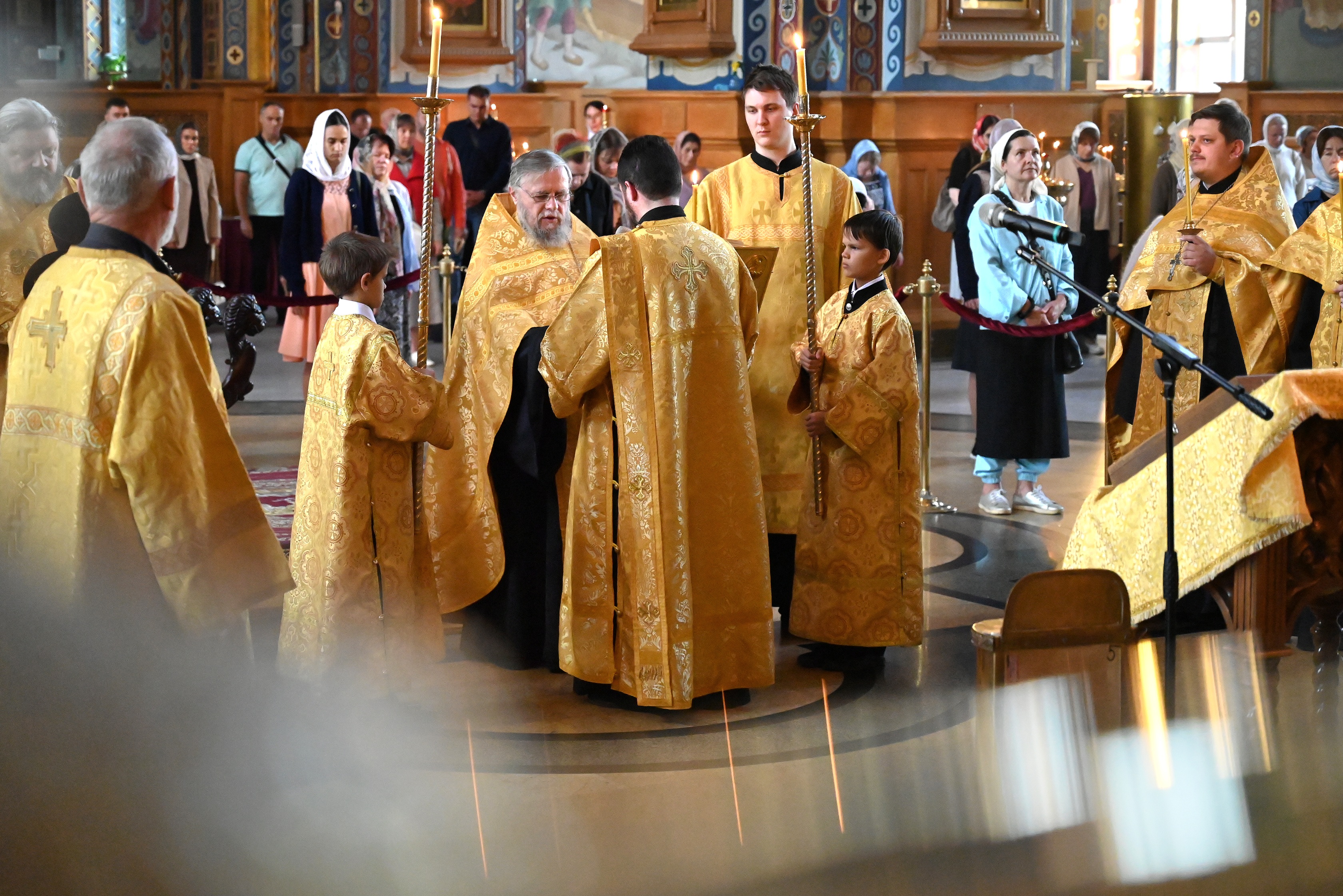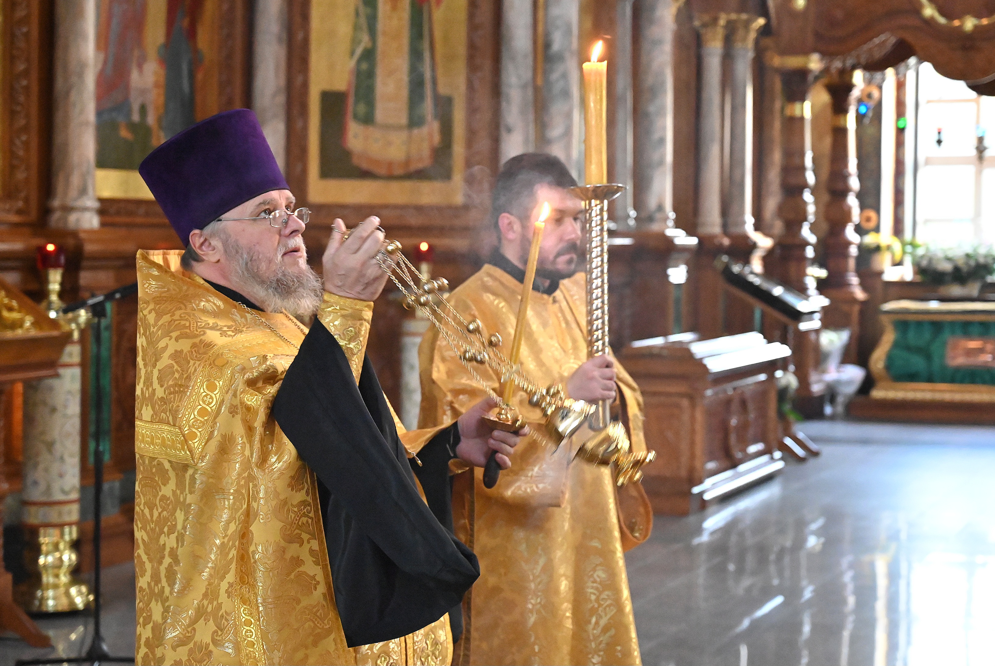После чтения шестопсалмия на полиелее отец Алексий совершил полное каждение храма и возгласил воскресное Евангельское зачало. По прочтении Евангелия священнослужители с прихожанами собора пропели «Воскресение Христово видевше...».
