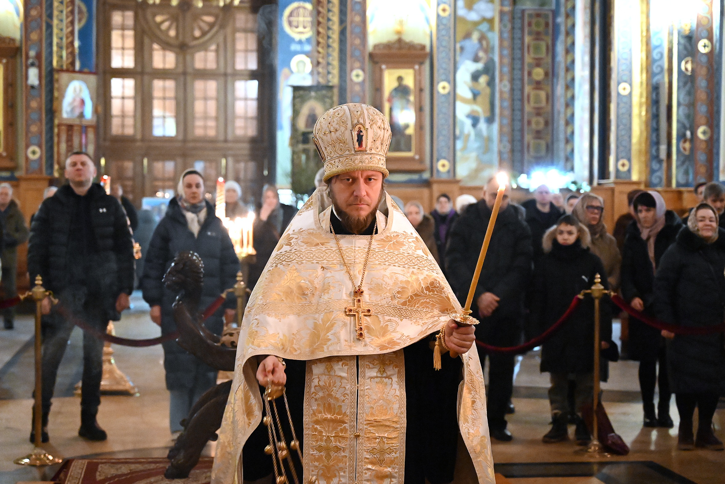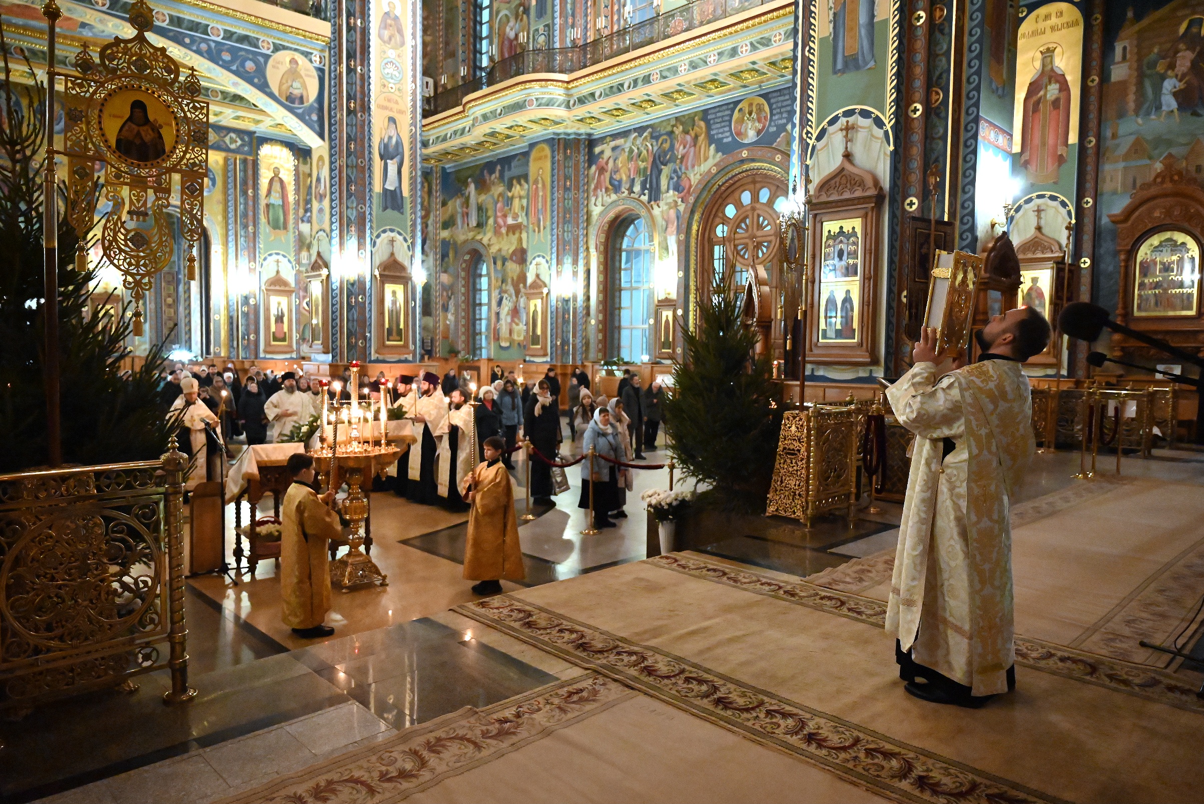 Богослужебные песнопения исполнял смешпный хор кафедрального собора под управлением регента Ильи Ижогина.