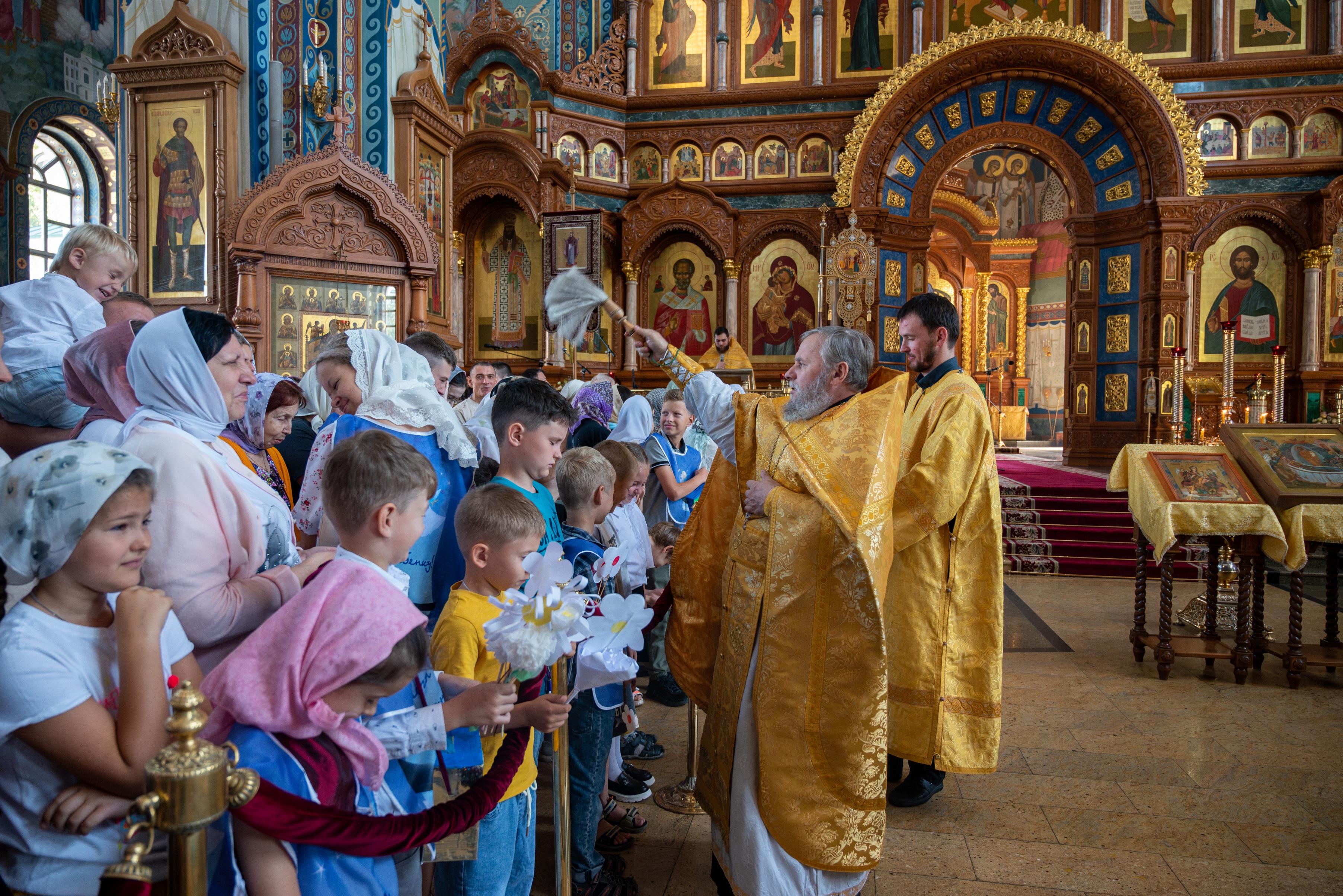 После отпуста литургии духовенство совершило молебен перед началом учения отроков.