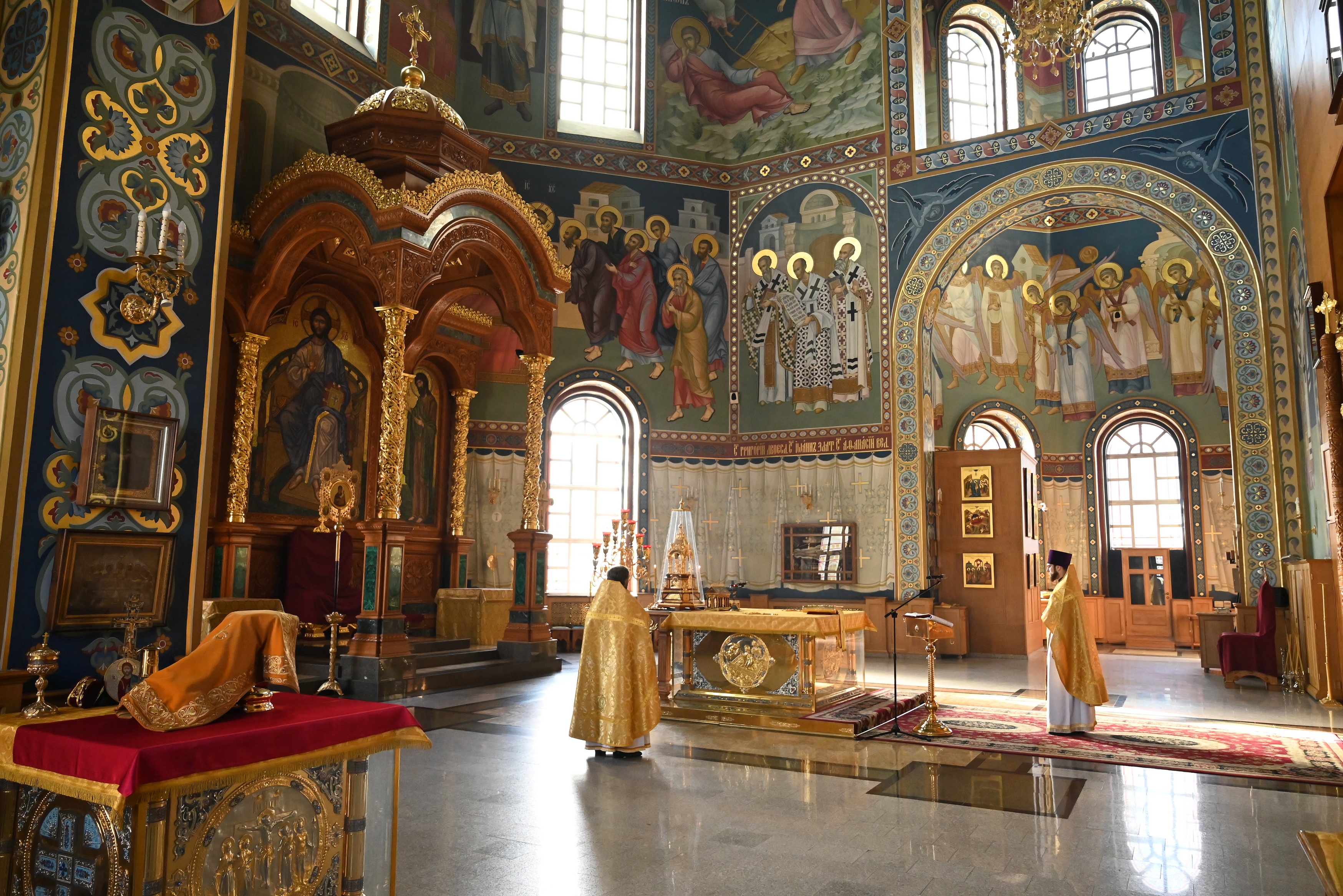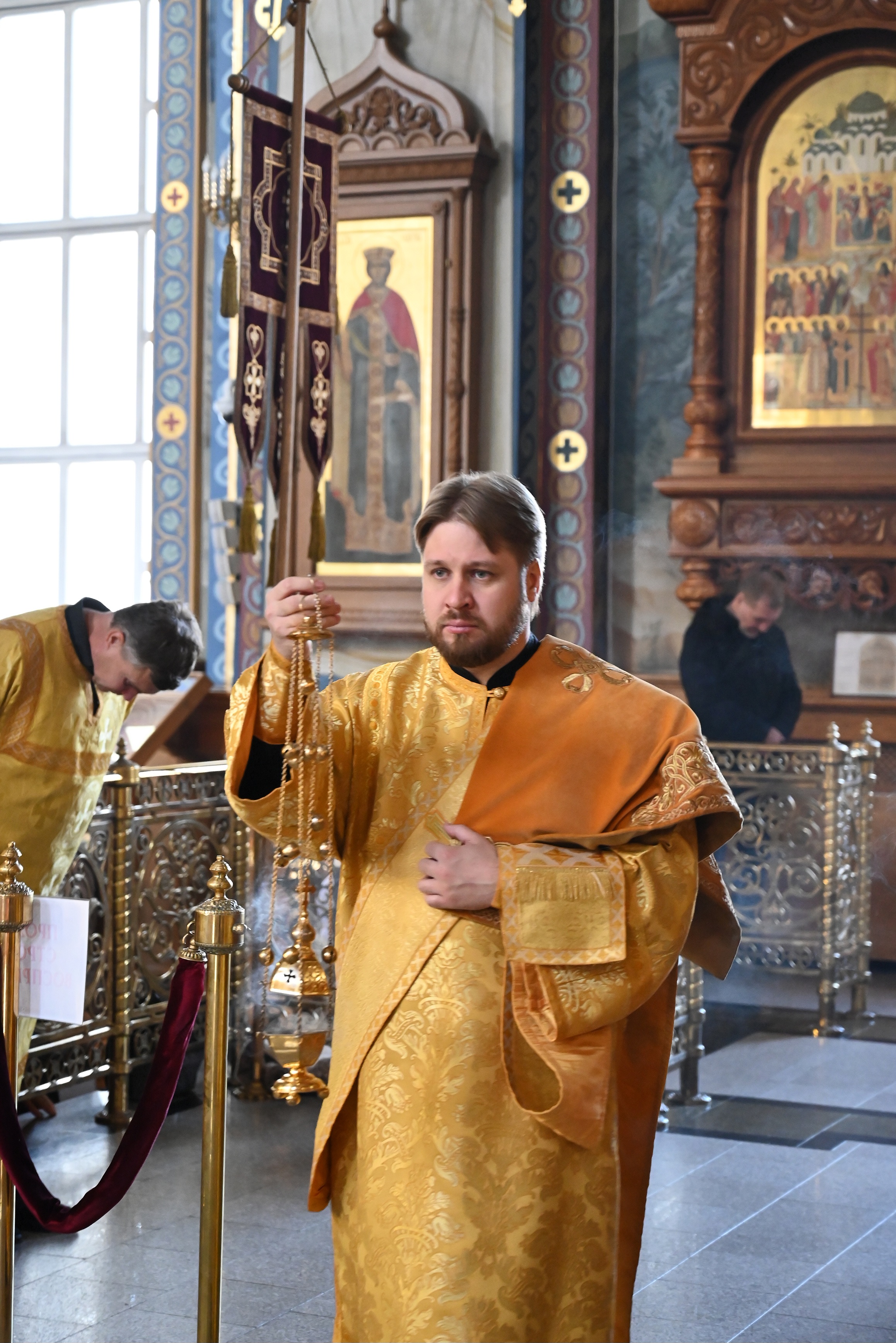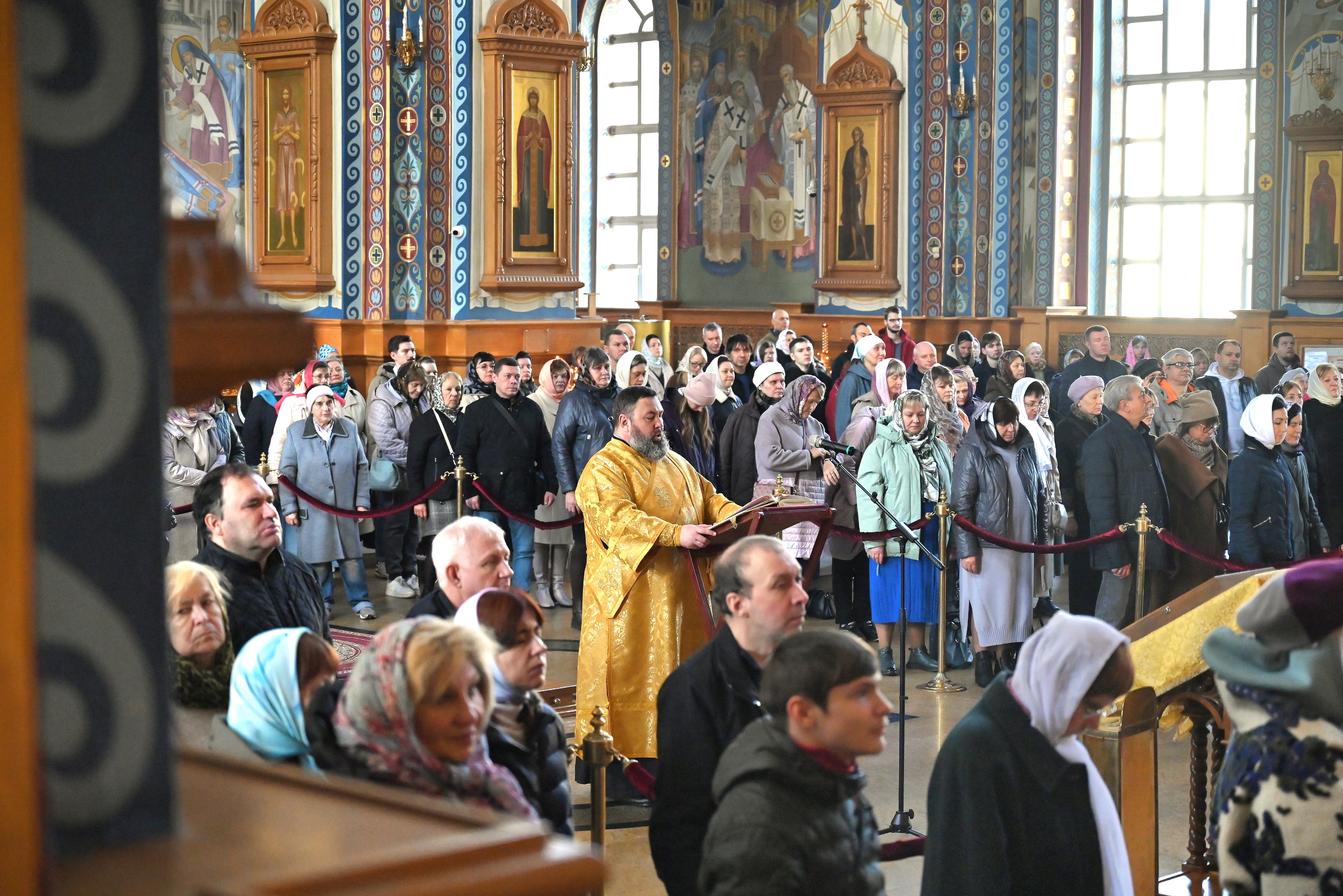 В Благовещенском кафедральном соборе была совершена Божественная литургия. Богослужение возглавил благочинный собора иерей Леонид Куламов в сослужении духовенства храма.