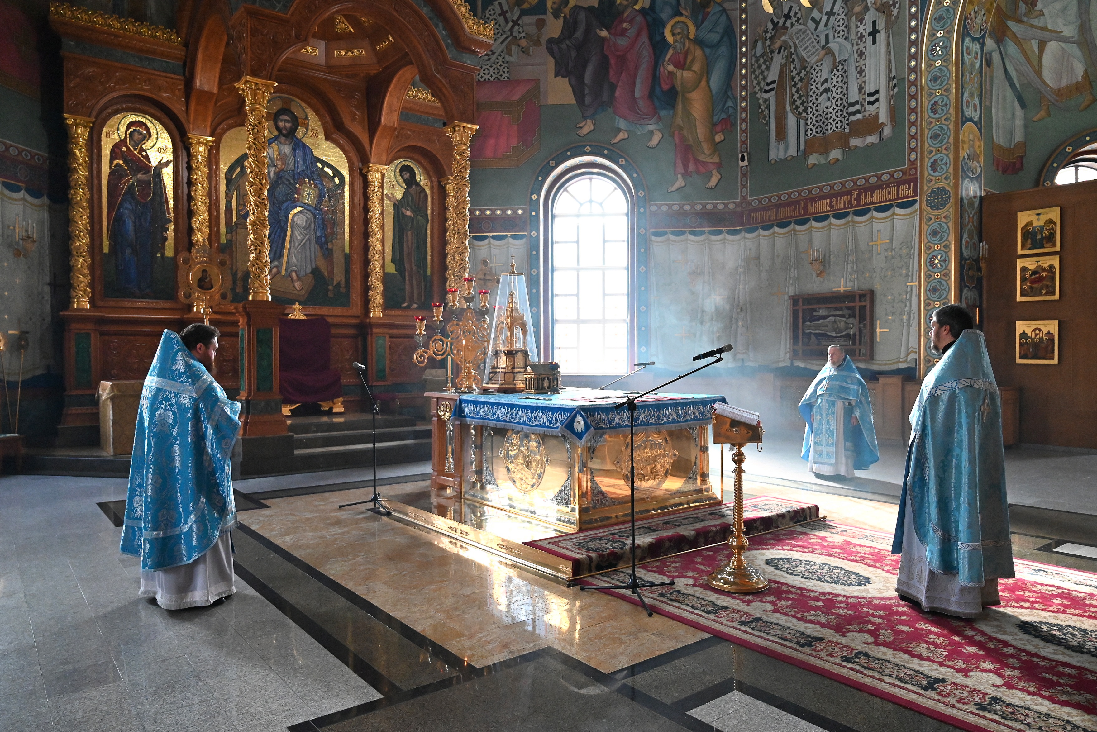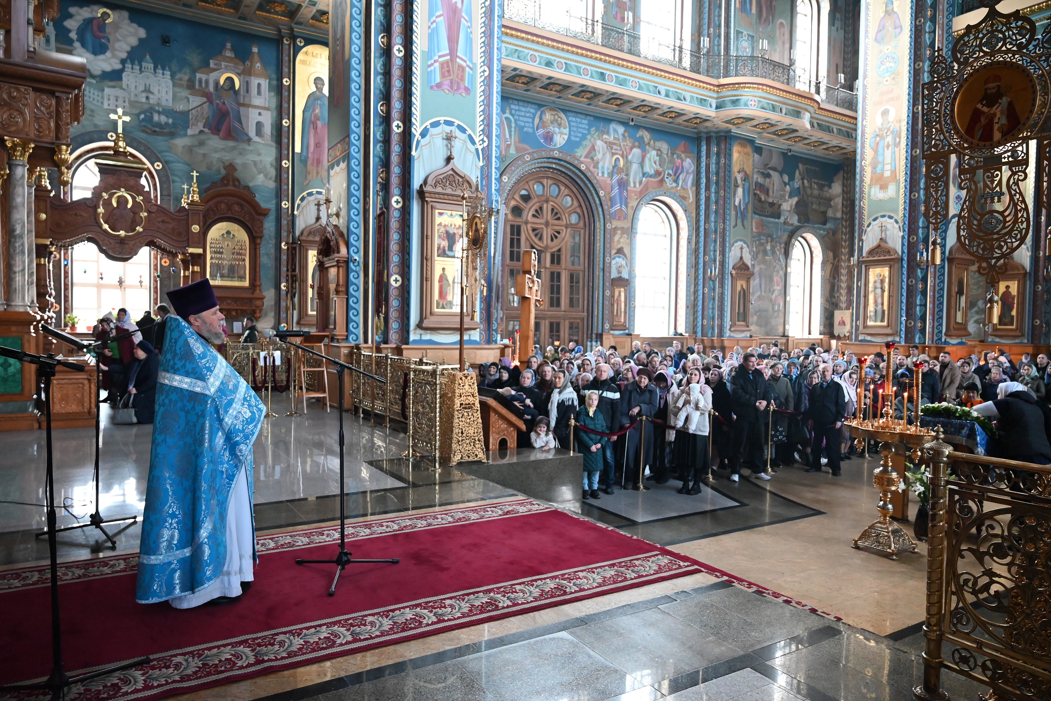 Богослужение возглавил ключарь кафедрального собора иерей Павел Колбасов. Его преподобию сослужили клирики храма.