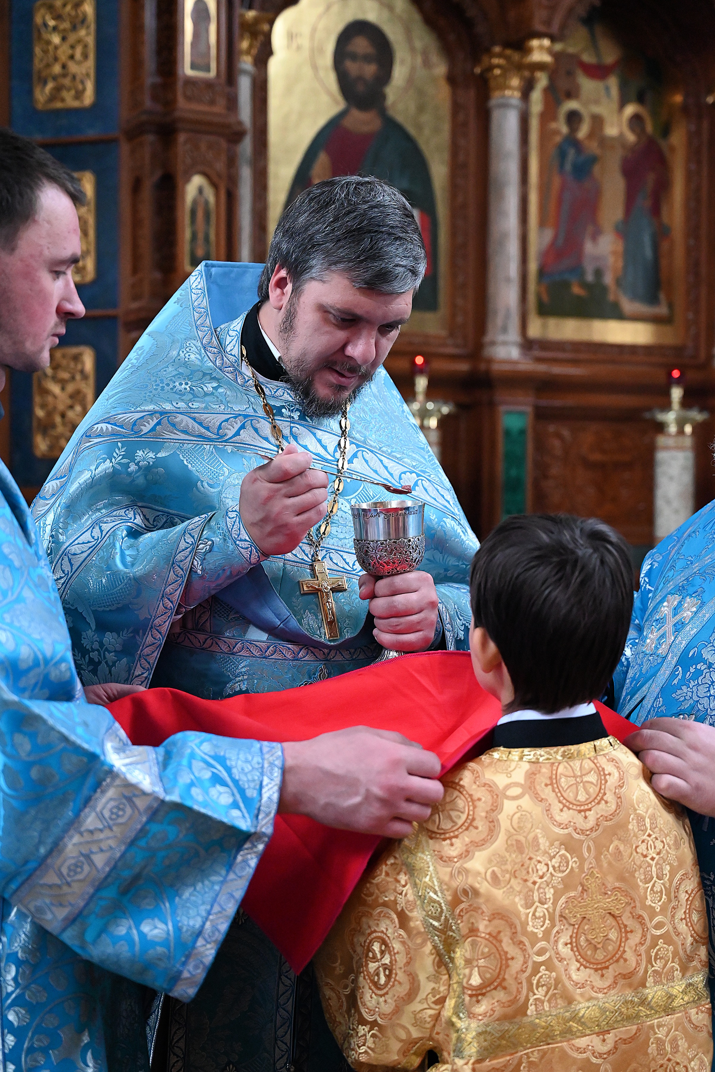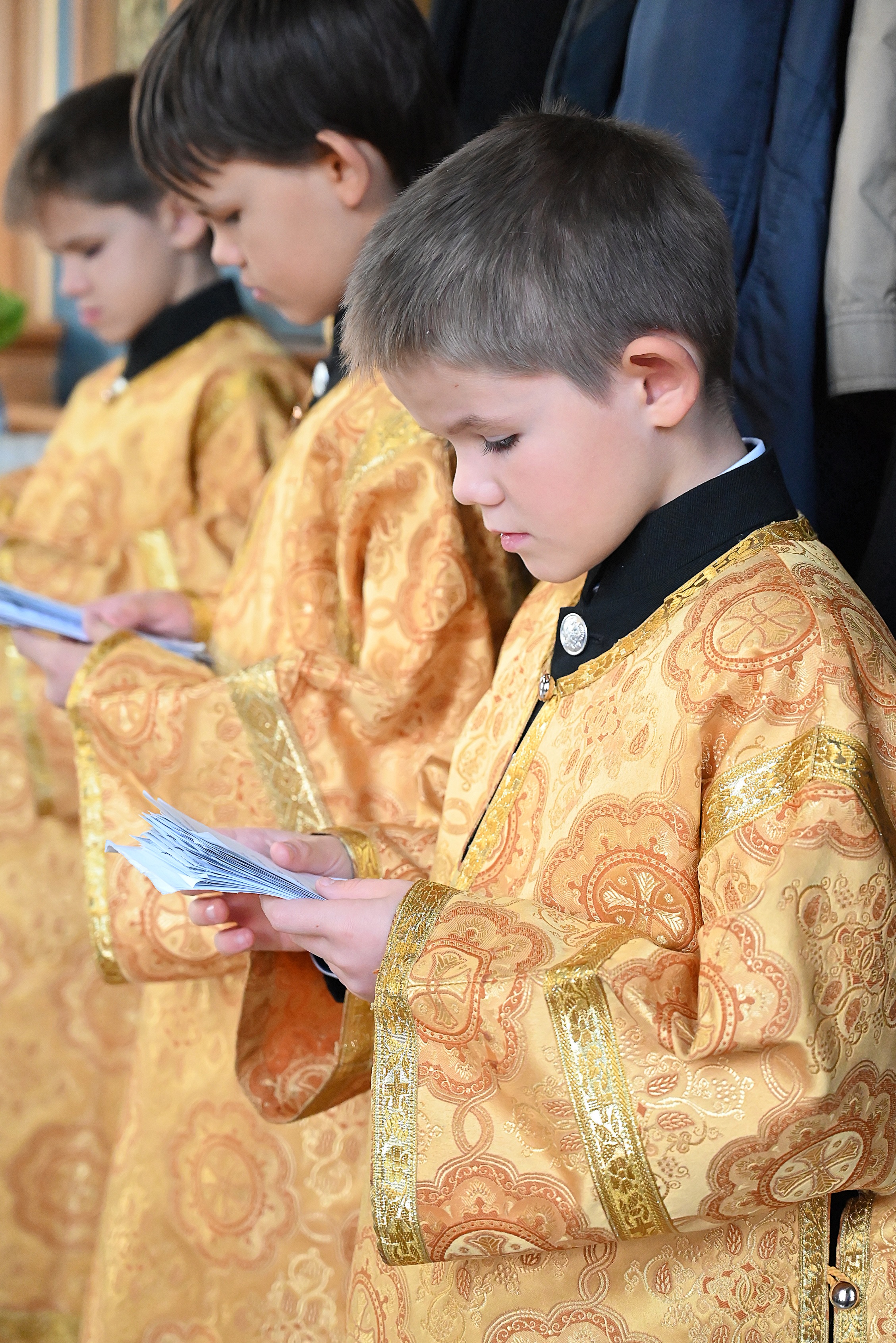Песнопения за богослужением исполнял мужской хор под управлением регента Михаила Перфильева.