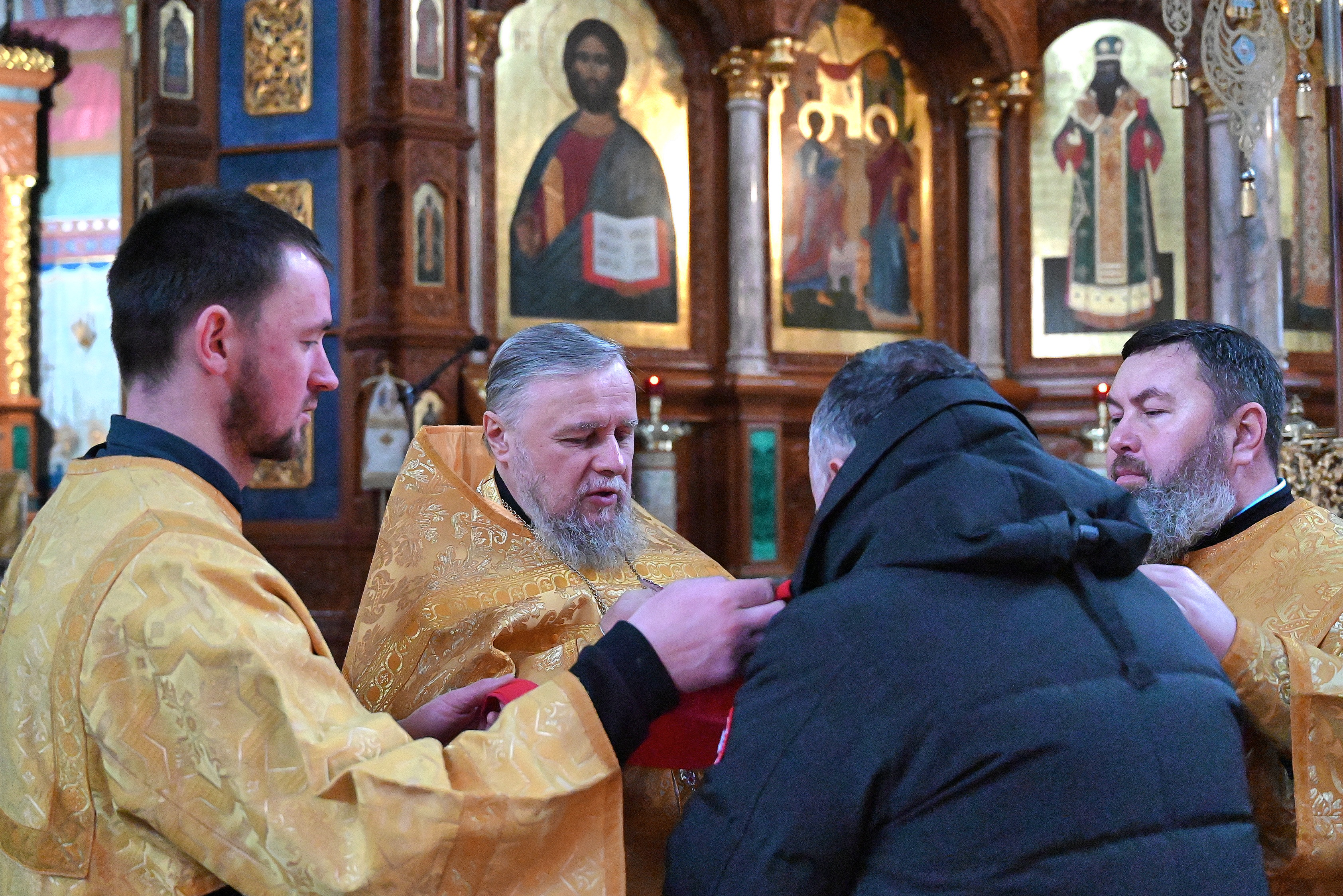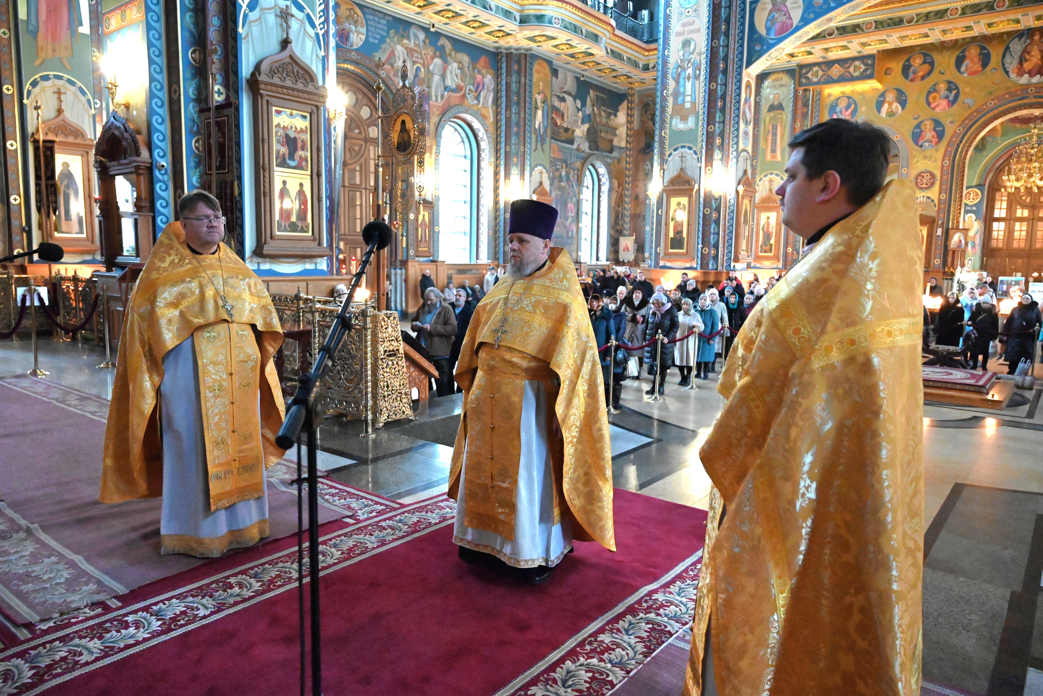 Богослужение возглавил клирик кафедрального собора протоиерей Алексий Ивашкевич в сослужении протоиерея Владимира Чернышова и иерея Сергия Корнеева.
