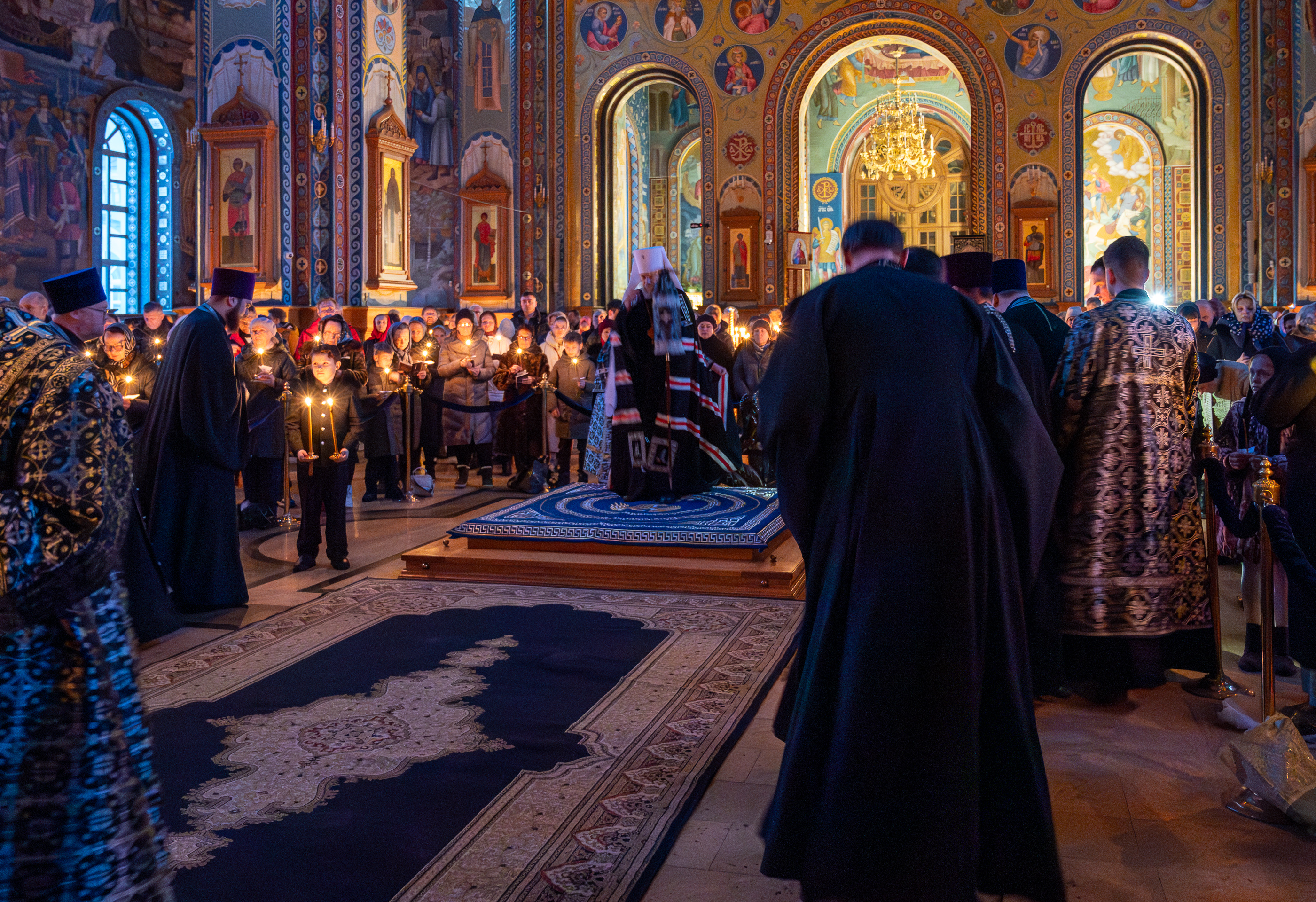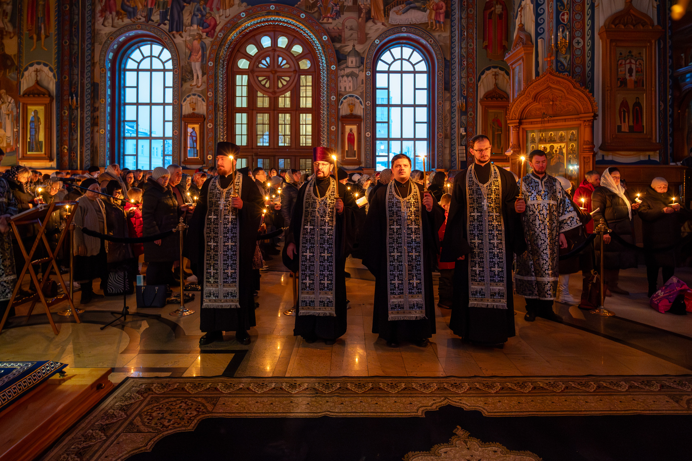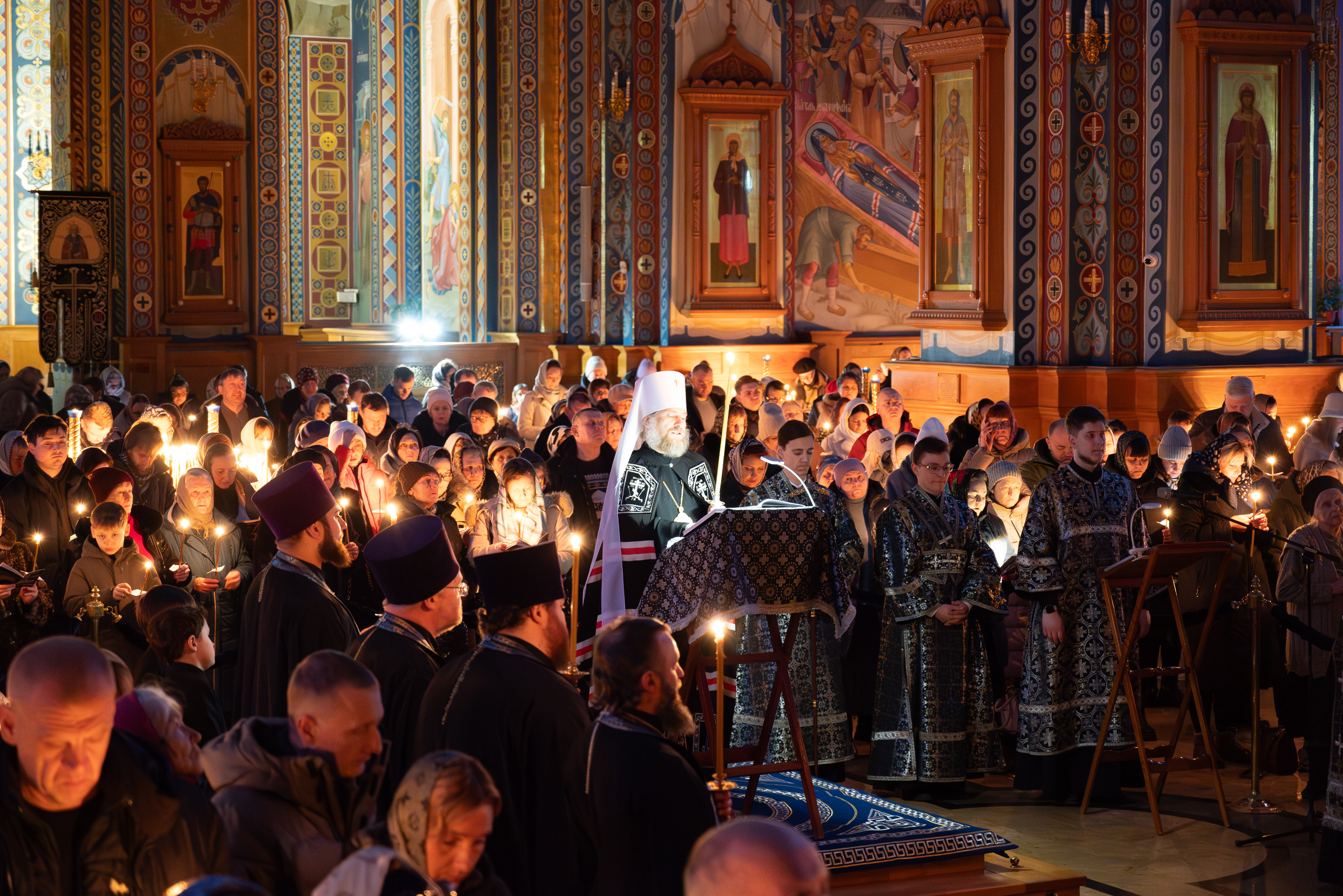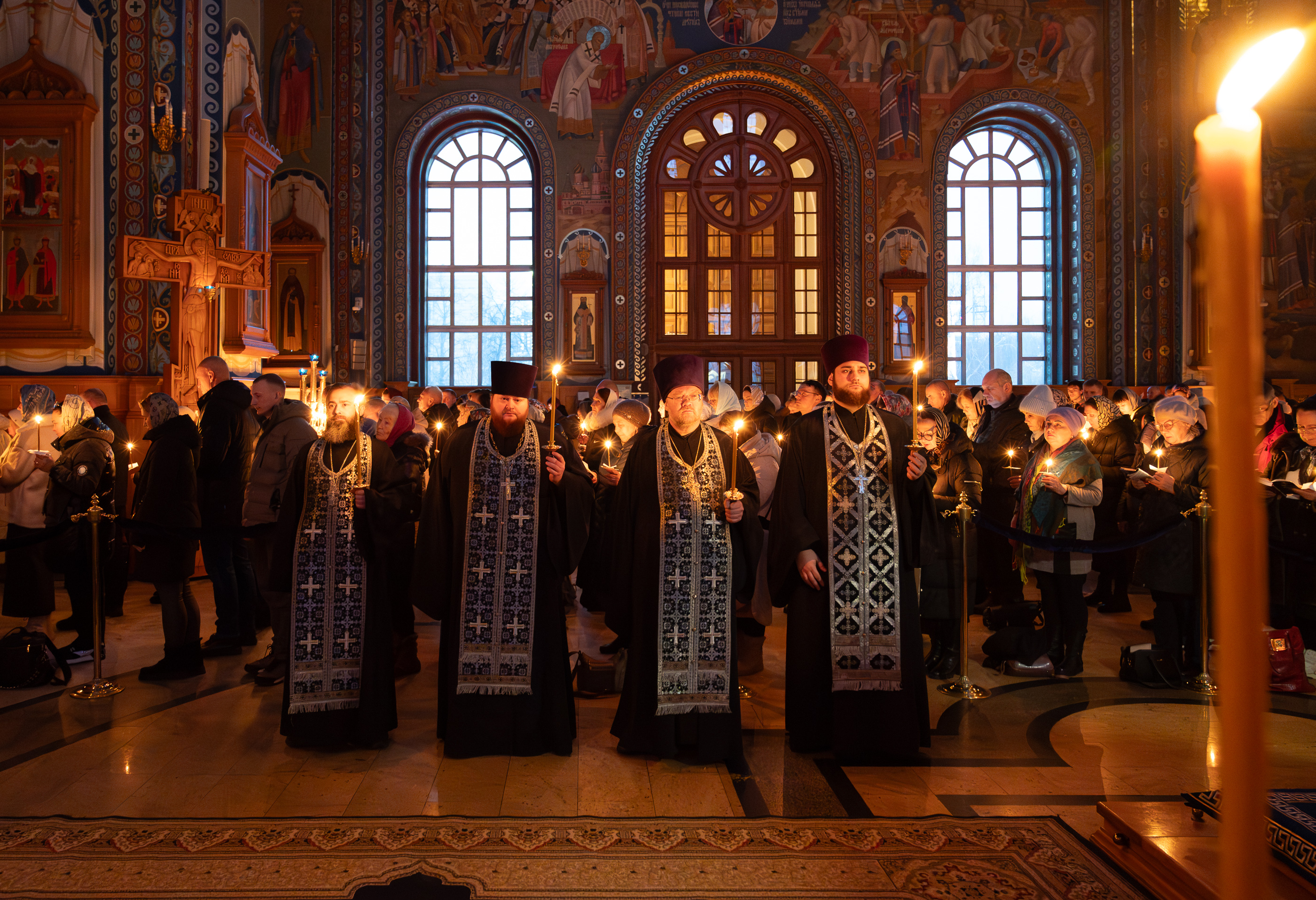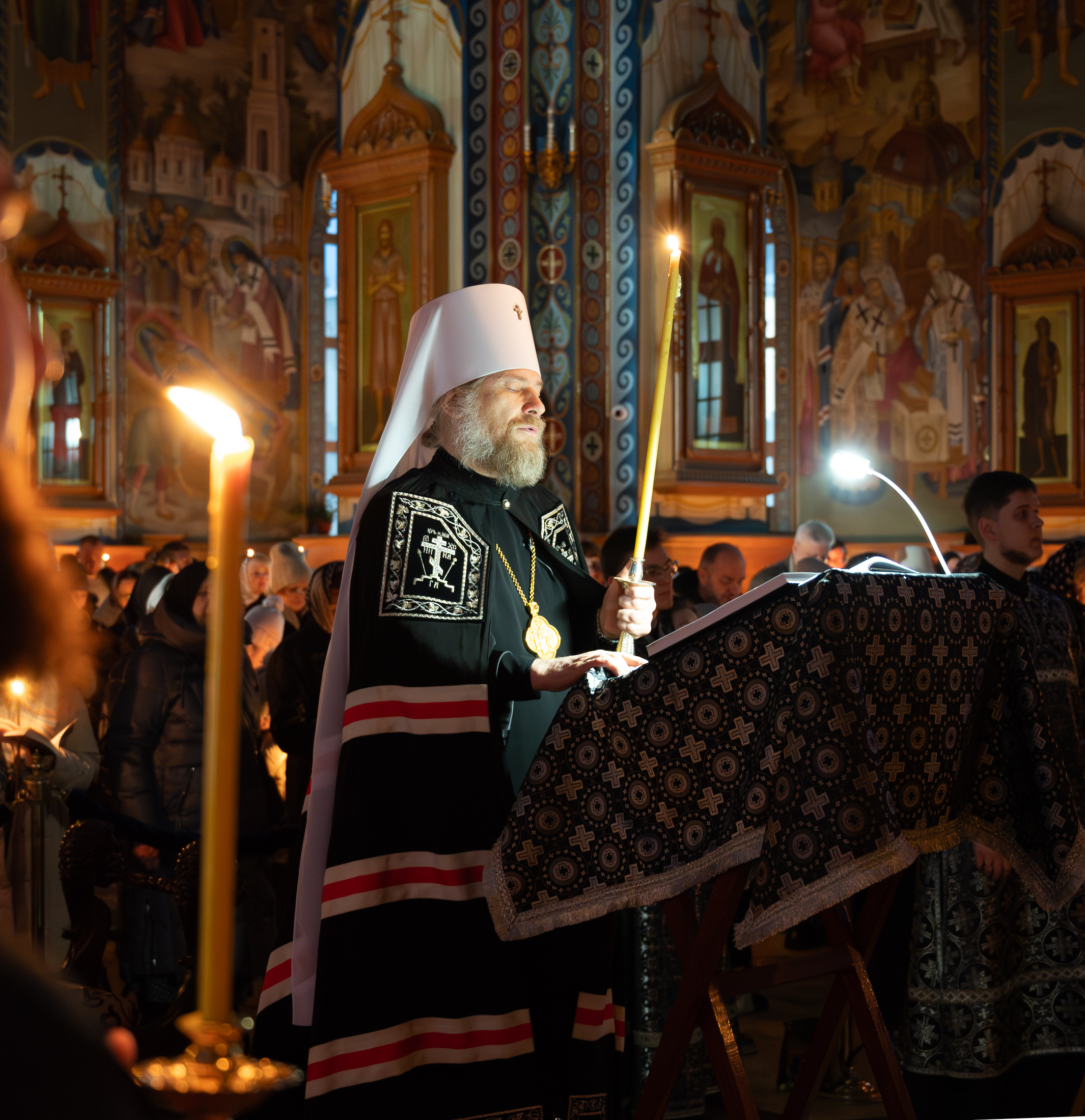 23 февраля 2026 года, Глава Воронежской митрополии совершил вечернее богослужение с чтением Великого покаянного канона преподобного Андрея Критского в Благовещенском кафедральном соборе.