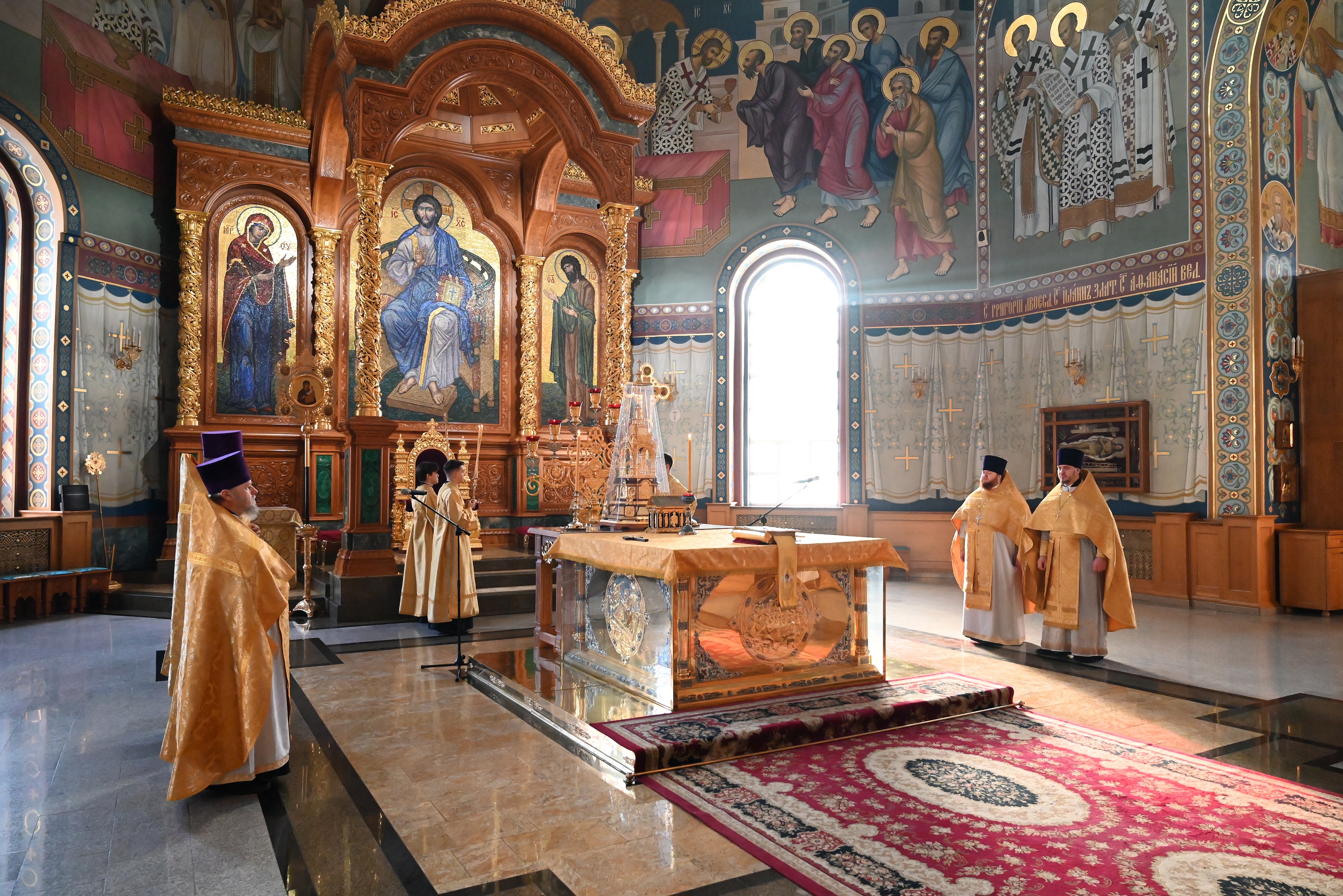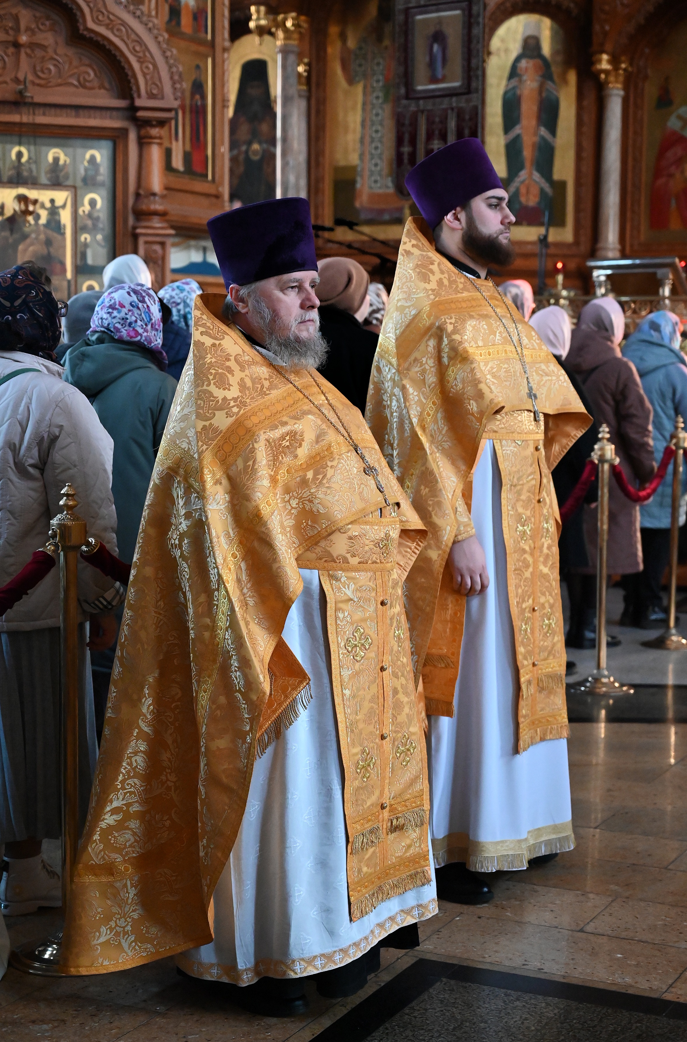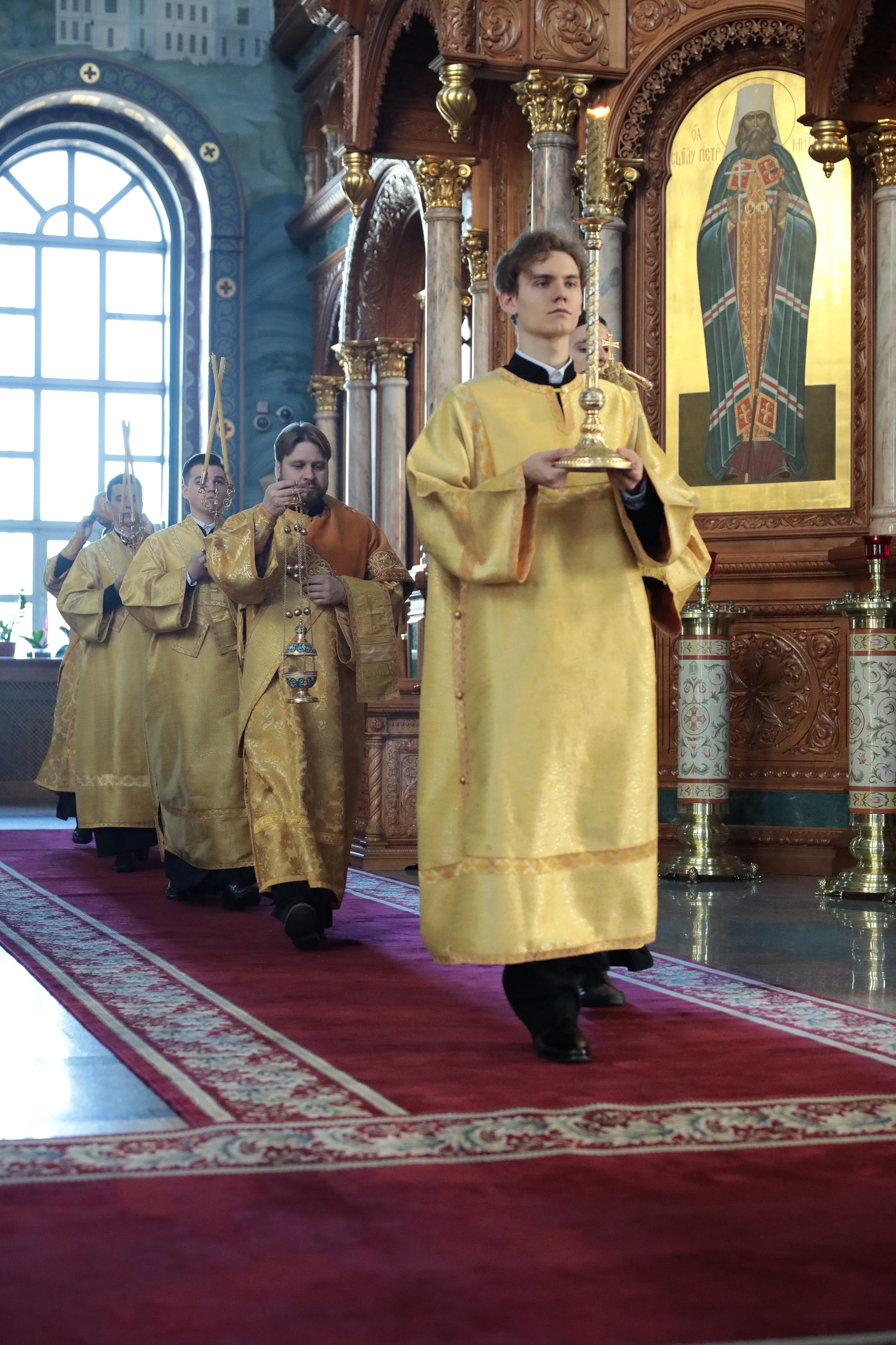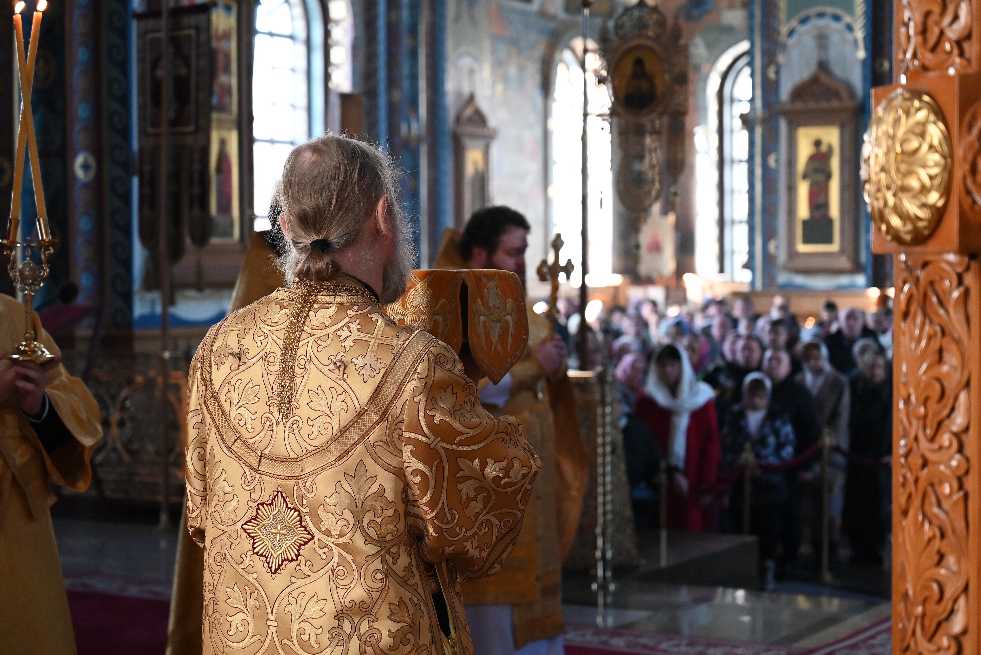 Богослужебные песнопения исполнял мужской хор кафедрального собора под управлением регента Михаила Перфильева.