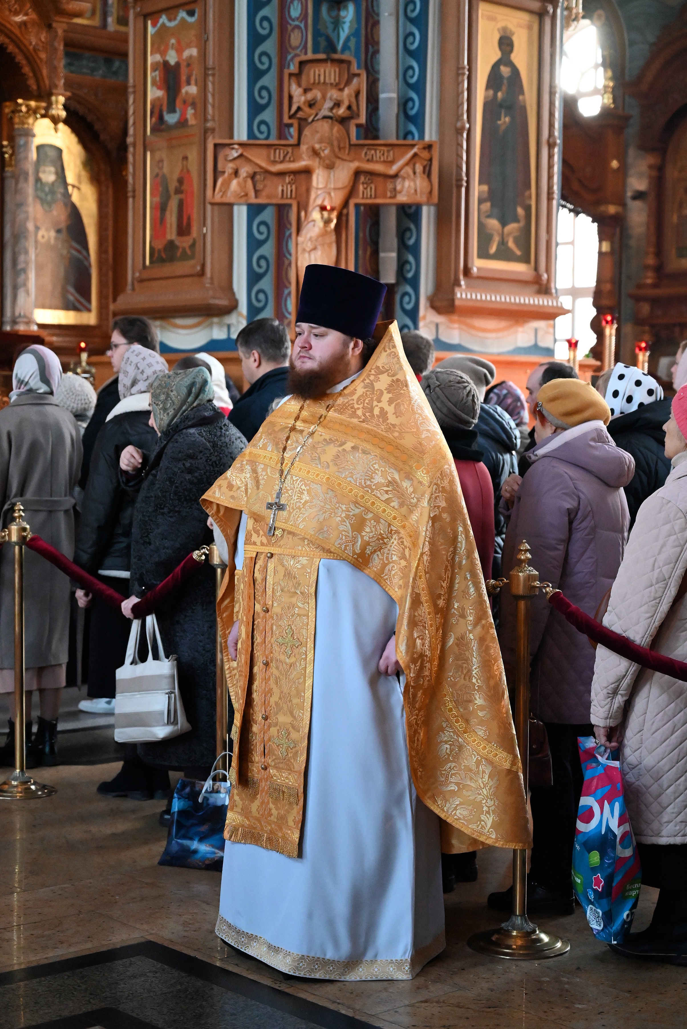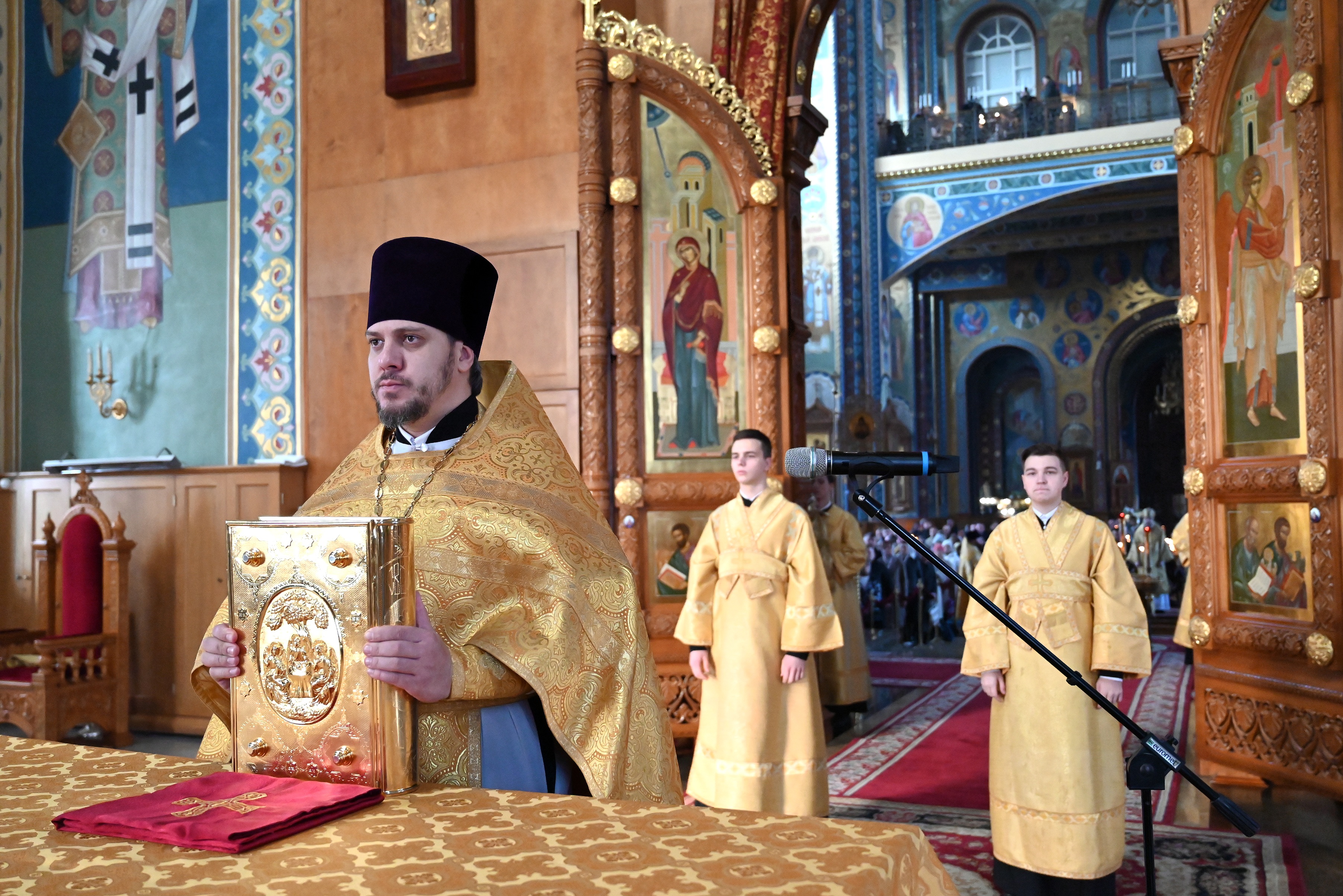 Перед причащением мирян проповедь на тему евангельского чтения произнес клирик кафедрального собора иерей Олег Шурупов.