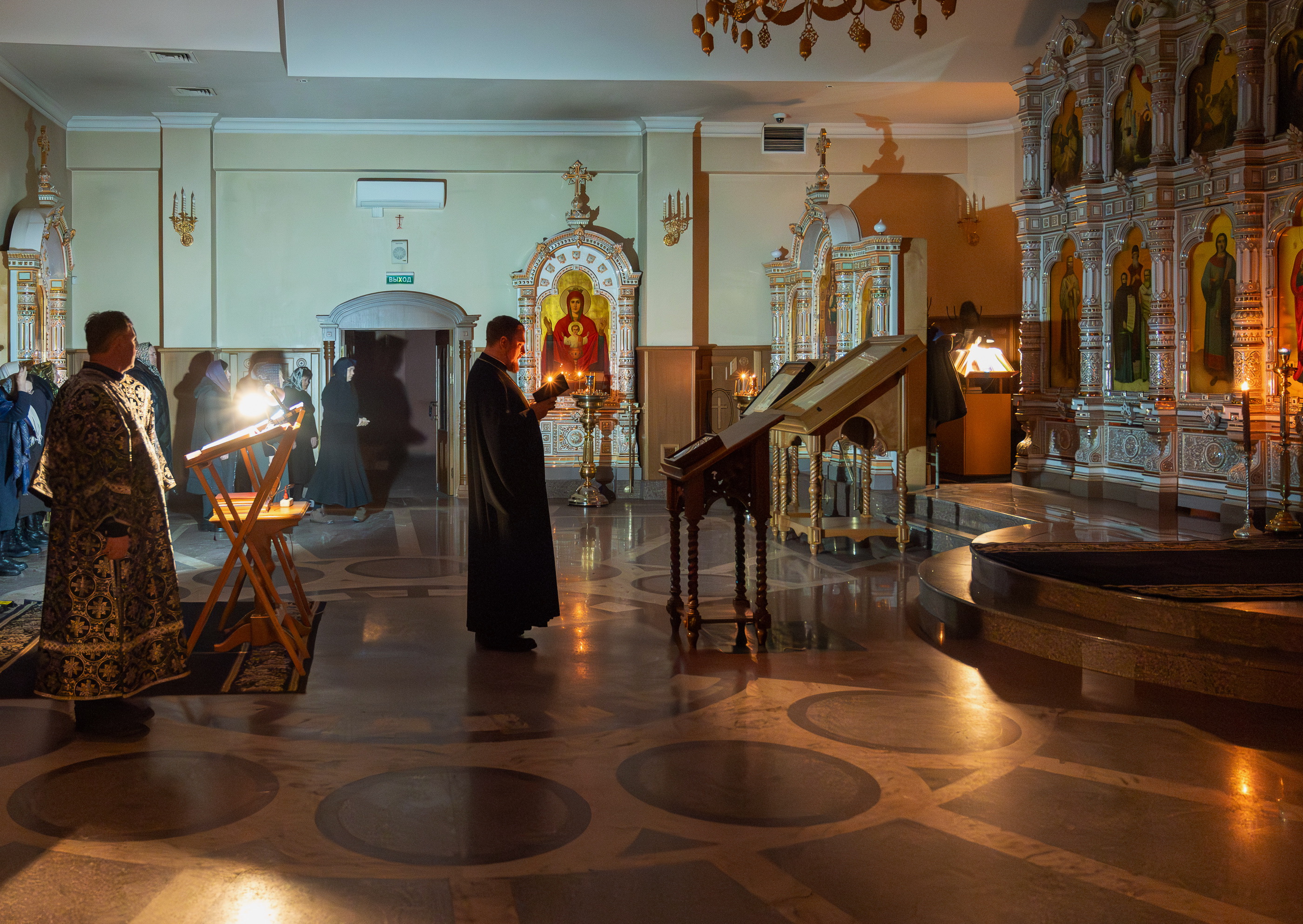 Утром в понедельник первой седмицы Великого поста в нижнем Трехсвятительском храме Благовещенского кафедрального собора совершались: утреня, часы, изобразительны и вечерня. Богослужение совершил ключарь кафедрального собора иерей Леонид Куламов. В алтаре молился митрополит Воронежский и Лискинский Леонтий, глава Воронежской митрополии.