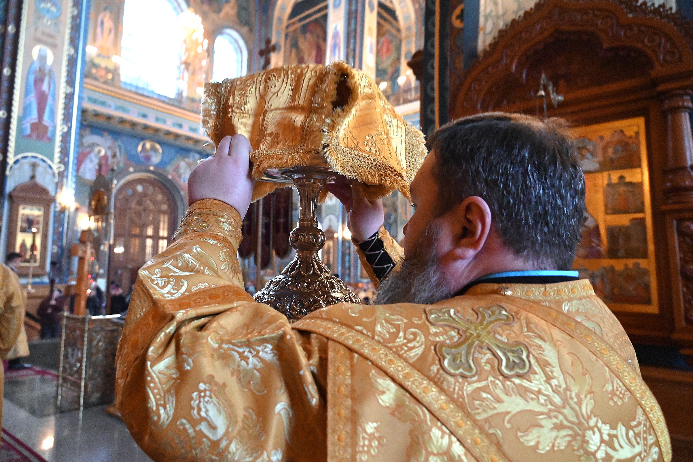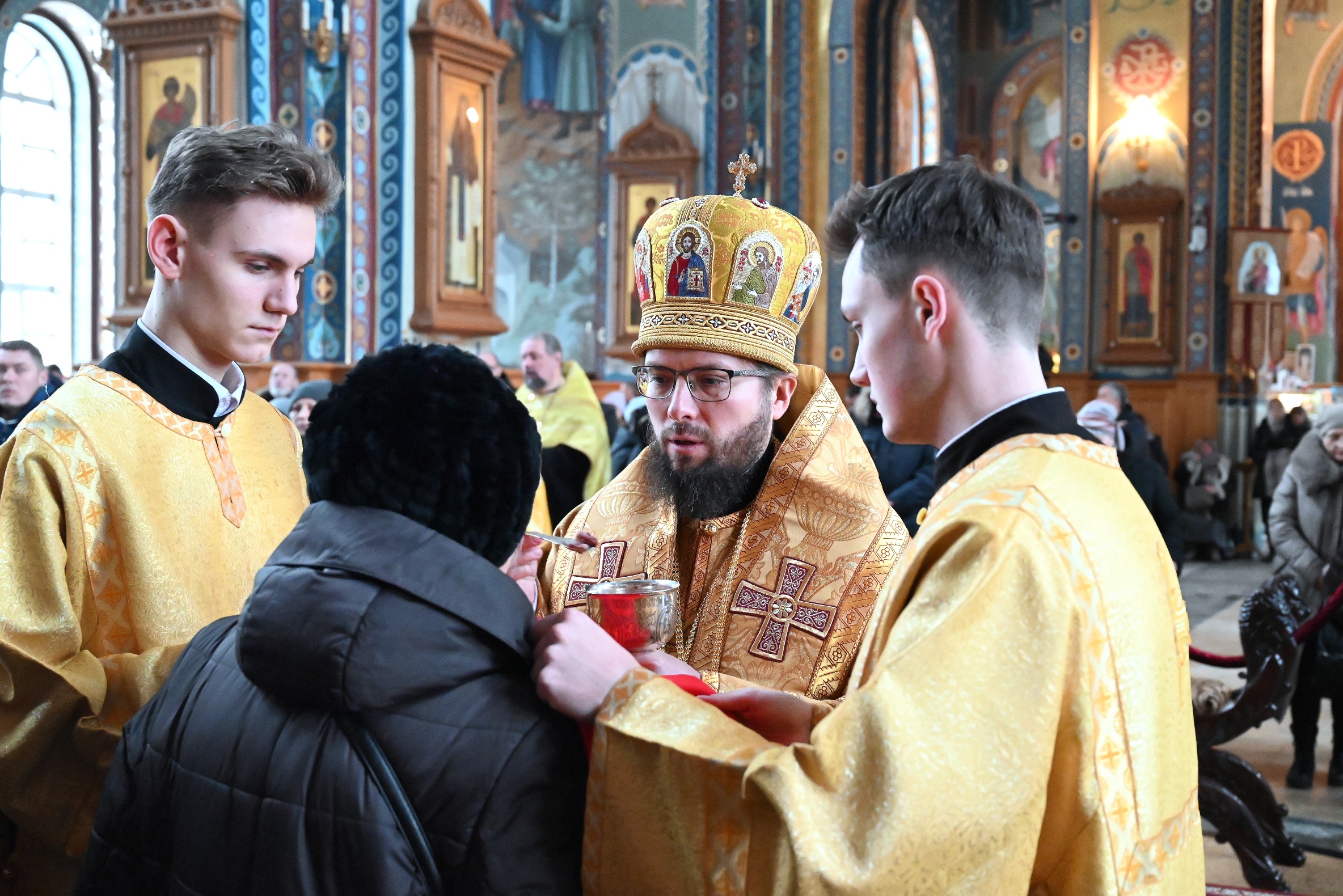 Святых Христовых Таин за архиерейским богослужением причастились все присутствовавшие за богослужением клирики, а также множество мирян.