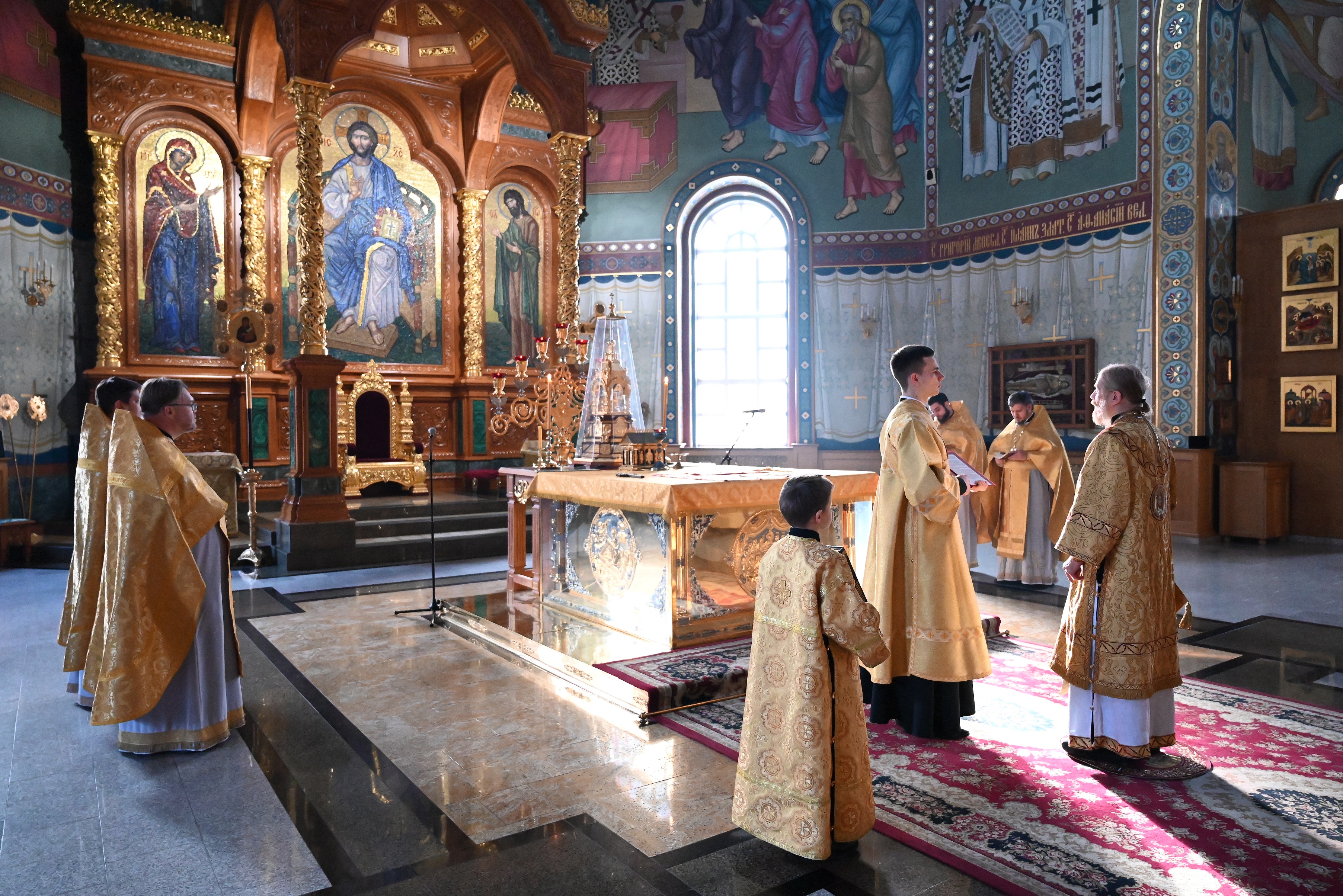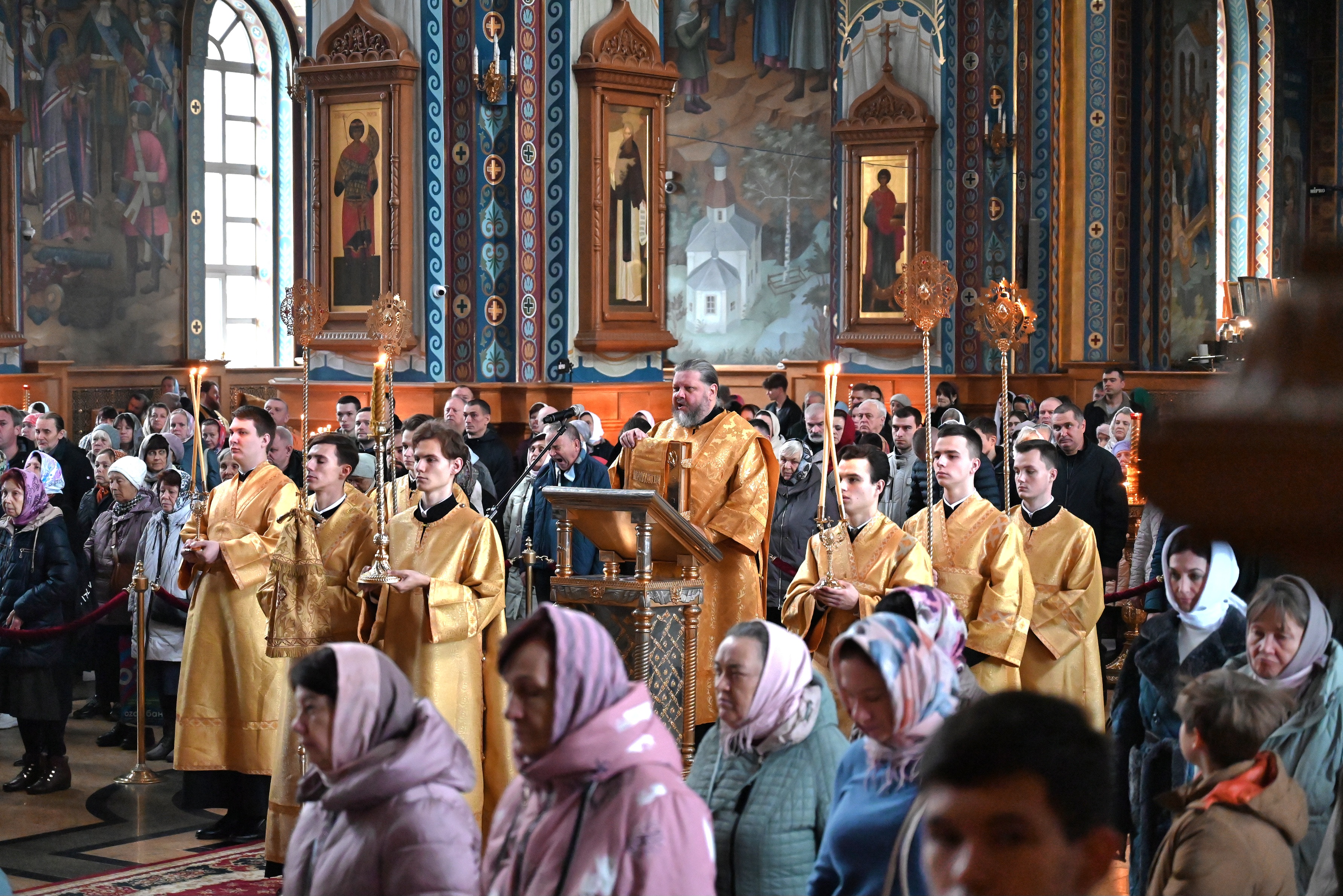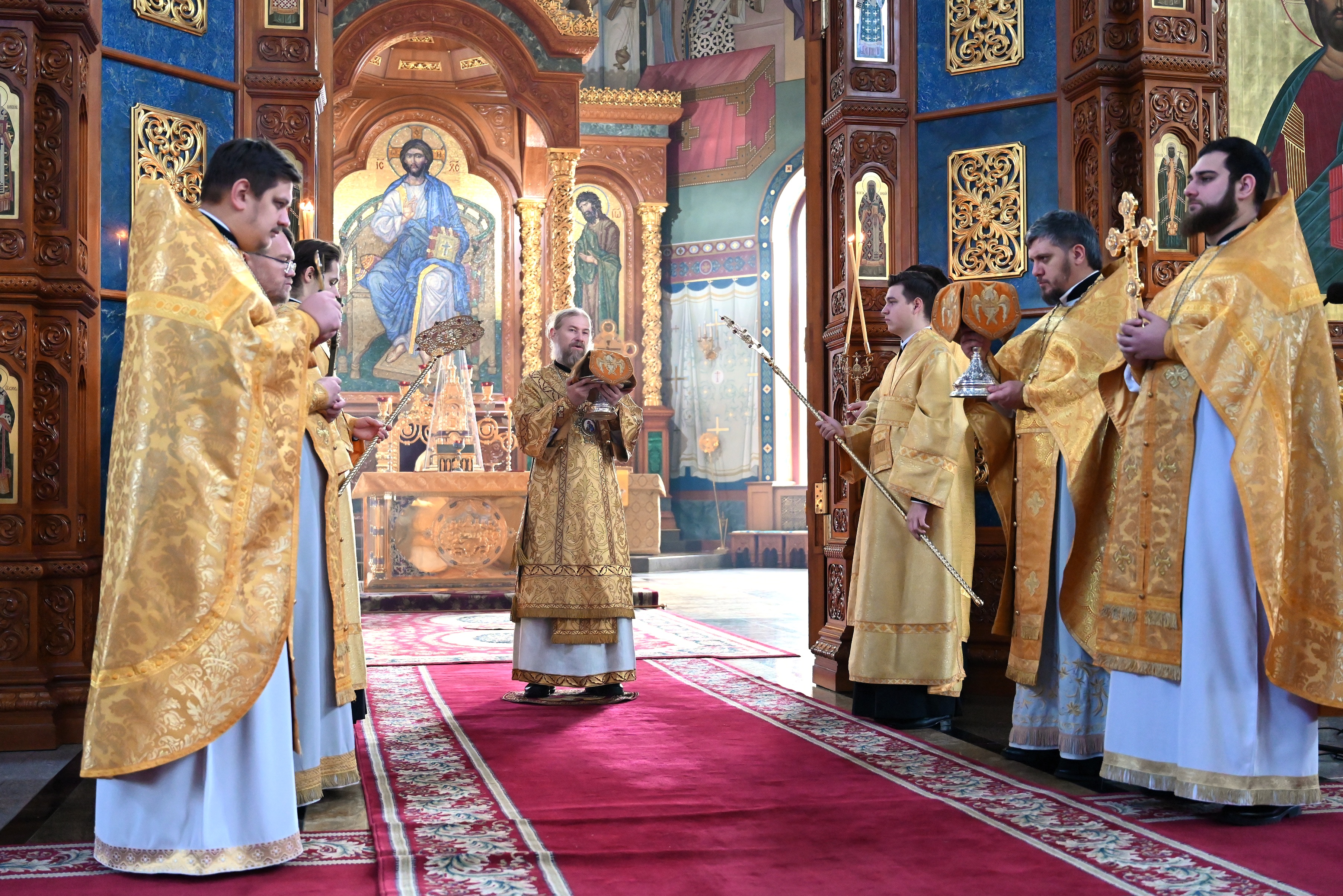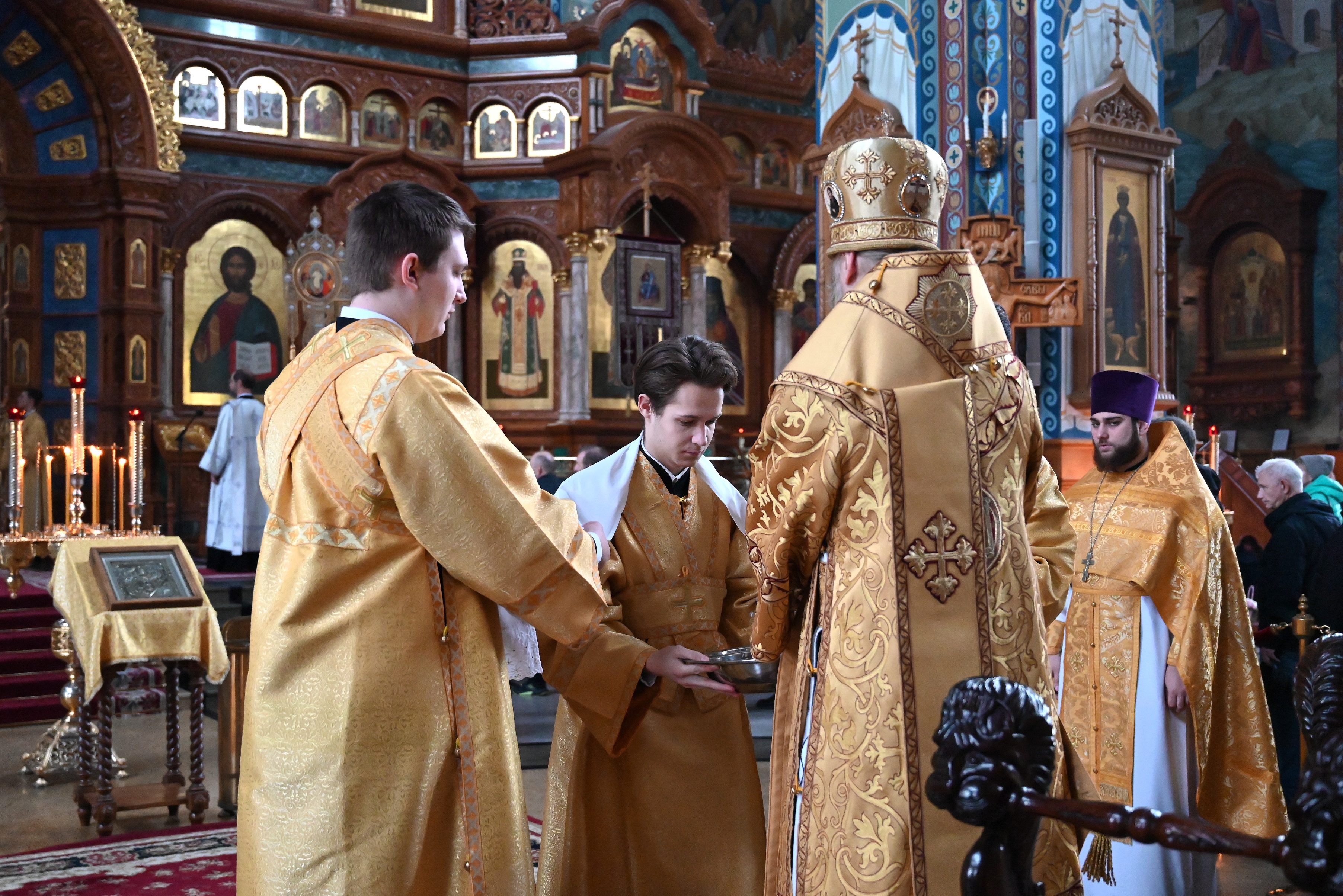 Богослужебные песнопения исполнял мужской хор кафедрального собора под управлением регента Михаила Перфильева.