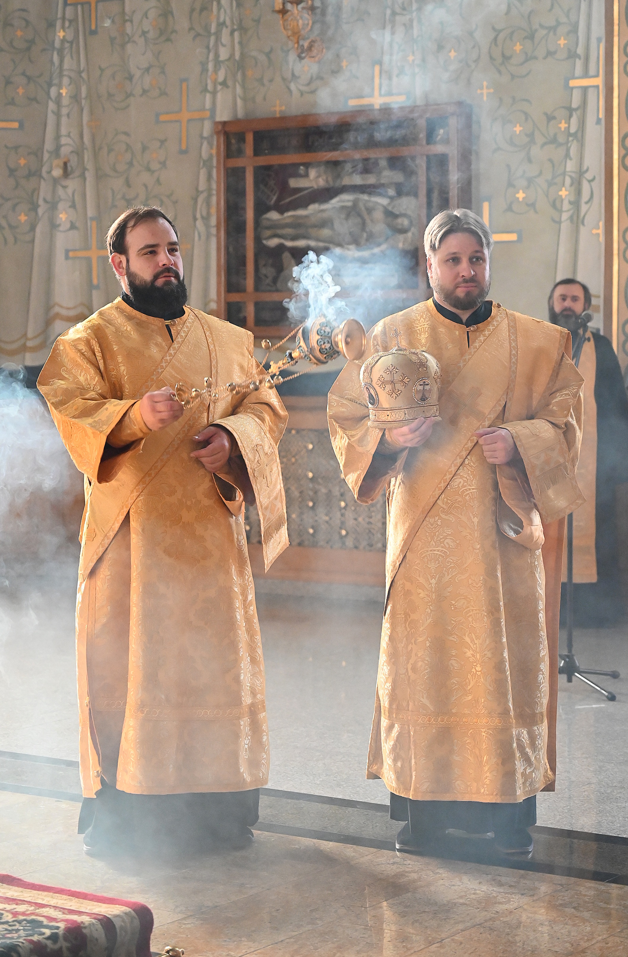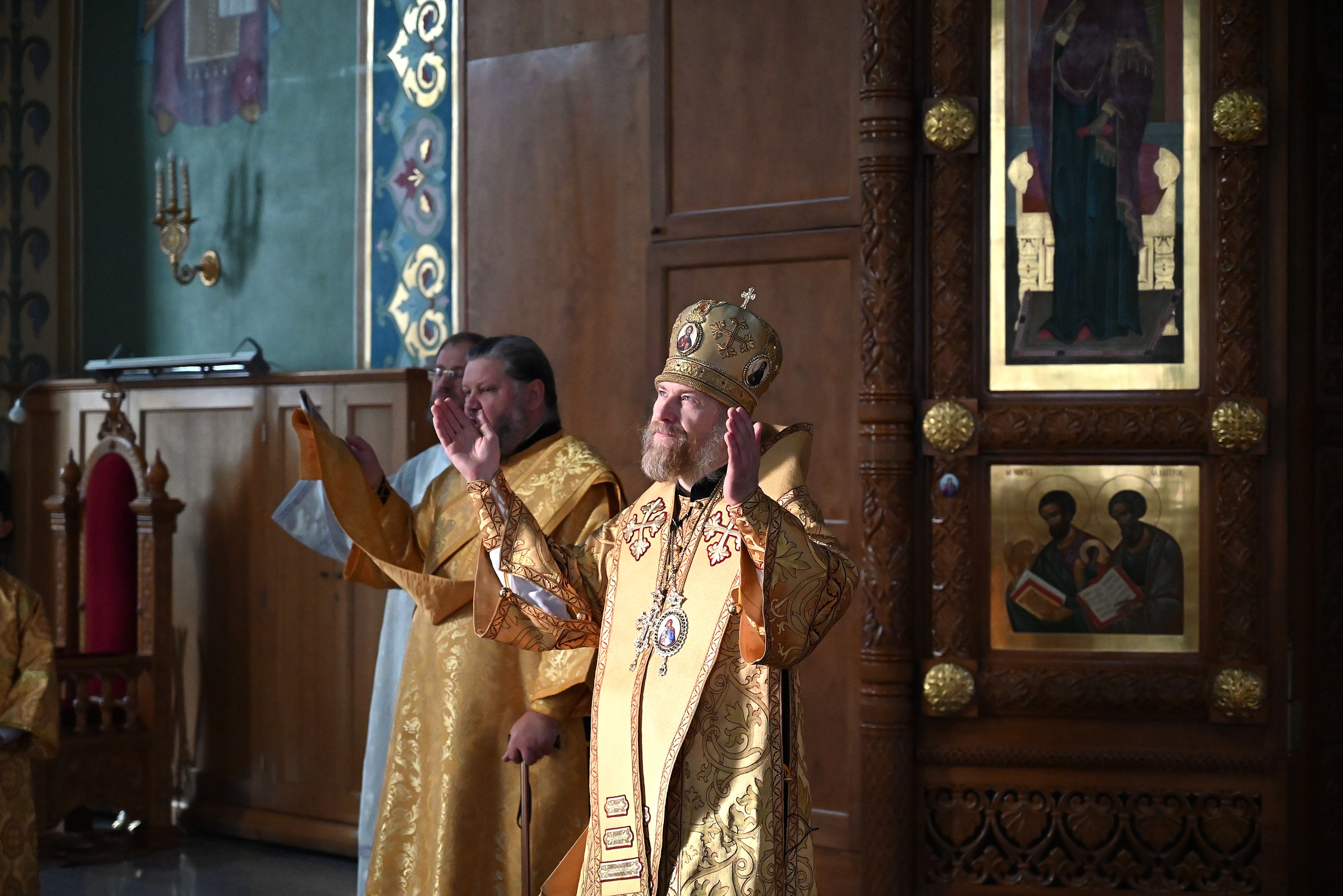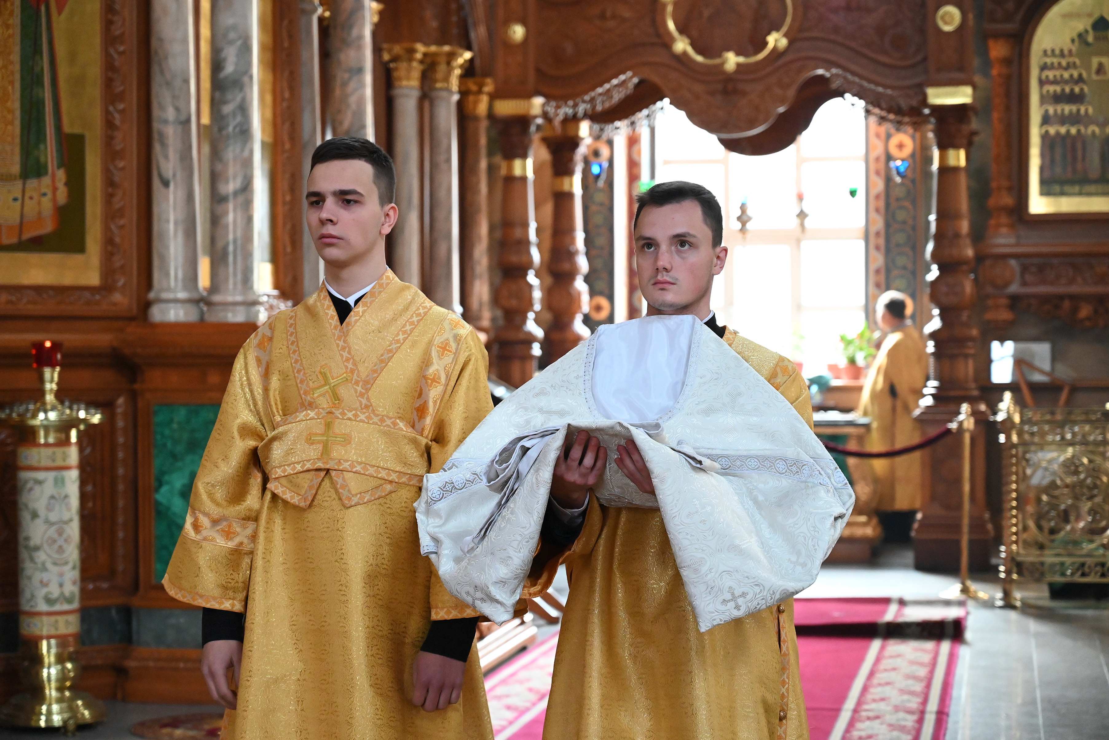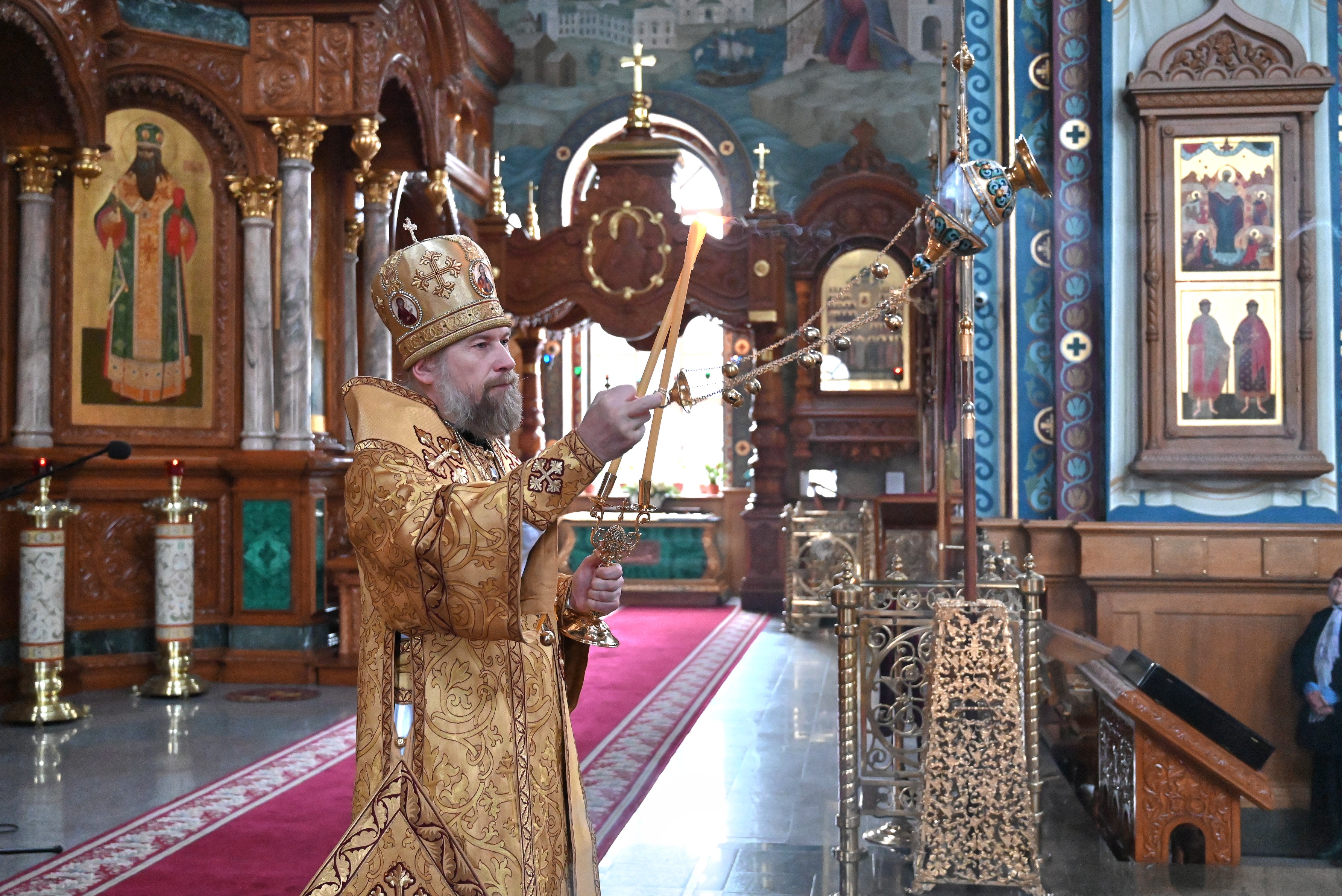 Богослужебные песнопения исполнял мужской хор кафедрального собора под управлением регента Михаила Перфильева.
