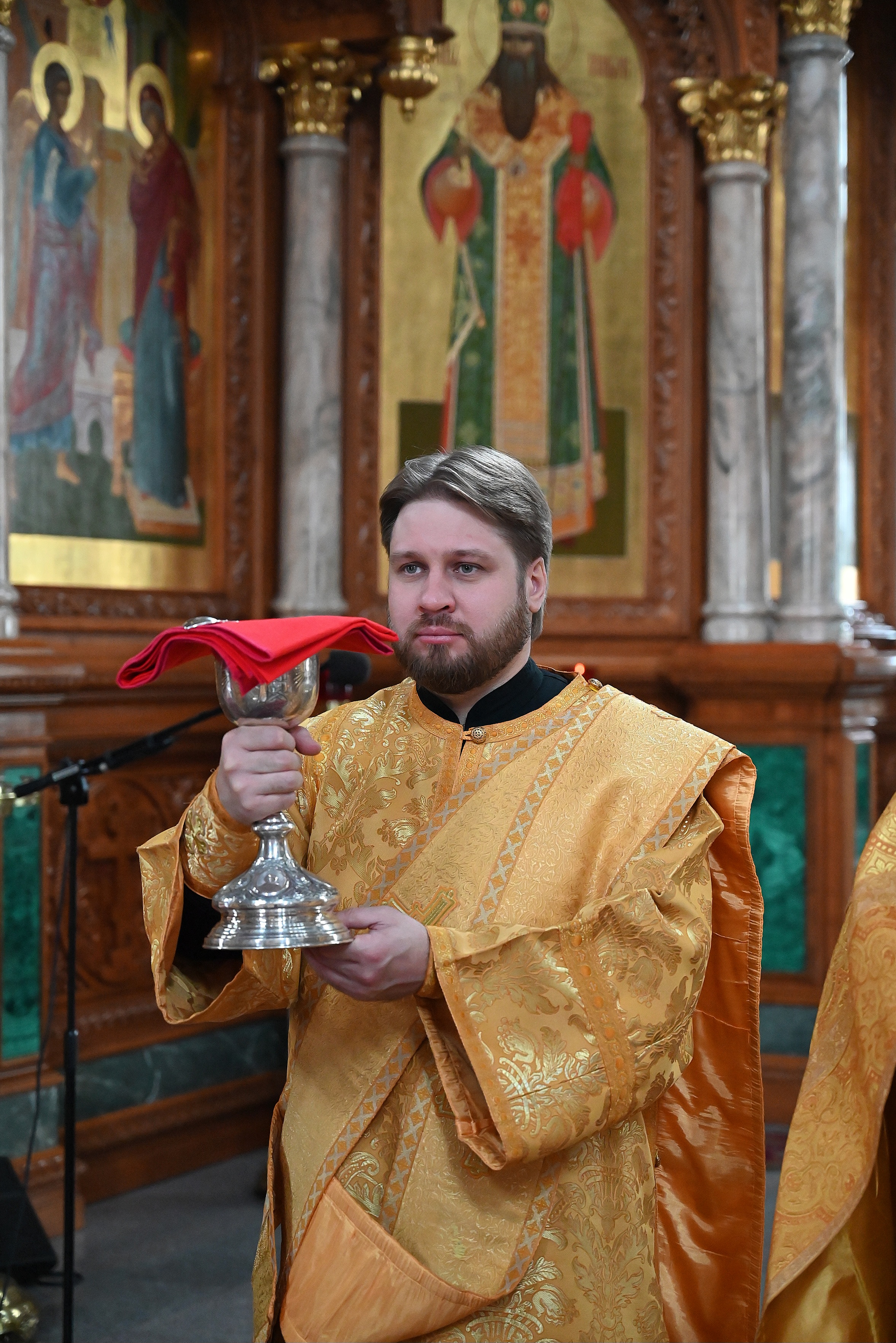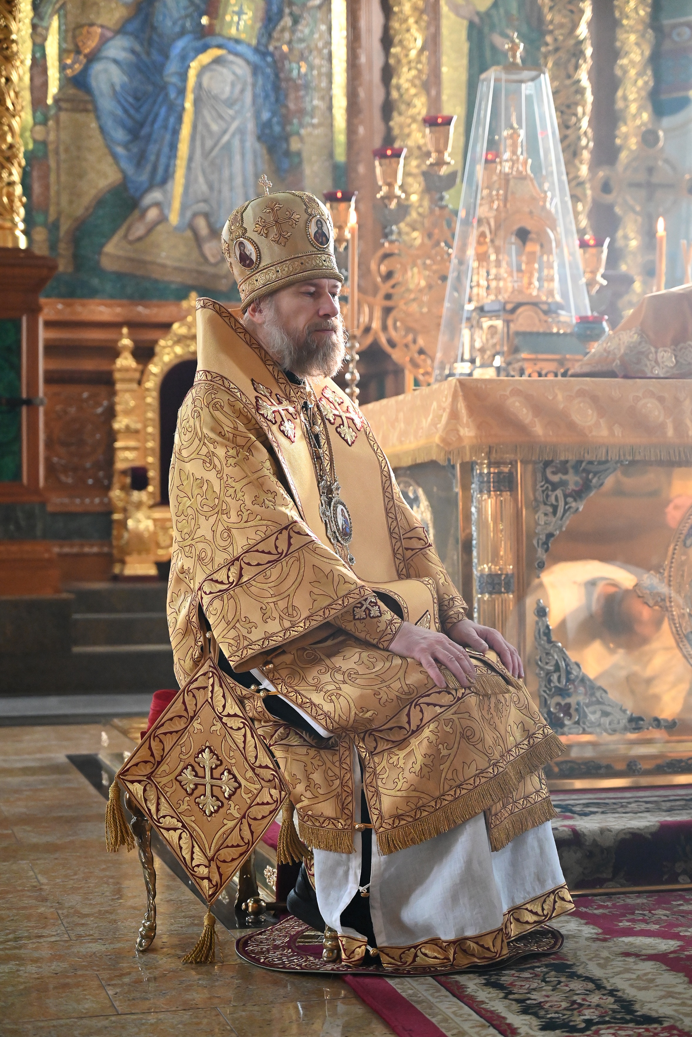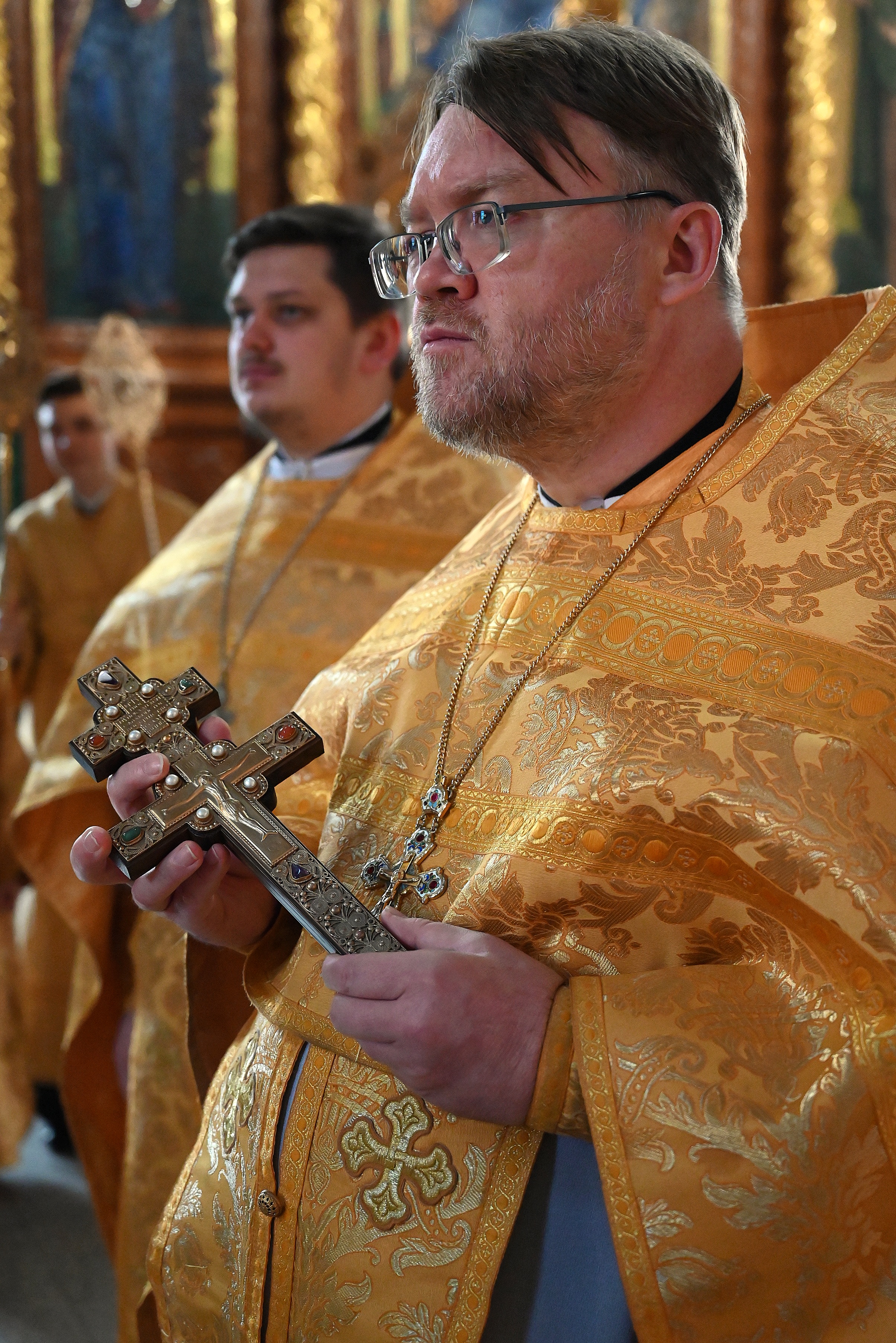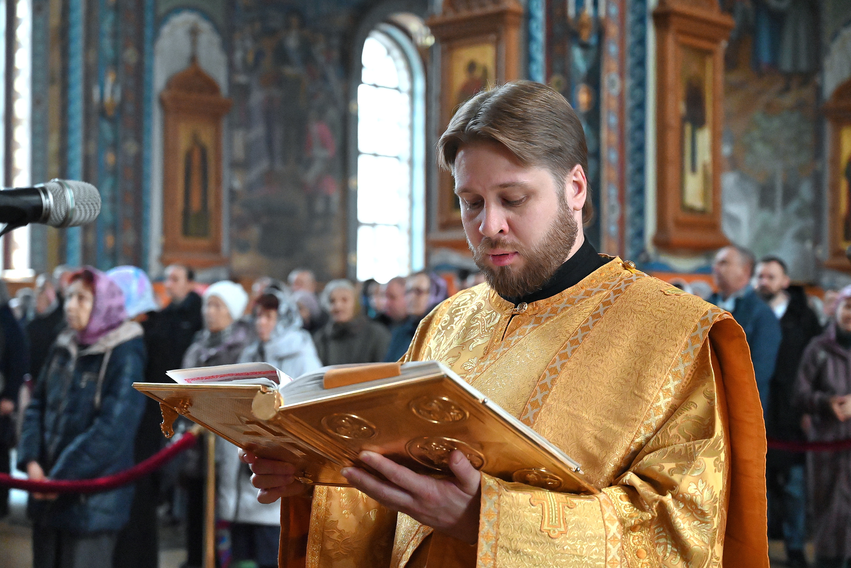 Богослужебные песнопения исполнял мужской хор кафедрального собора под управлением регента Михаила Перфильева.