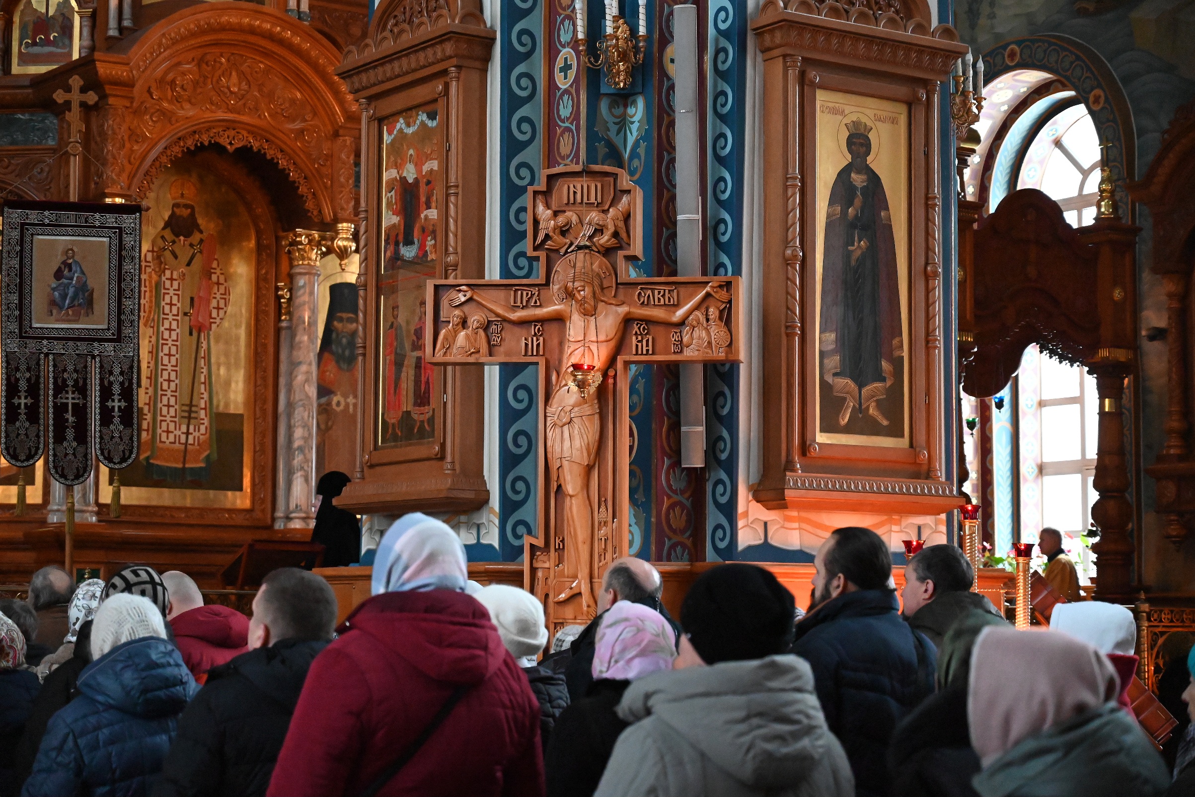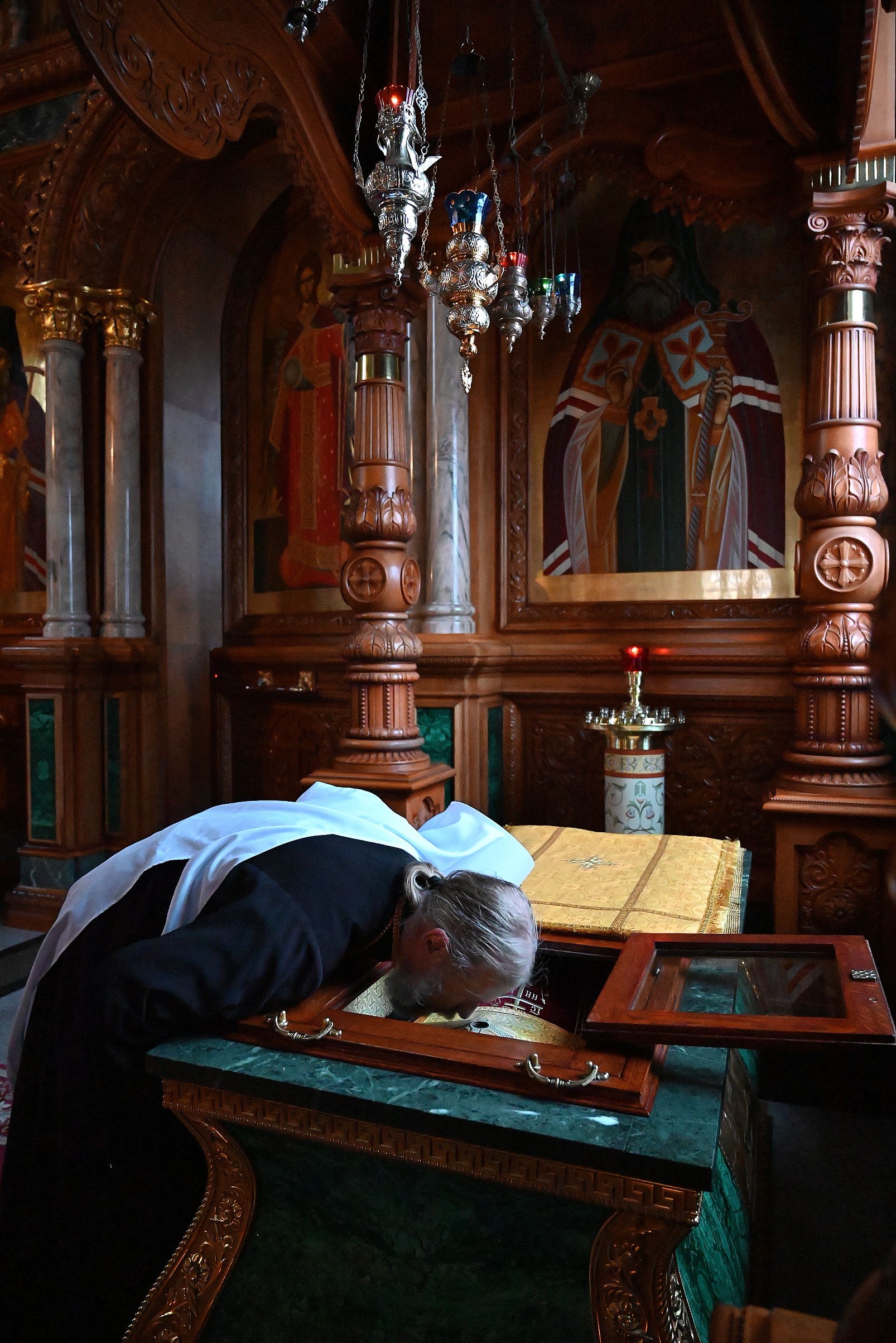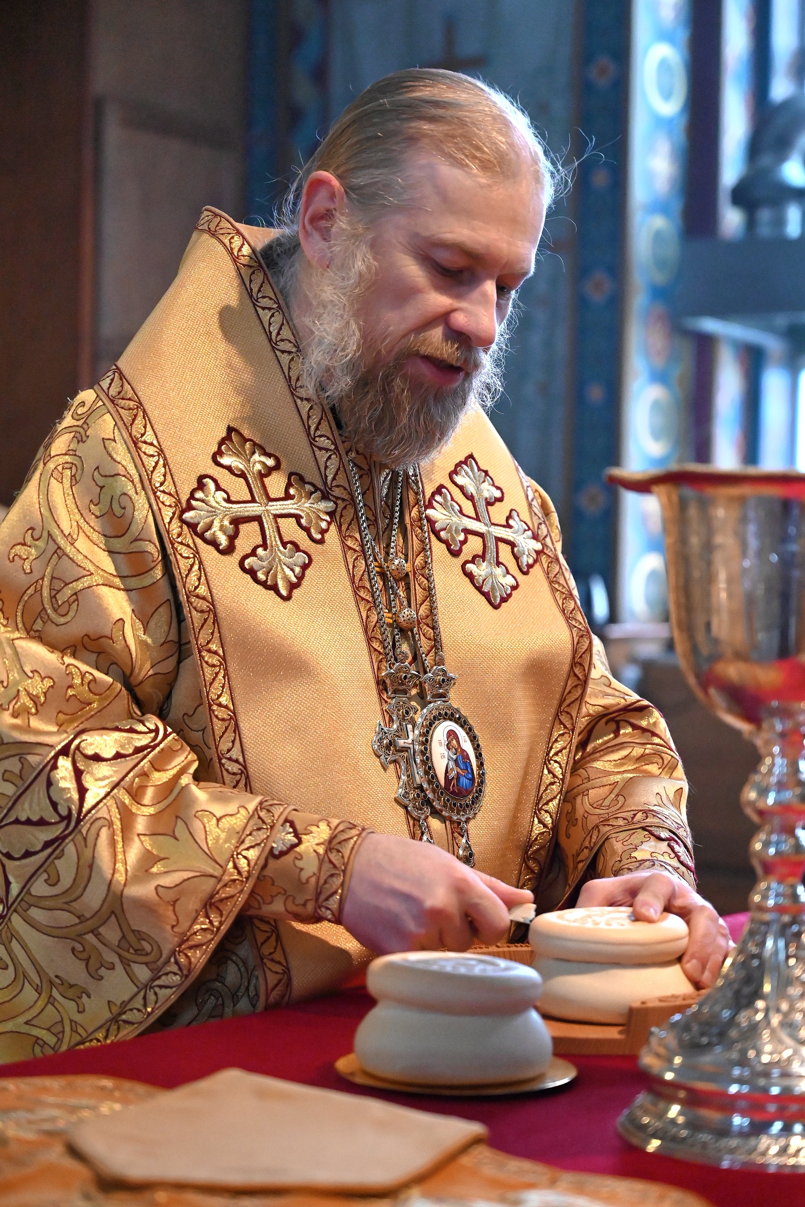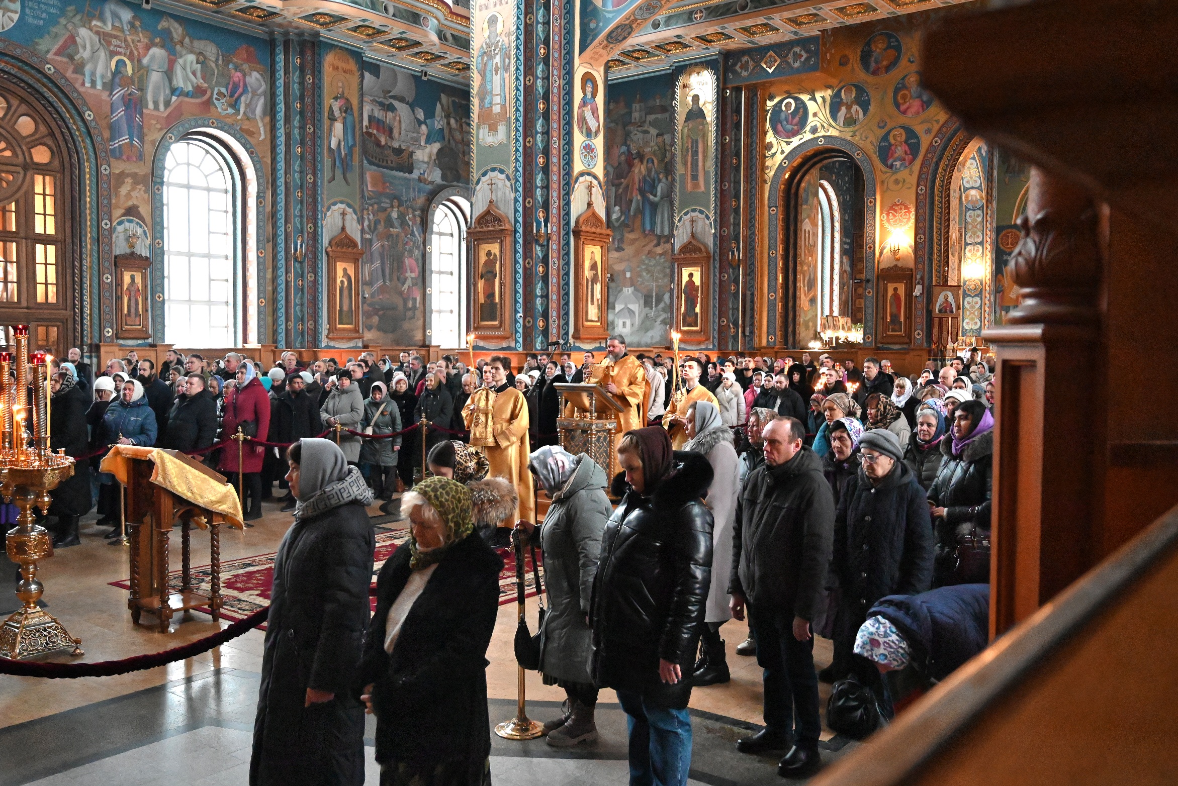 На сугубой ектении были произнесены особые прошения: "...о еже прияти молитвы нас недостойных рабов Твоих в сию годину испытания..." и прошение о "Преосвященных архипастырях, пастырях, монашествующих и мирянах земли Украинския, о единстве Церкви Христовы ревнующих, в заточении и гонениях сущих". Затем митрополит Леонтий вознес молитву о Святой Руси. По благословению Святейшего Патриарха Московского и всея Руси Кирилла эта молитва читается во всех храмах Русской Православной Церкви.