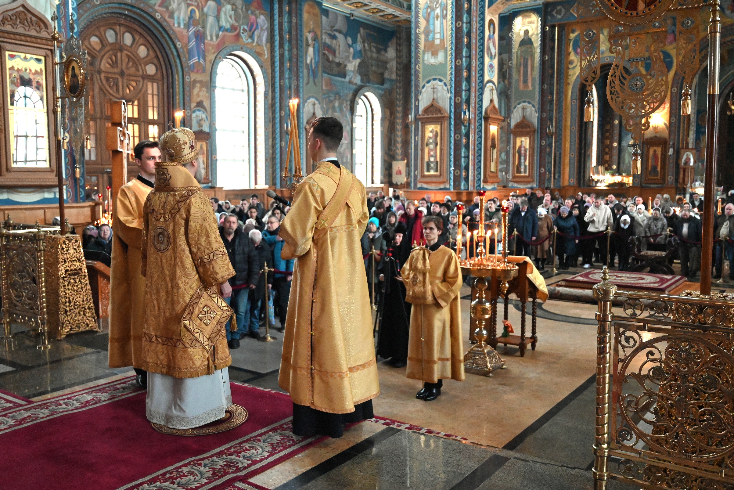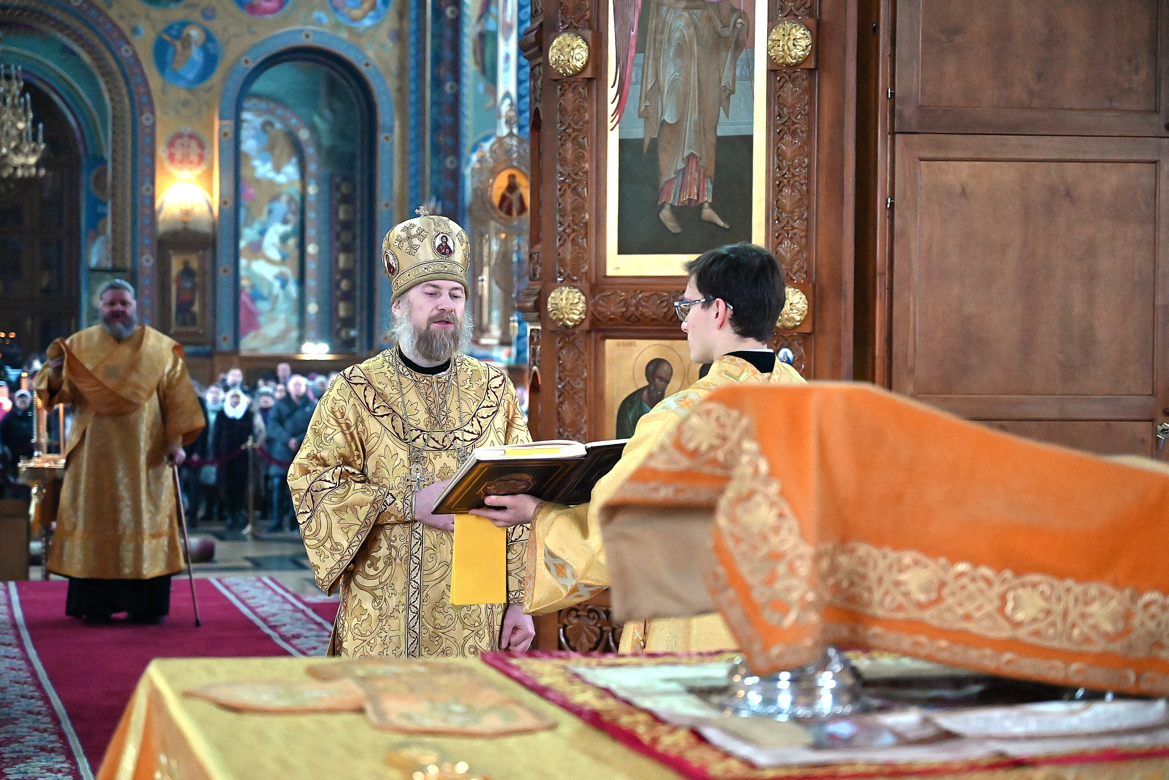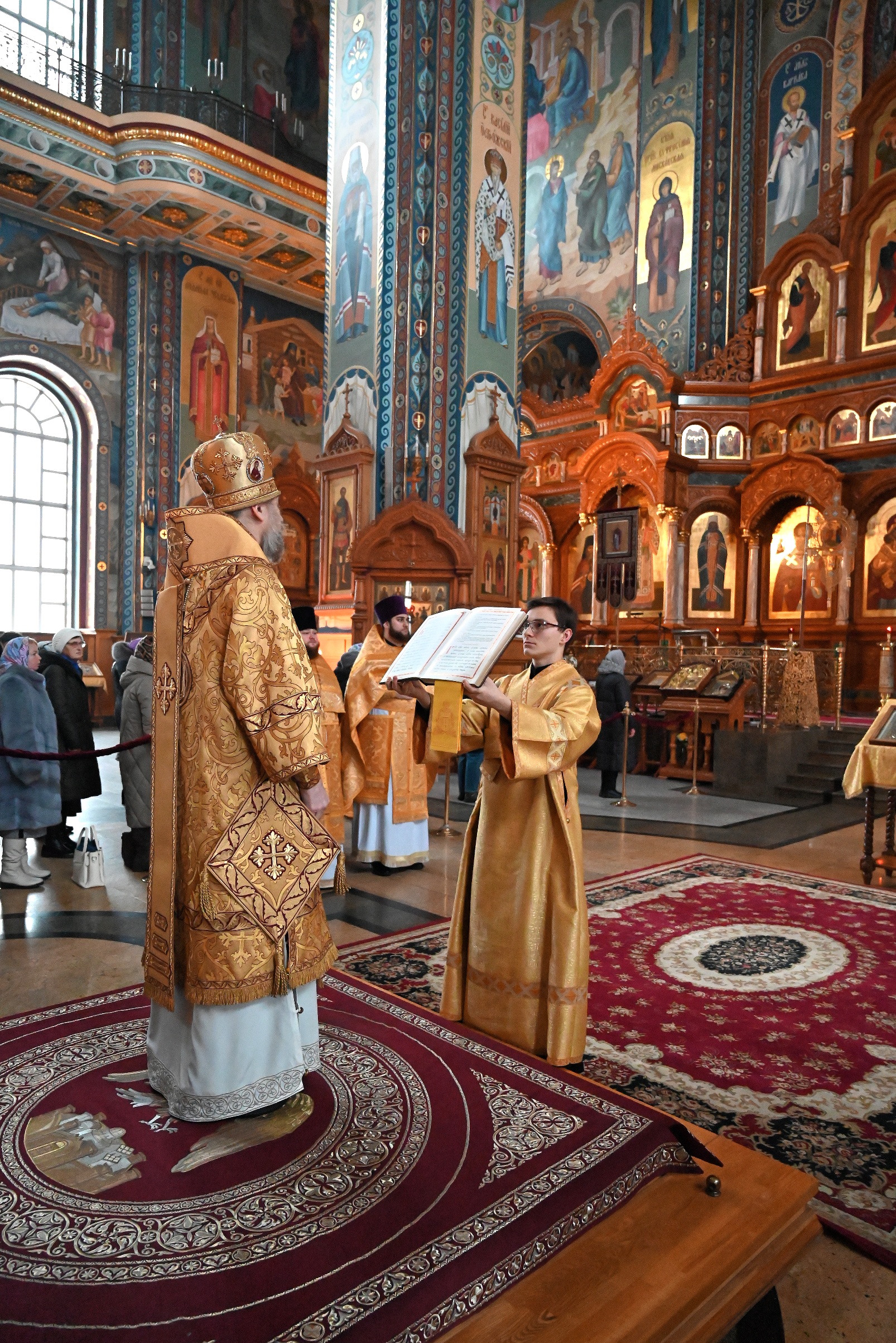 Богослужебные песнопения исполнял смешаный хор кафедрального собора под управлением регента Ильи Ижогина.