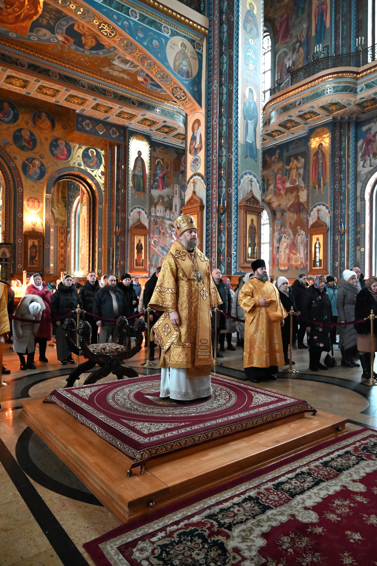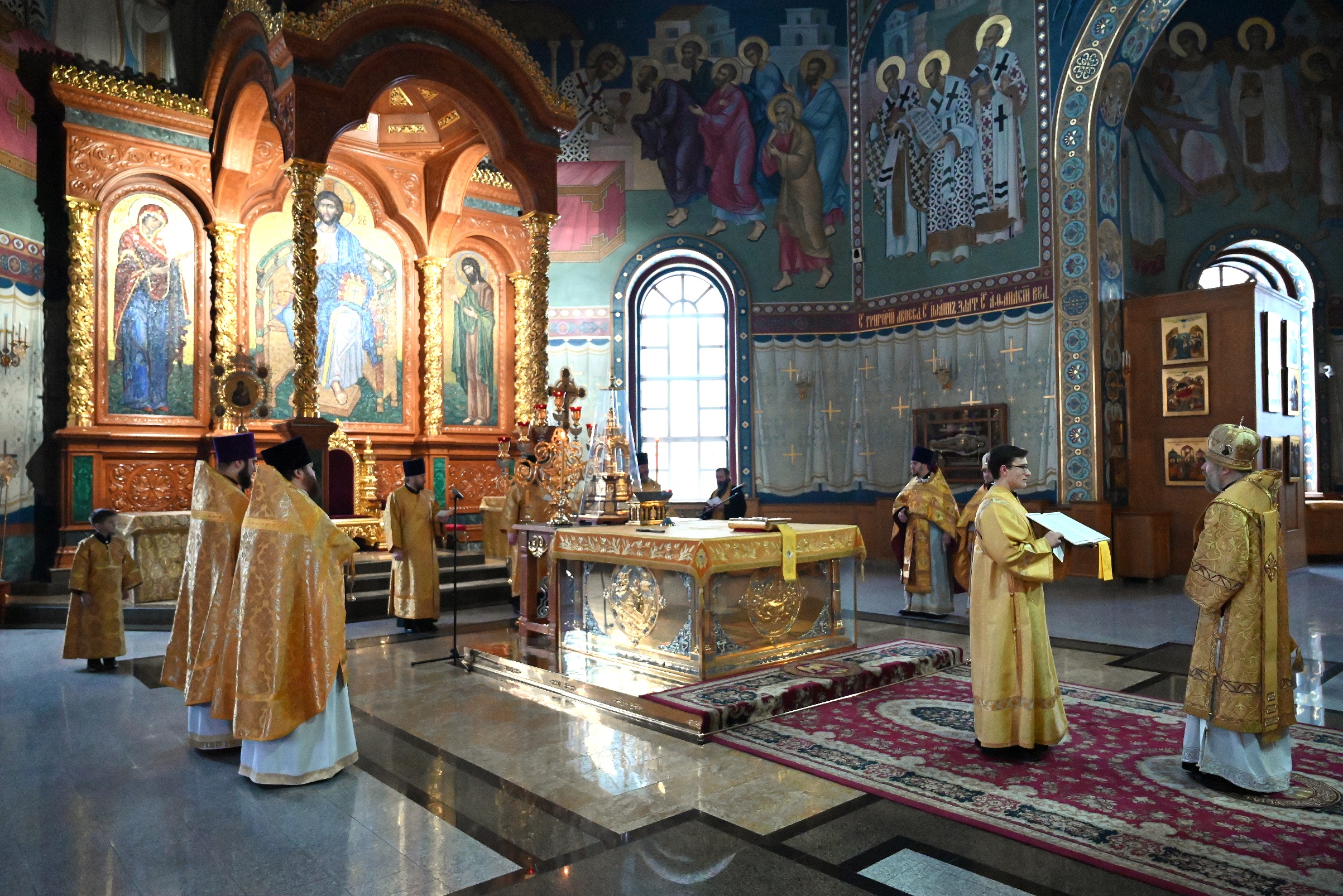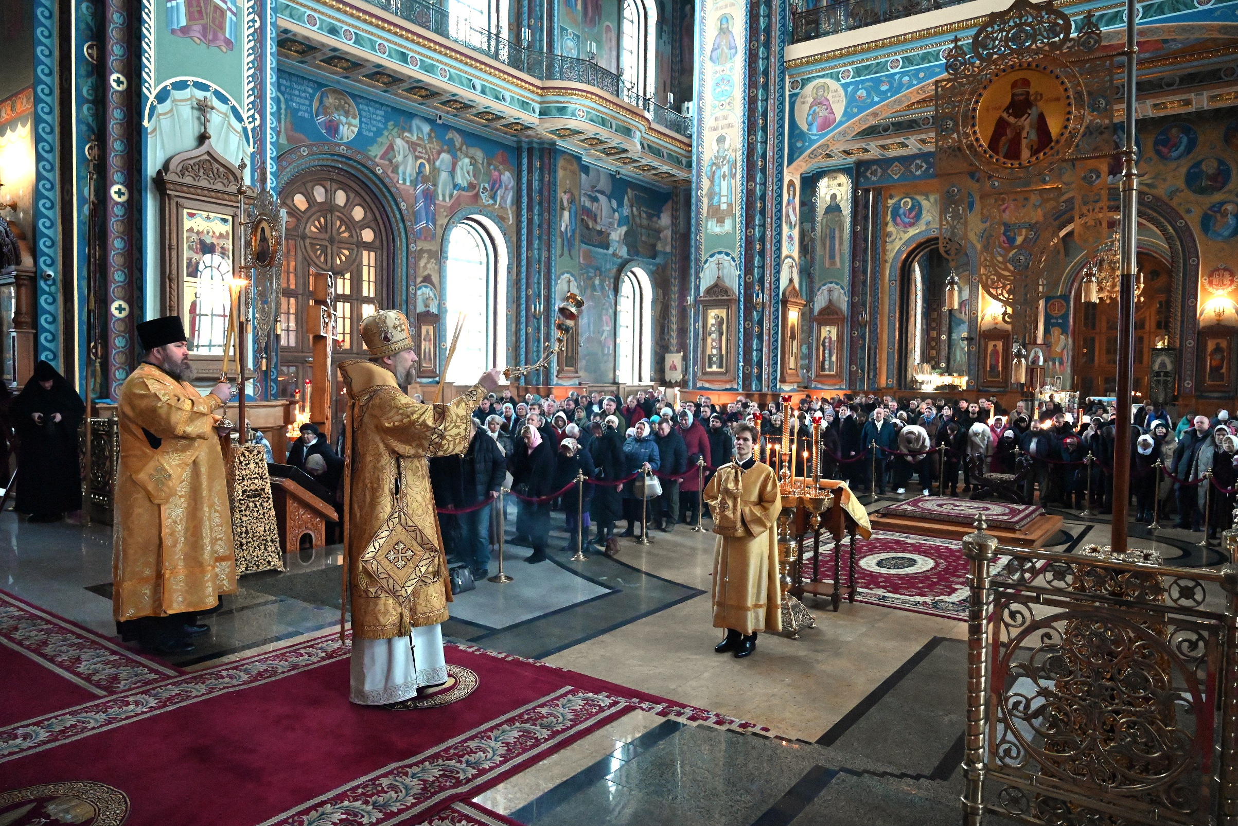 Богослужебные песнопения исполнял смешаный хор кафедрального собора под управлением регента Ильи Ижогина.