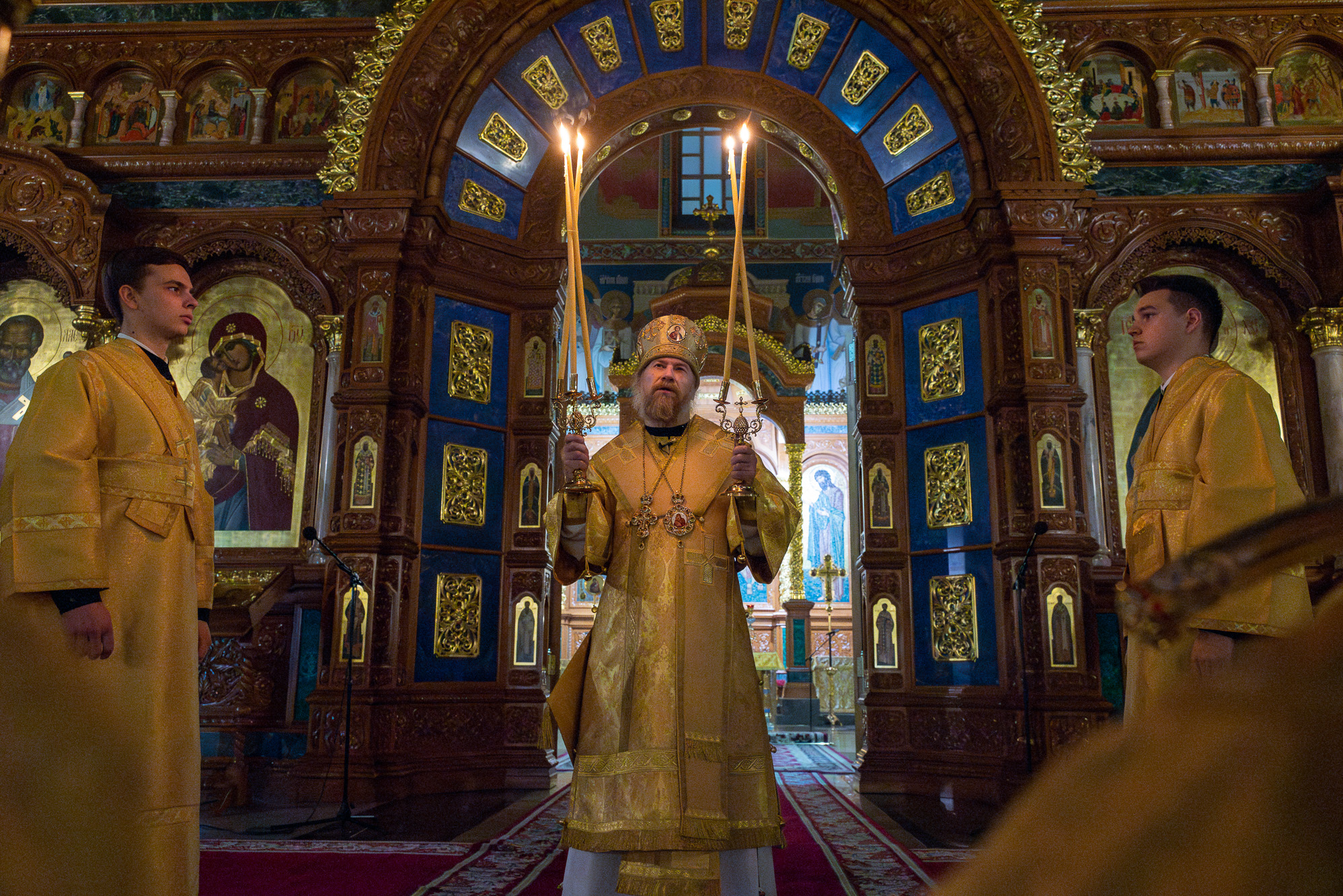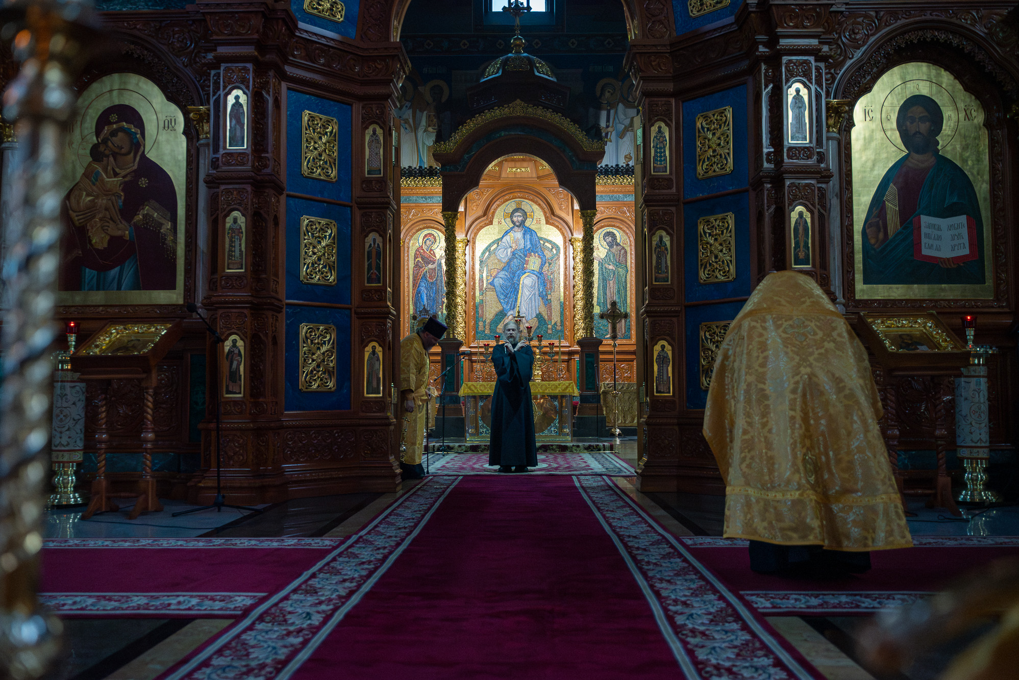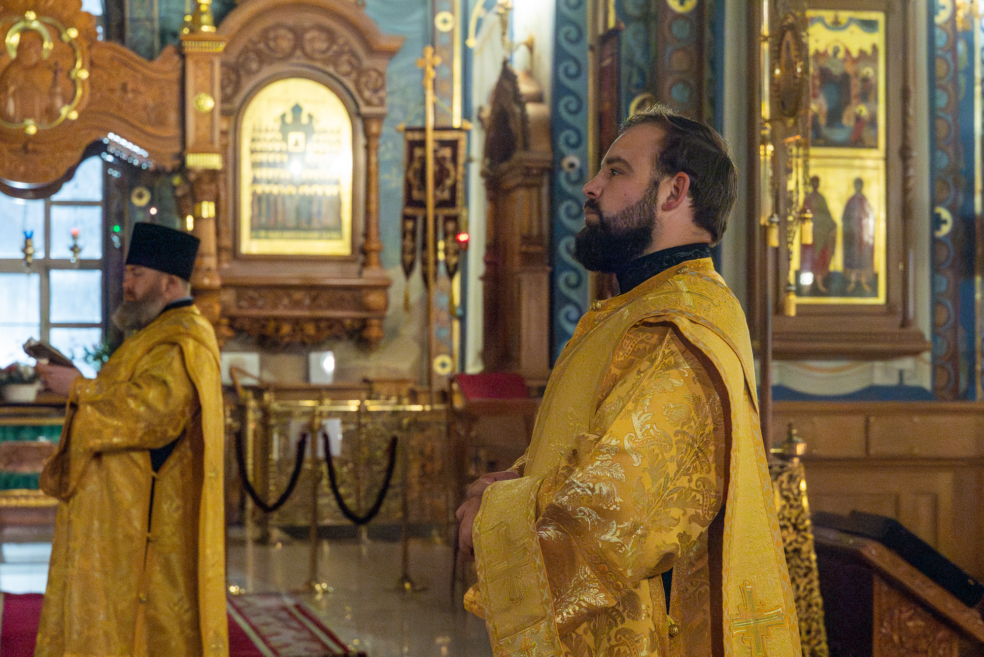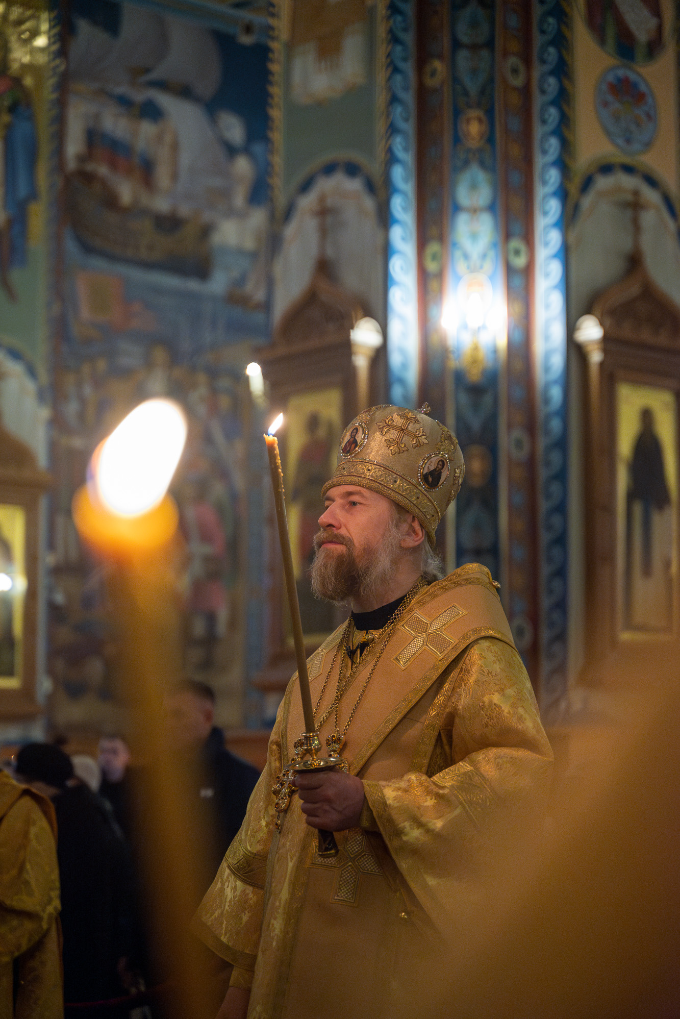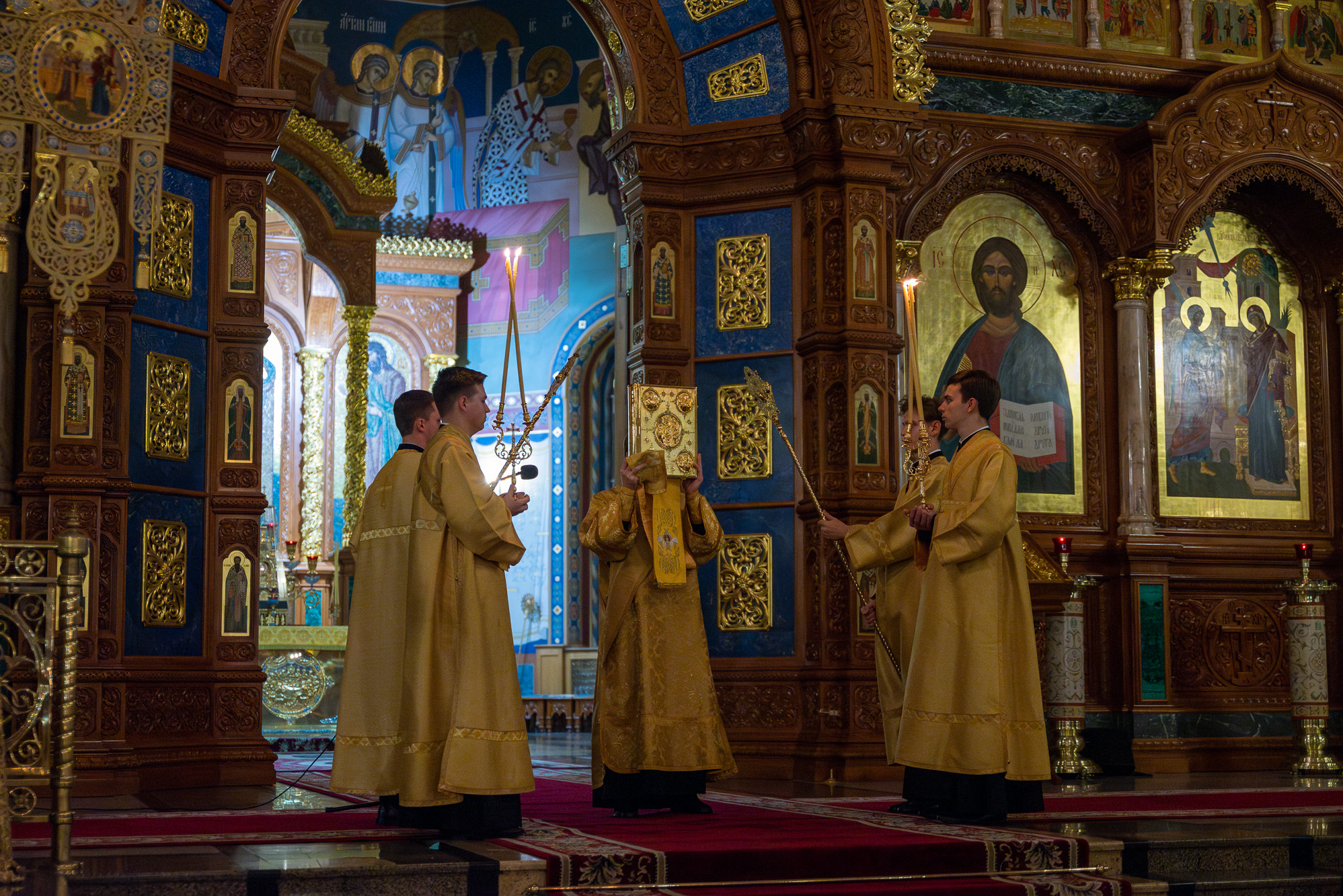 Богослужебные песнопения исполнял смешанный хор кафедрального собора под управлением регента Ильи Ижогина.
