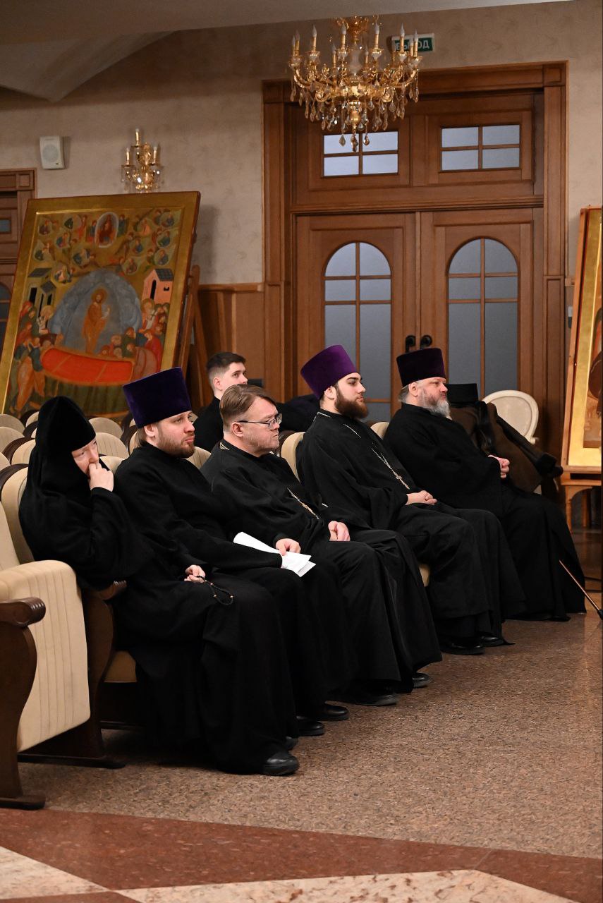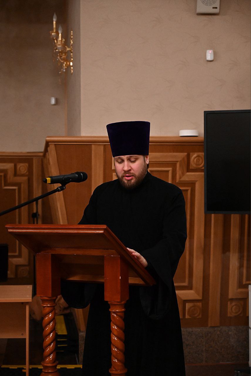 Клирик собора диакон Алексий Неделин выступил с докладом о жизни и деятельности подотчетных ему отделов. Он рассказал о работе воскресной школы, молодежной группы, экскурсионной службы, библиотеки и других приходских структур.