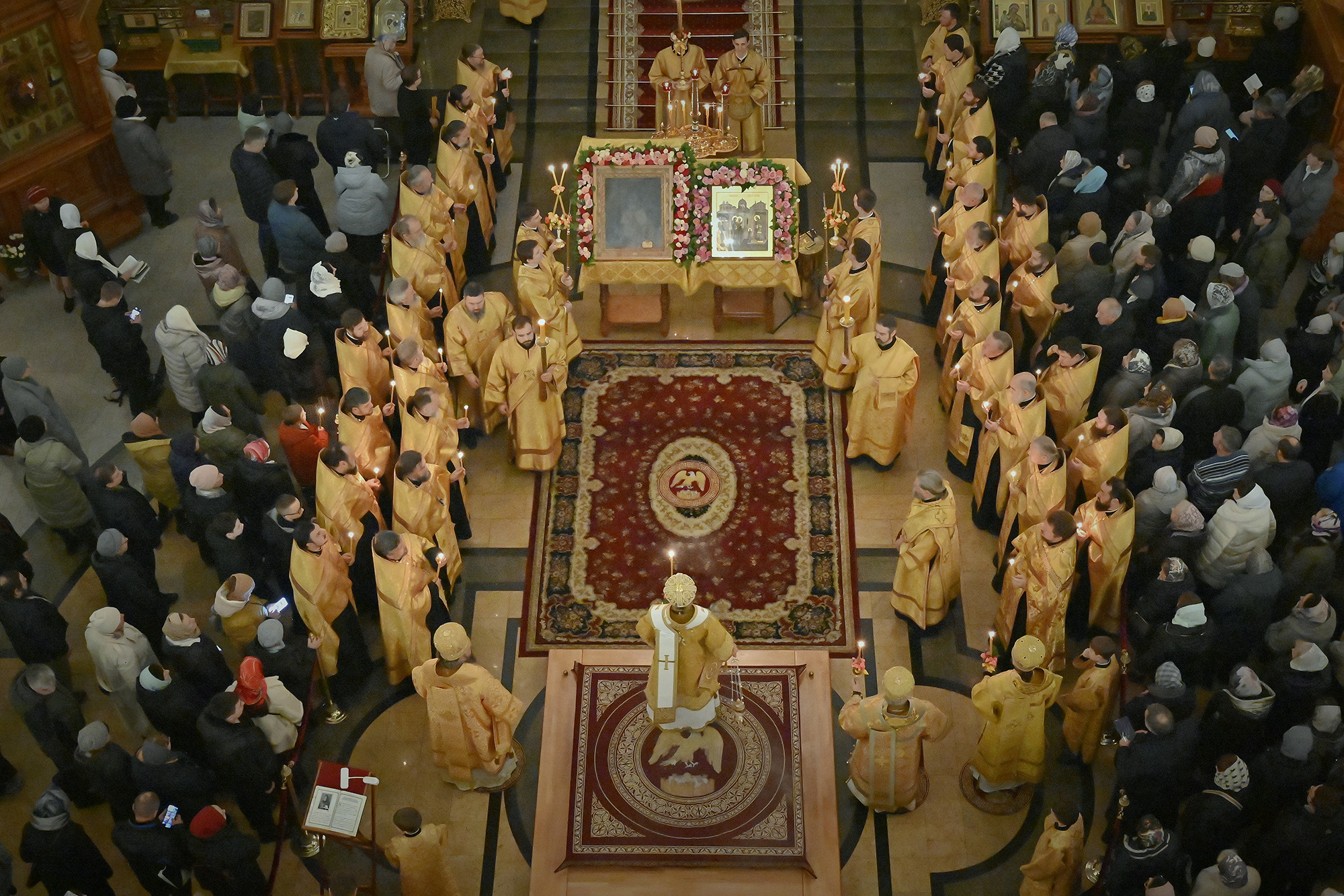 Митрополит Воронежский и Лискинский Леонтий возглавил служение всенощного бдения с акафистом у мощей святителя Митрофана, первого епископа Воронежского