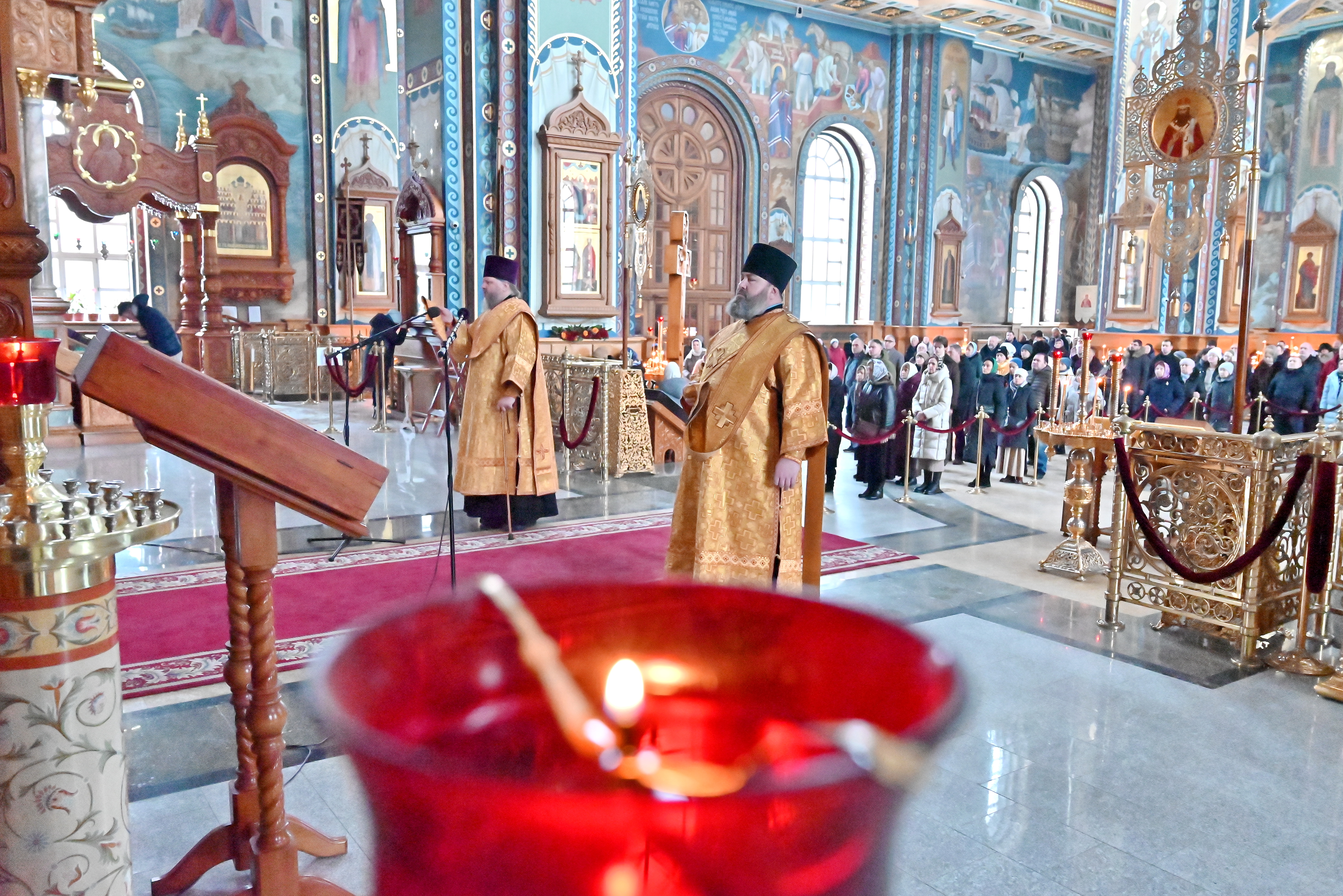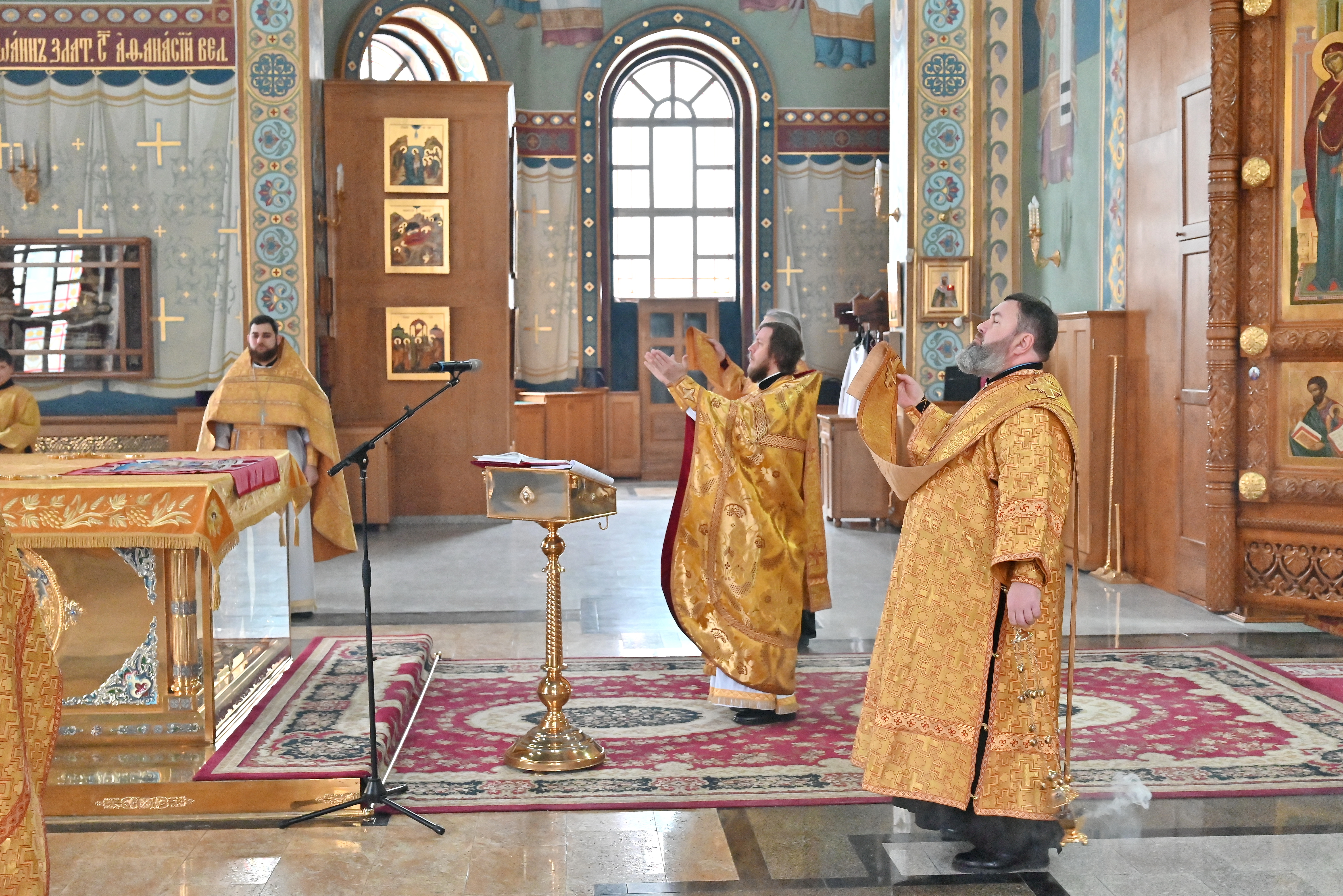 Иеродиаконом Геннадием ( Толстенко) и протодиаконом Николаем Терпуговым были прочитаны Апостольское и Евангельское чтения.