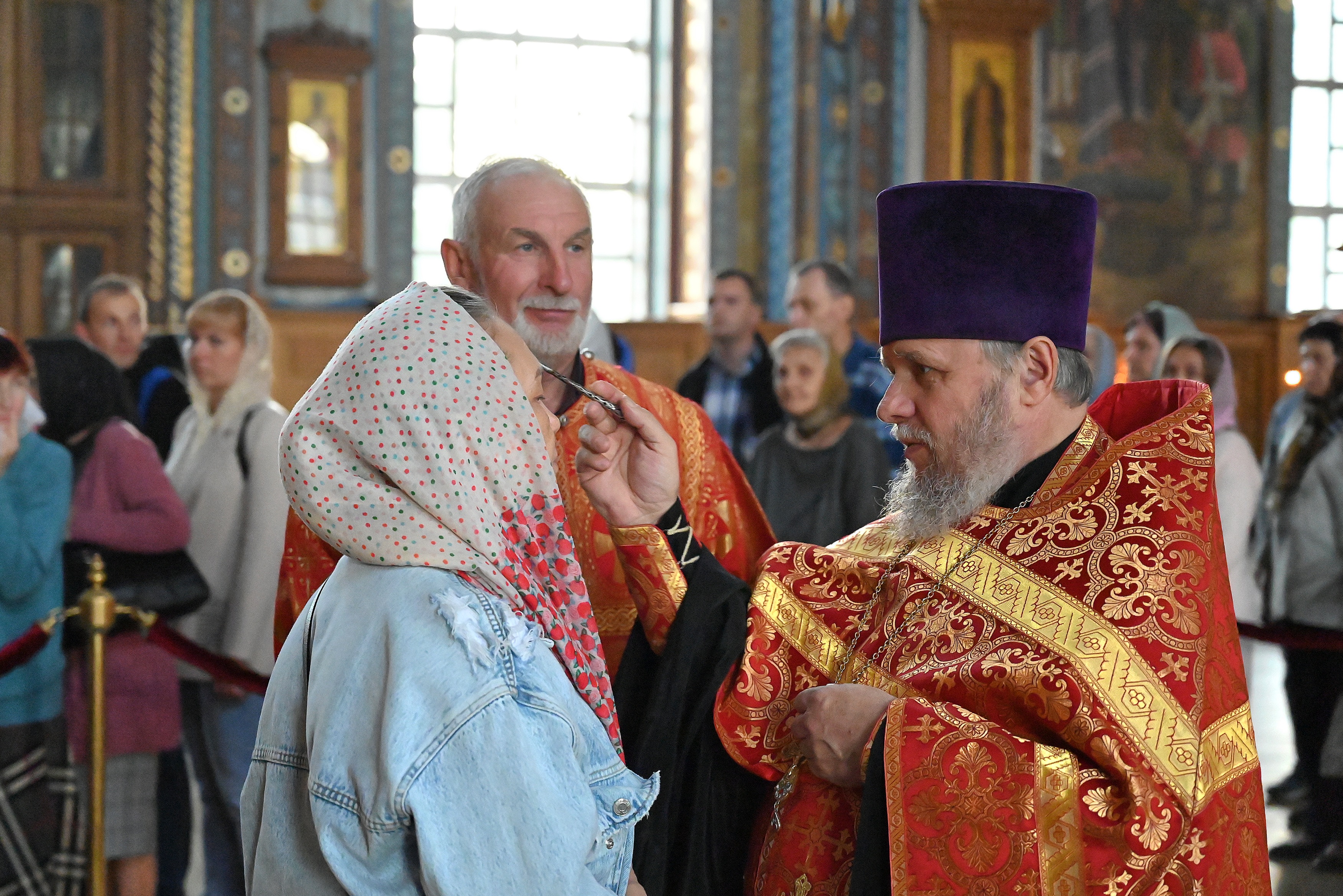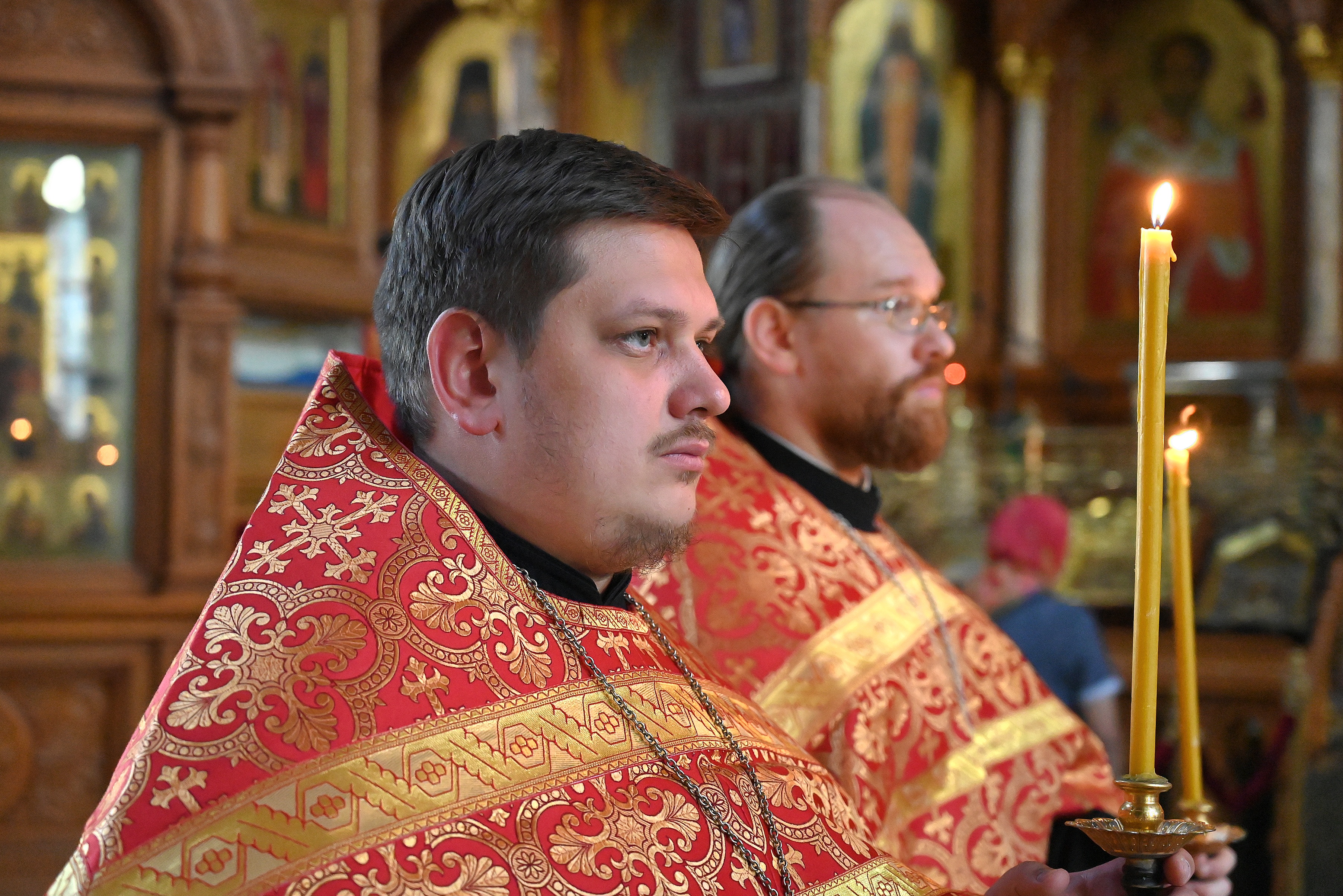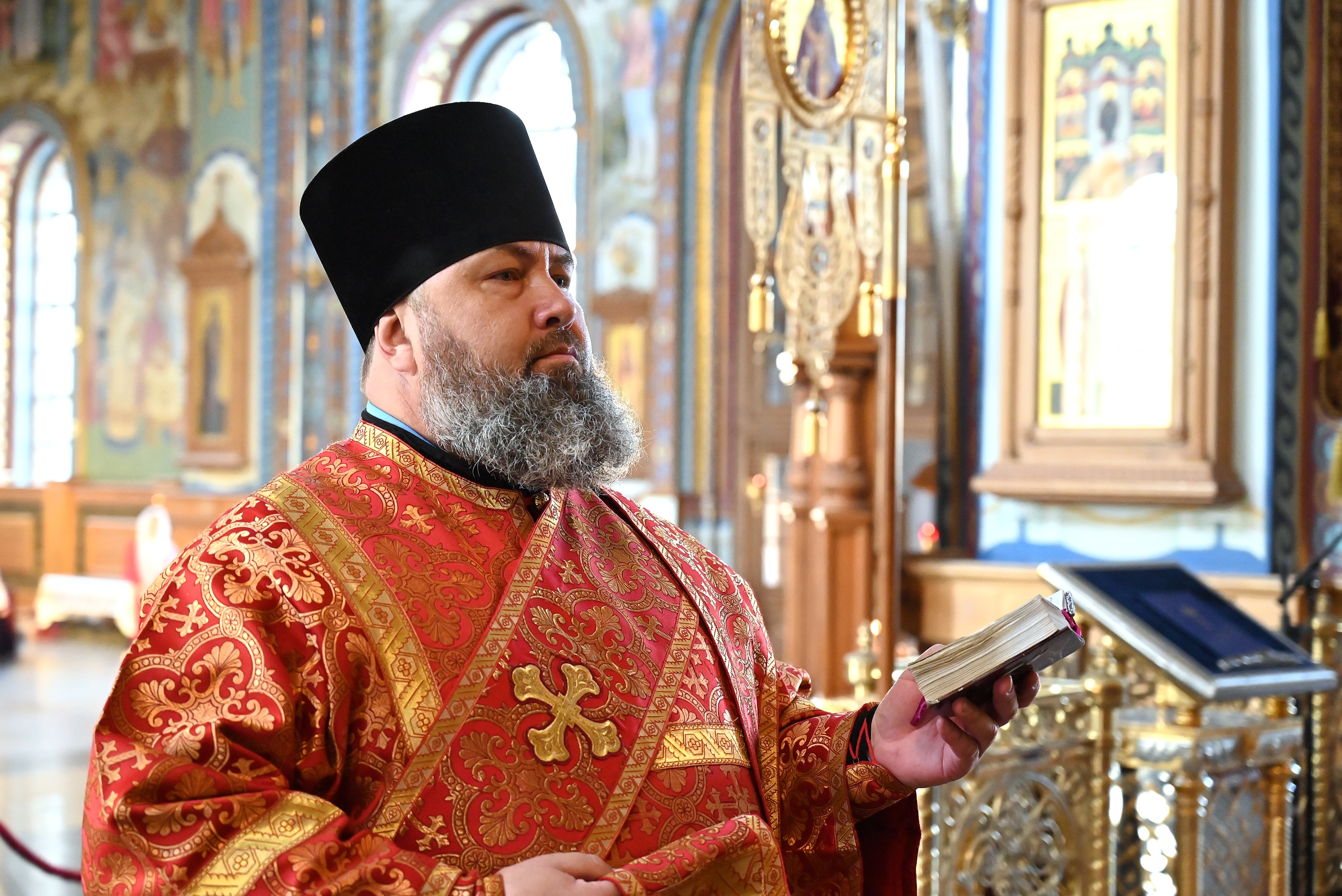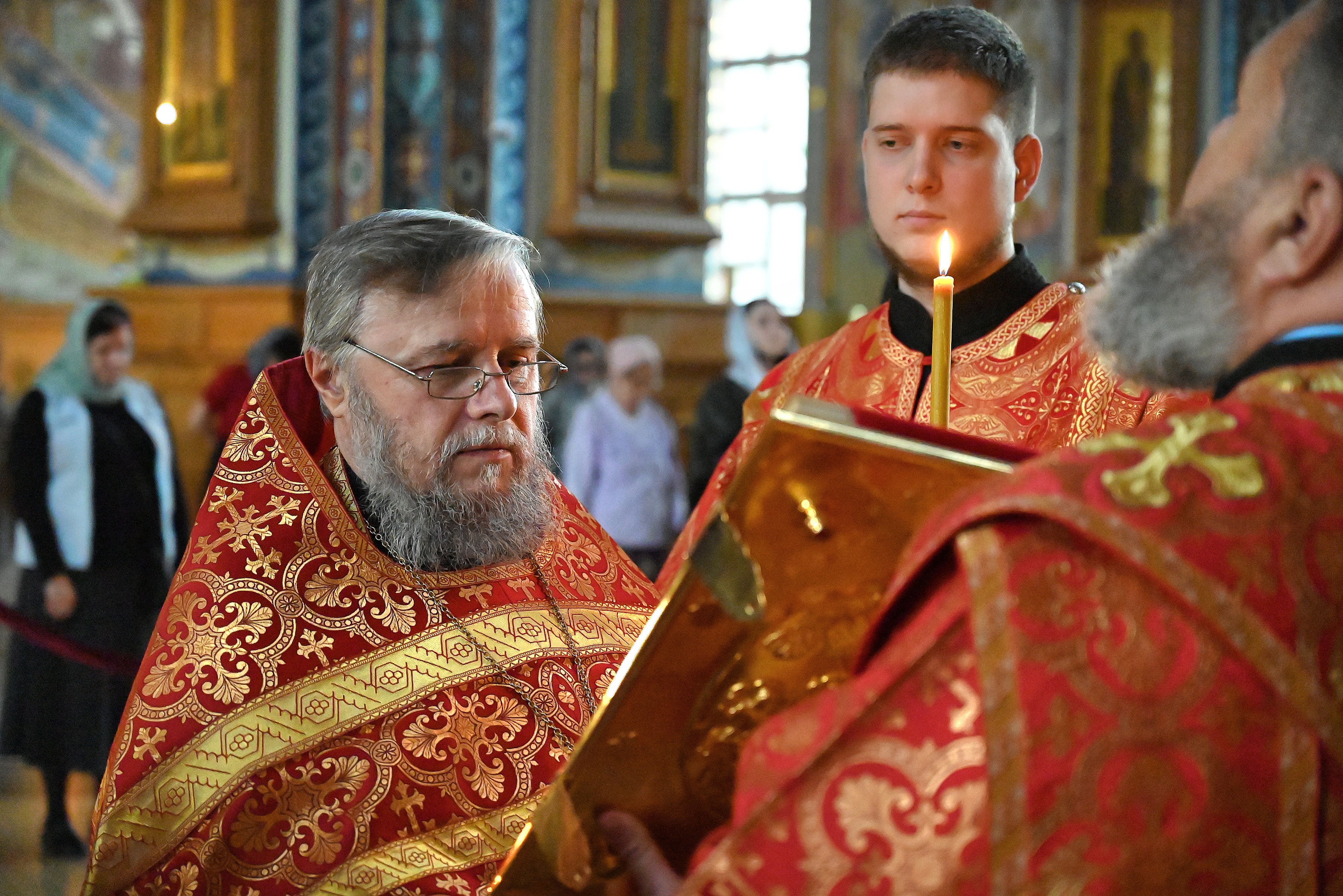 После полного каждения храма отец Алексий возгласил праздничное Евангельское зачало от Матфея.