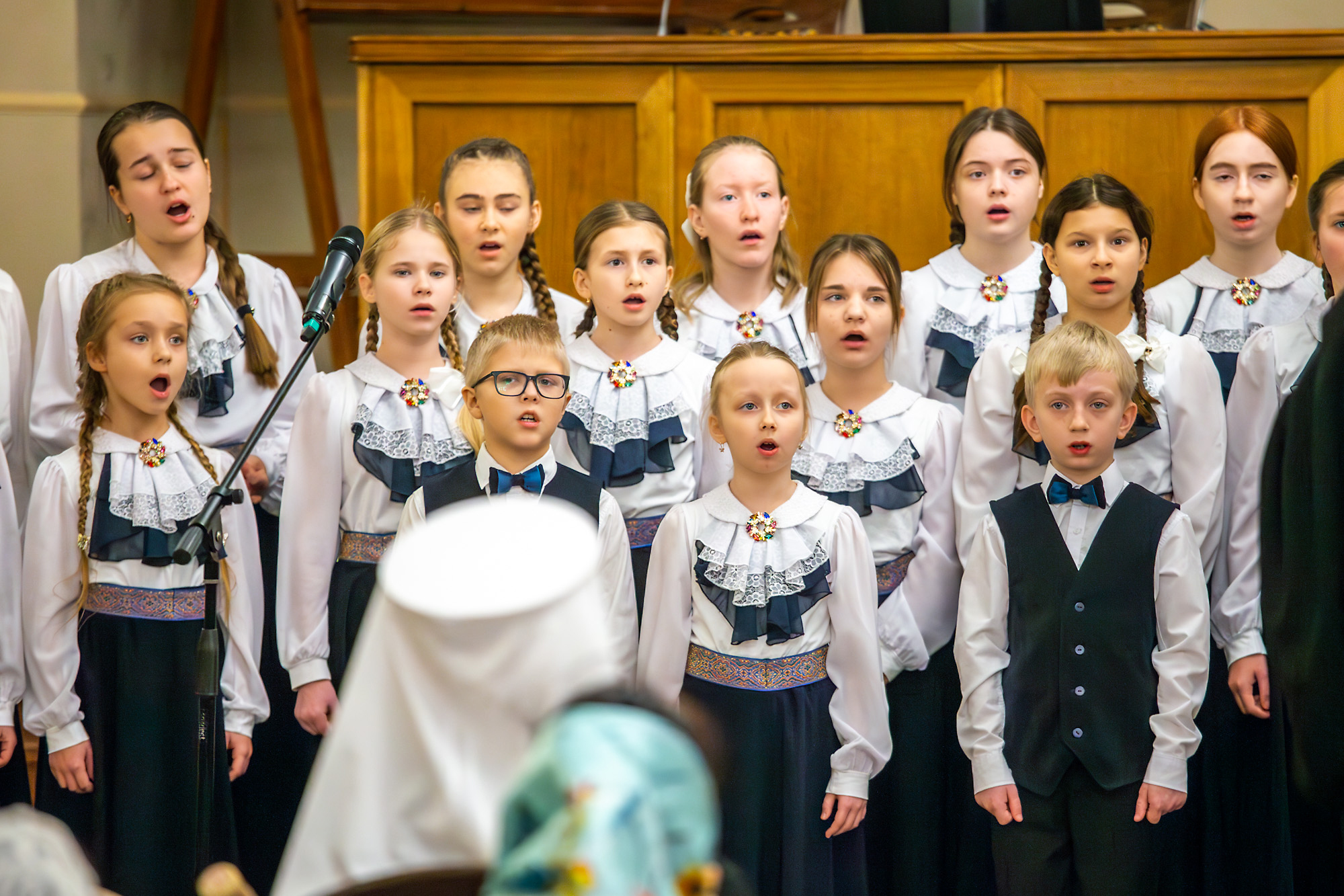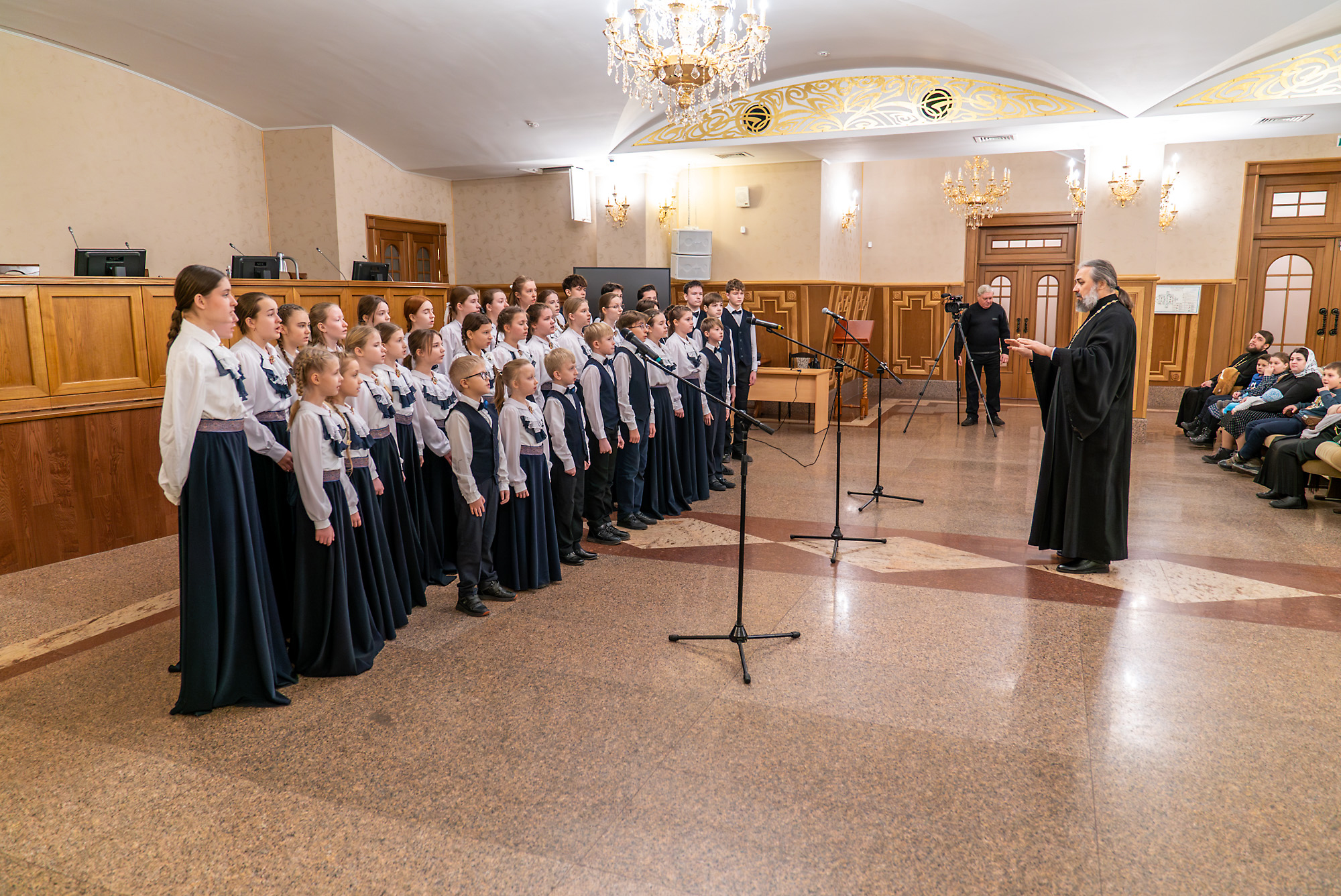 После общего пения молитвы "Царю Небесный" и святительского благословения митрополита Леонтия певческим искусством собравшихся порадовали хоровой коллектив Пантелеимоновского храма под управлением регента матушки Ксении Кривотуловой и детско-юношеский хор храма святой блаженной Ксении Петербургской под управлением иерея Андрея Саврицкого.