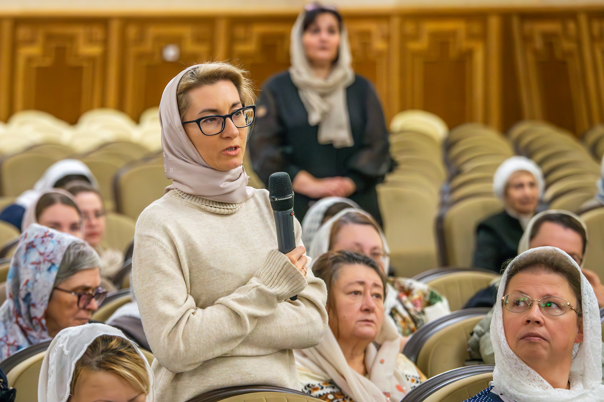 По завершении выступлений состоялась беседа митрополита Леонтия с супругами священнослужителей, в ходе которой присутствующие в зале смогли задать интересовавшие их вопросы. В продолжение разговора были затронуты самые разнообразные темы, касавшиеся духовной жизни, современных проблем христианской семьи и различных сторон общественной, епархиальной и приходской жизни. Владыка мудро и обстоятельно ответил на поступившие вопросы. Разговор получился очень содержательным, откровенным и доверительным.