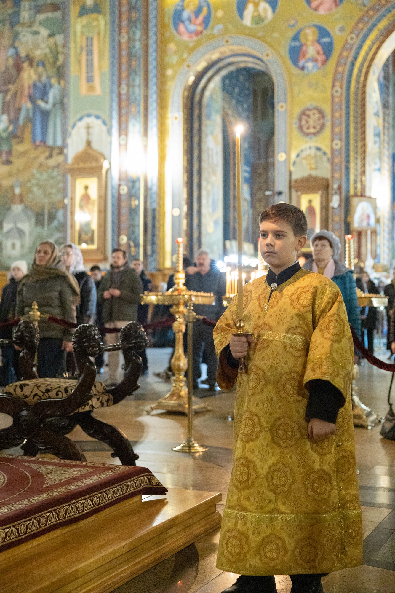 Богослужебные песнопения исполнял митрополичий мужской хор под управлением регента Михаила Перфильева.