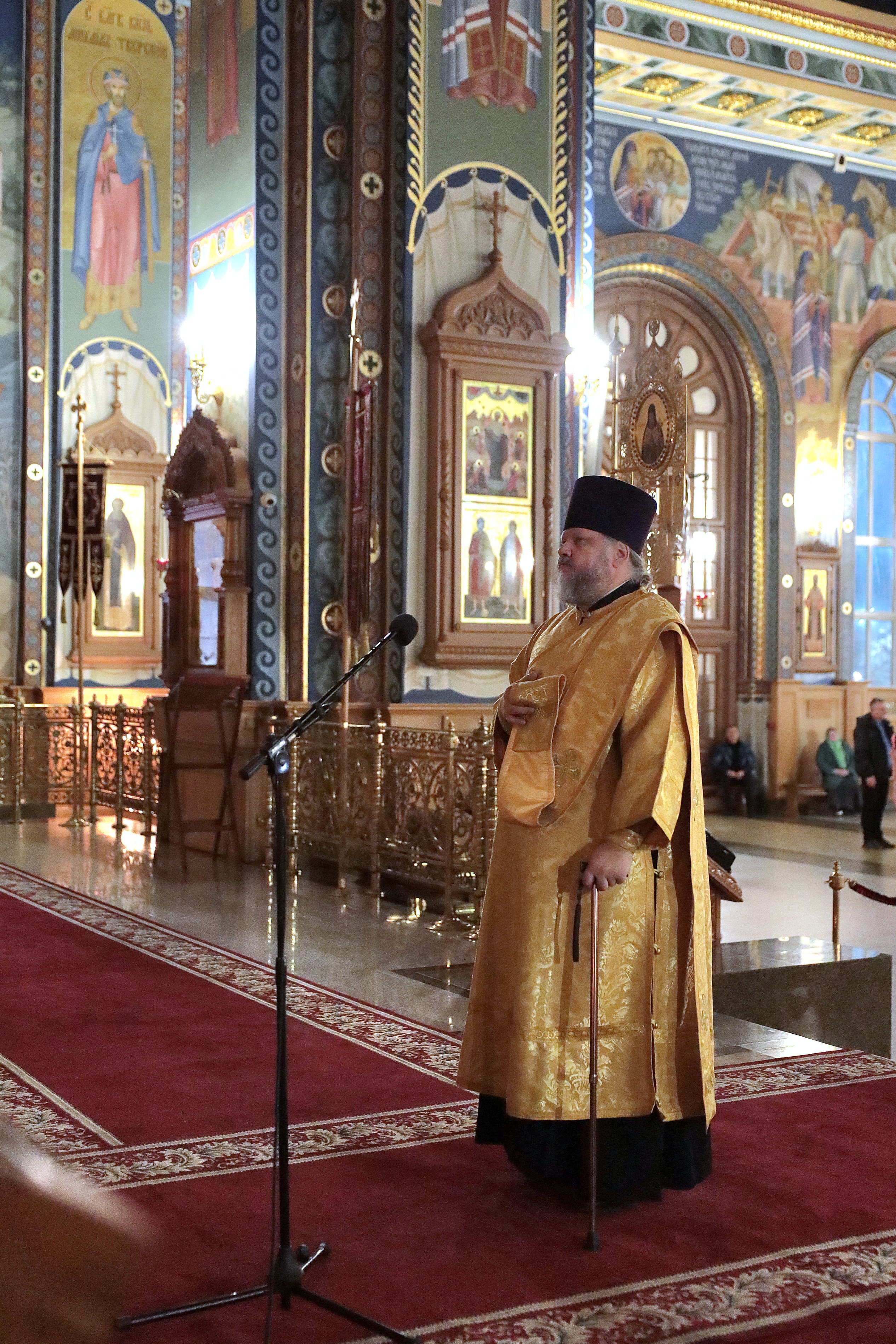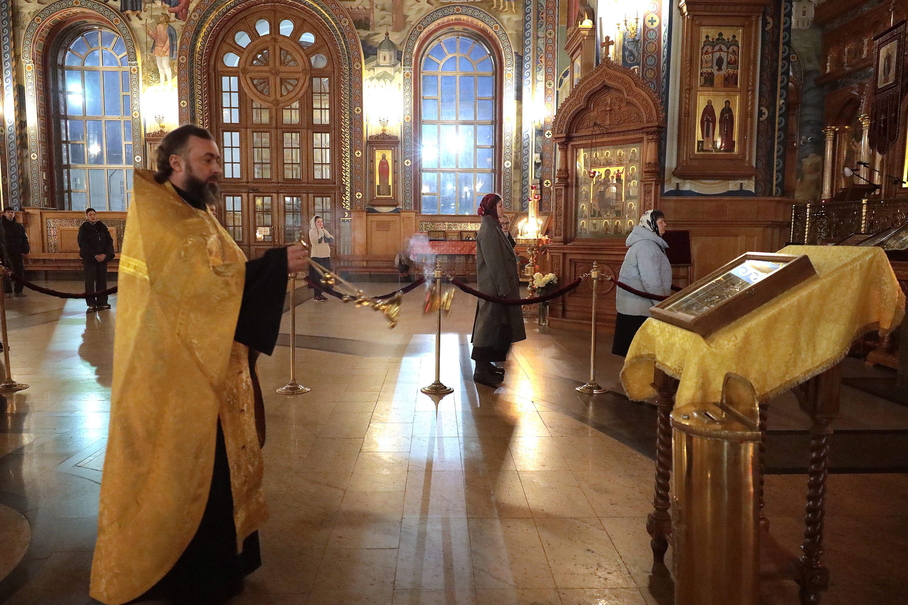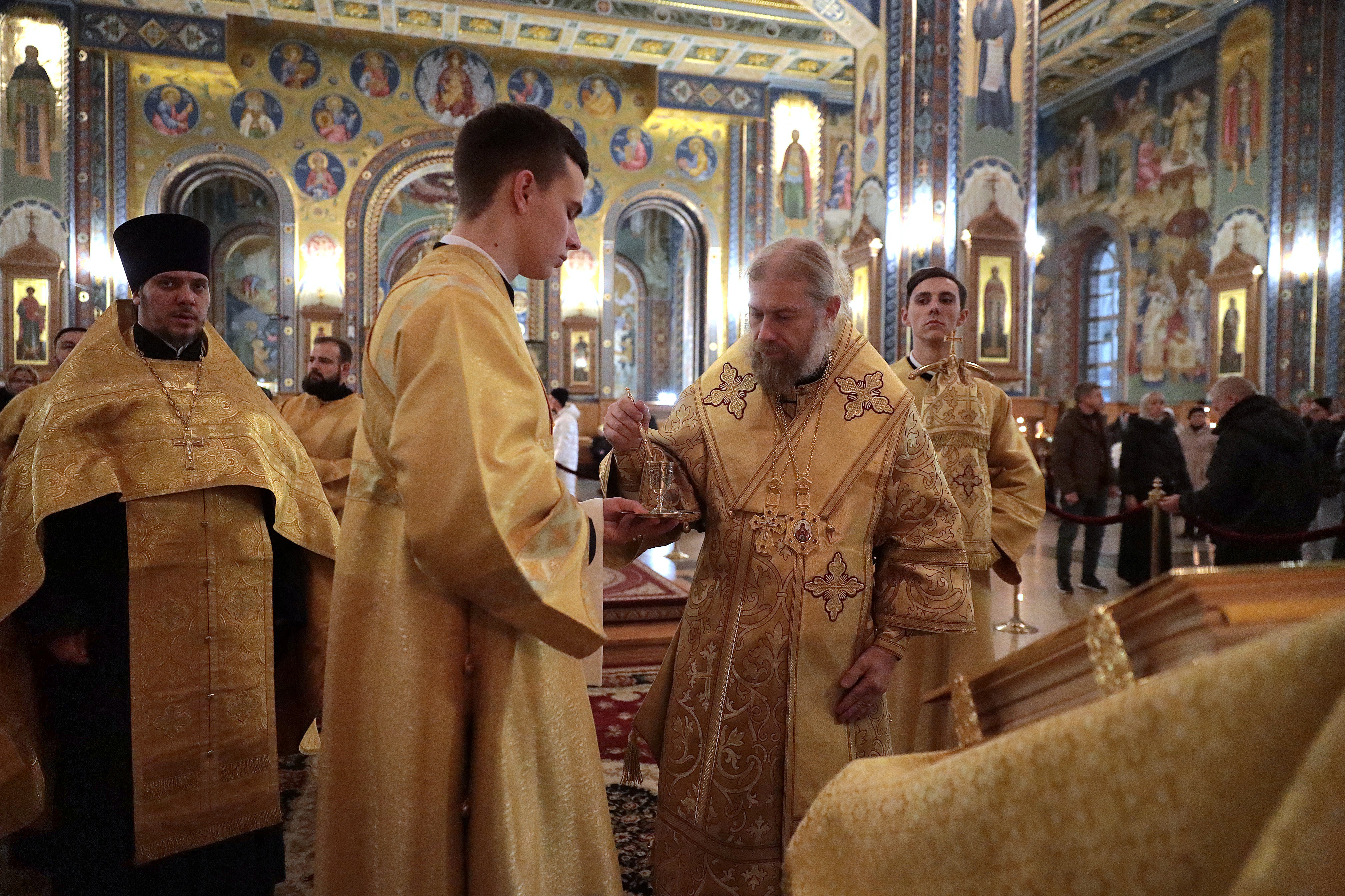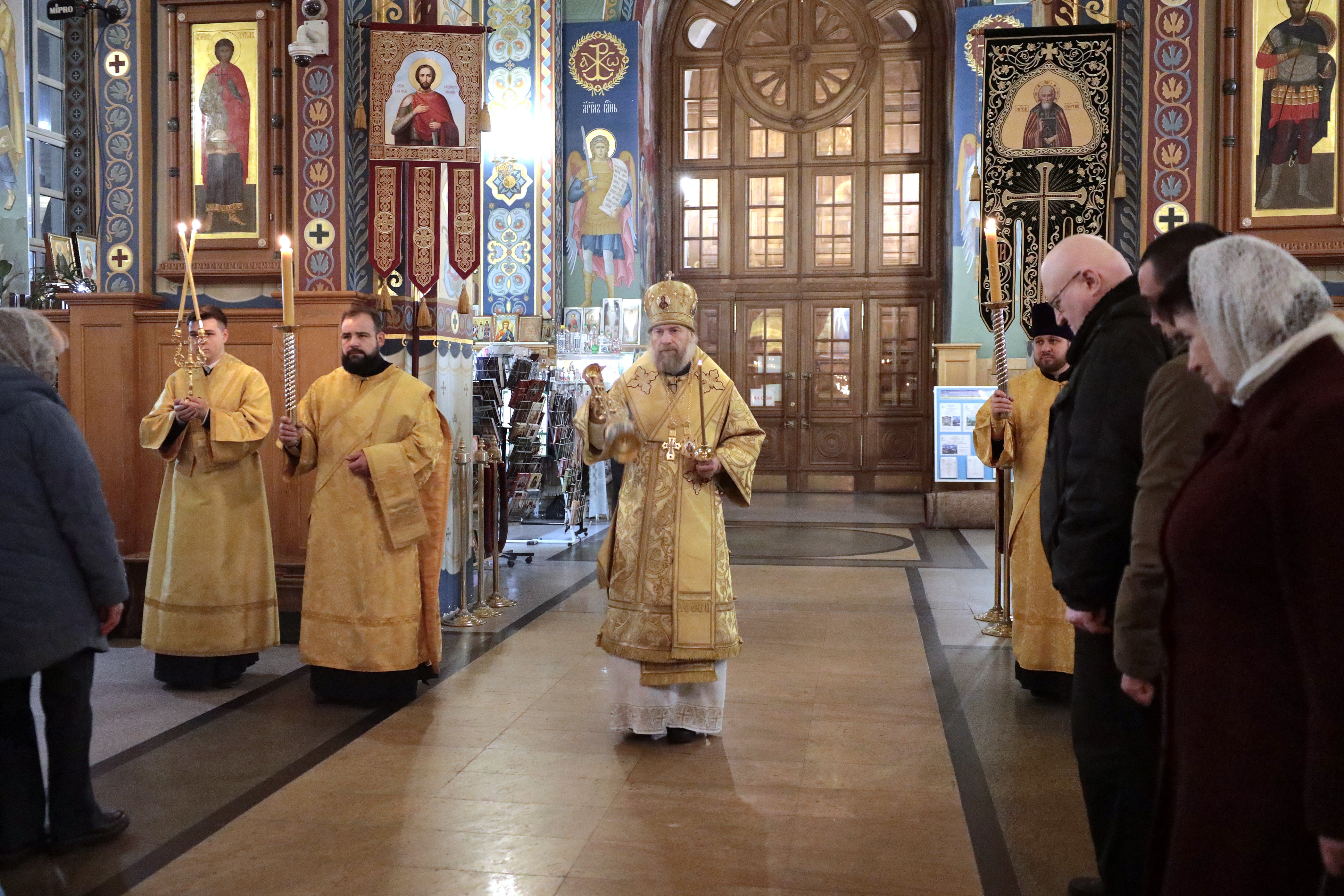 Во время чтения канонов на утрени владыка Леонтий помазал духовенство и богомольцев освященным елеем.