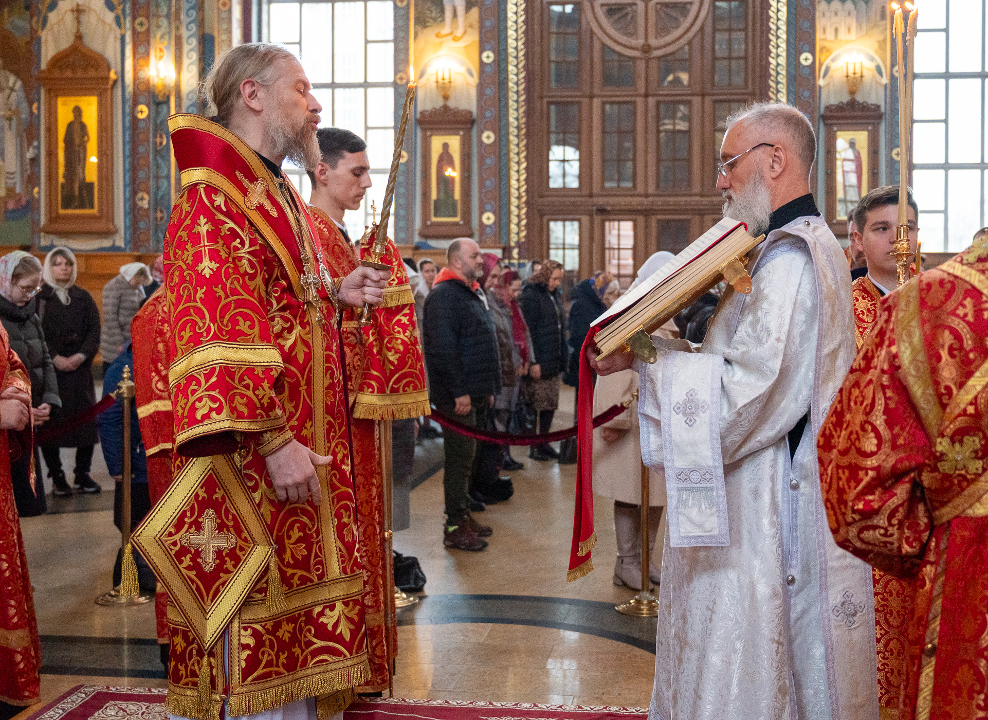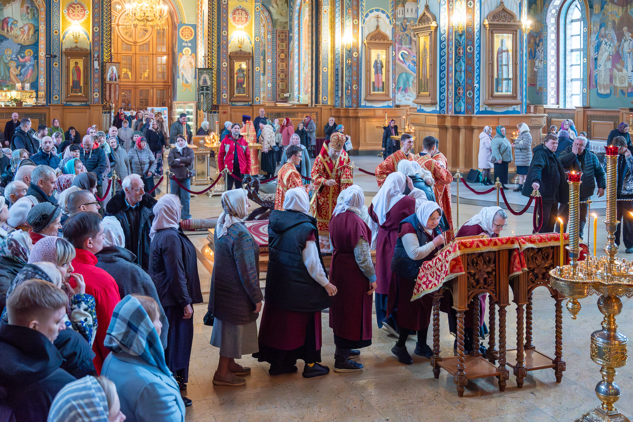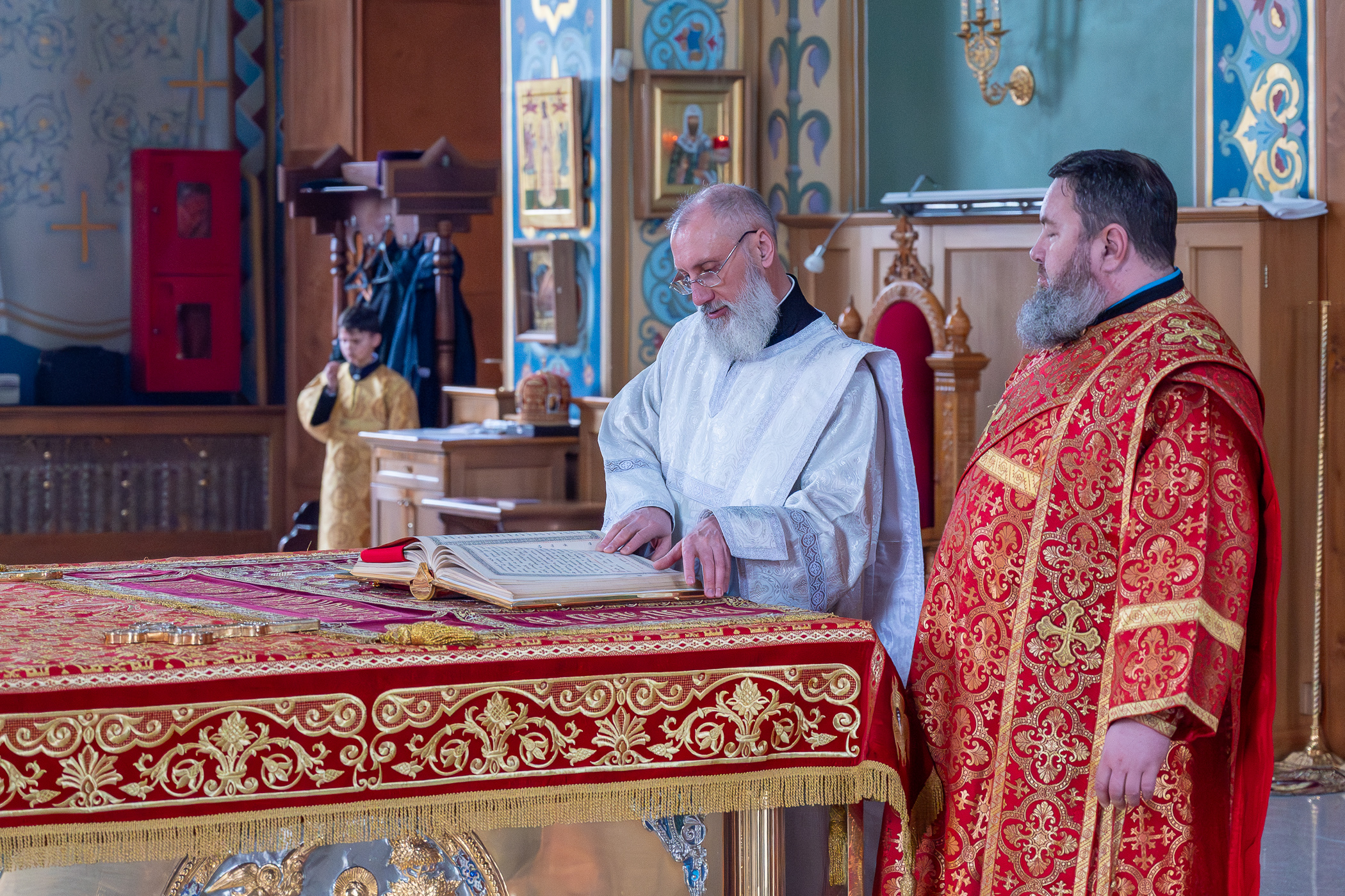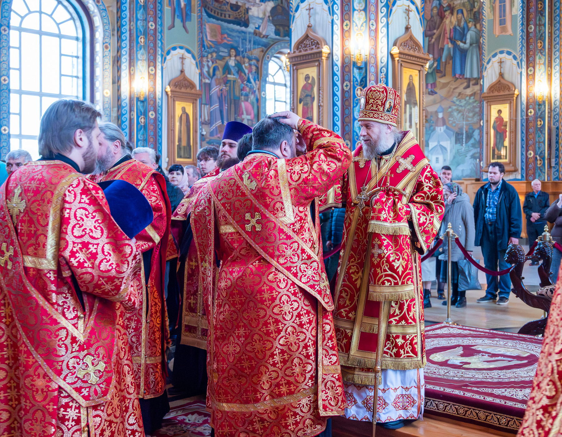 Во время чтения канонов Владыка совершил помазание духовенства и всех молящихся освященным елеем.
