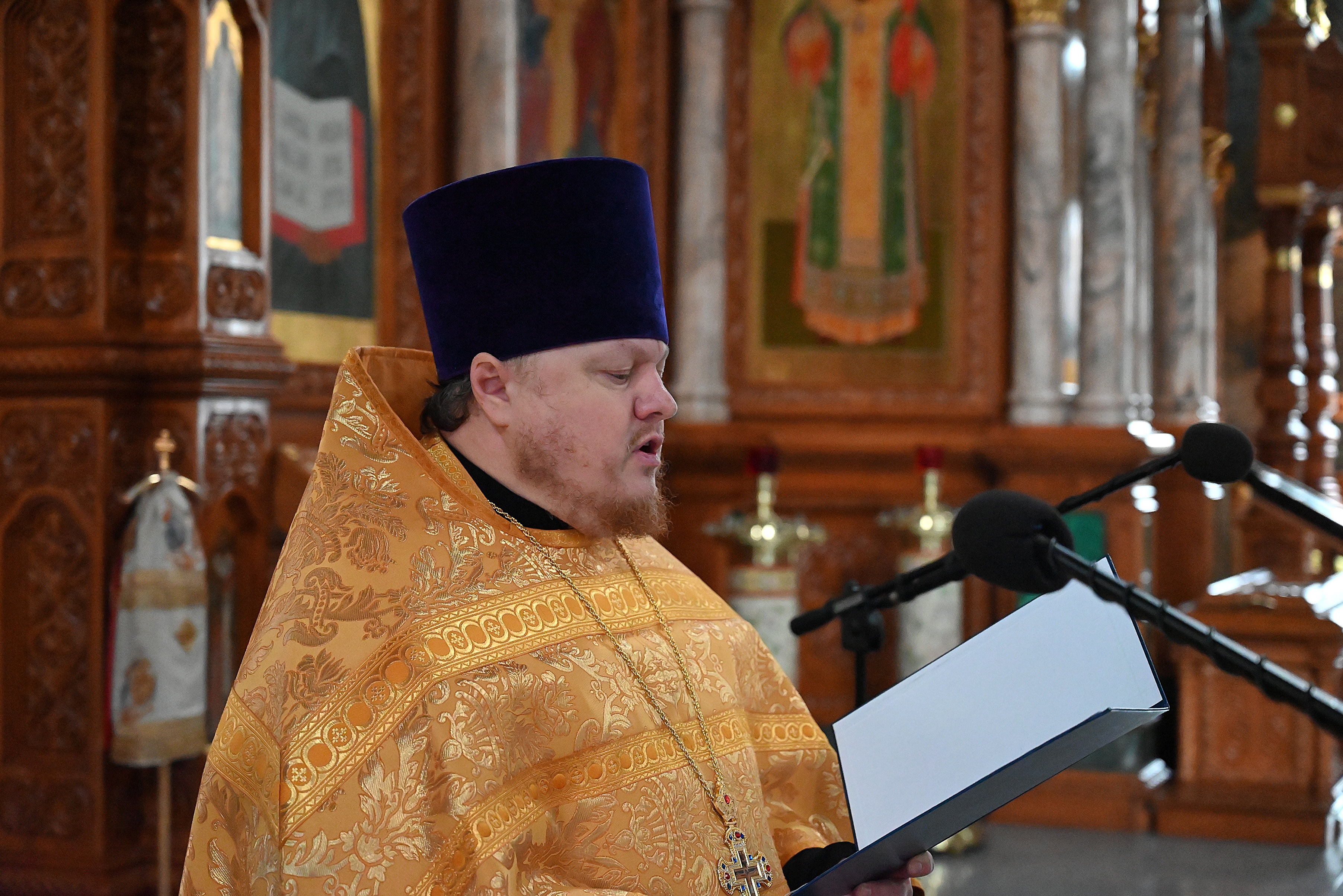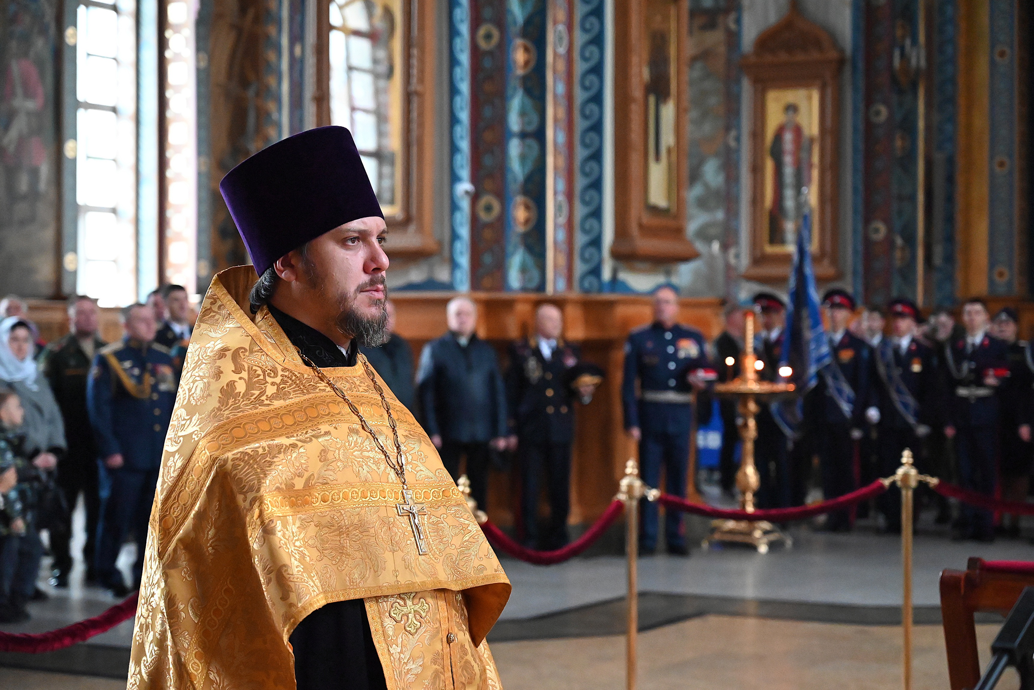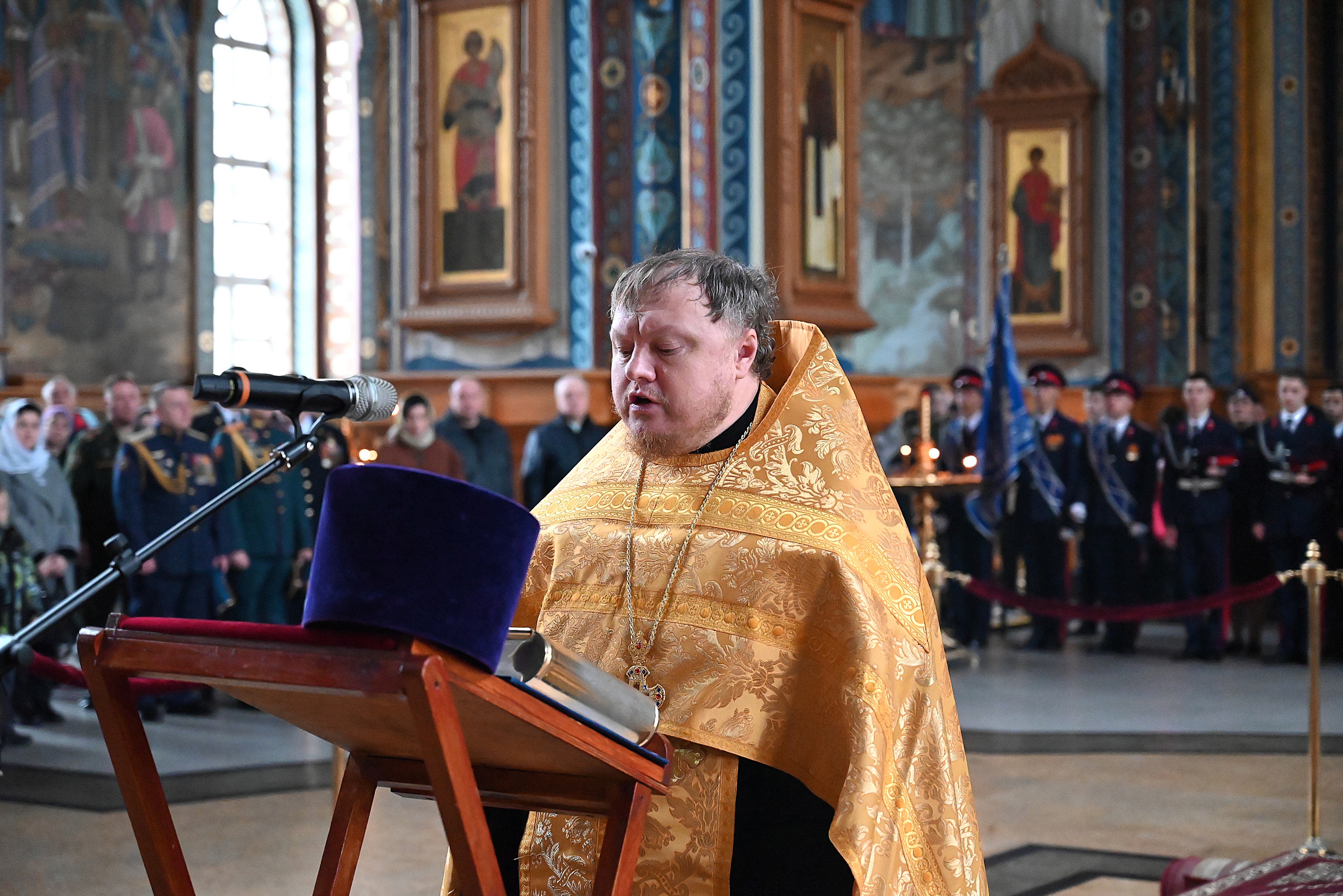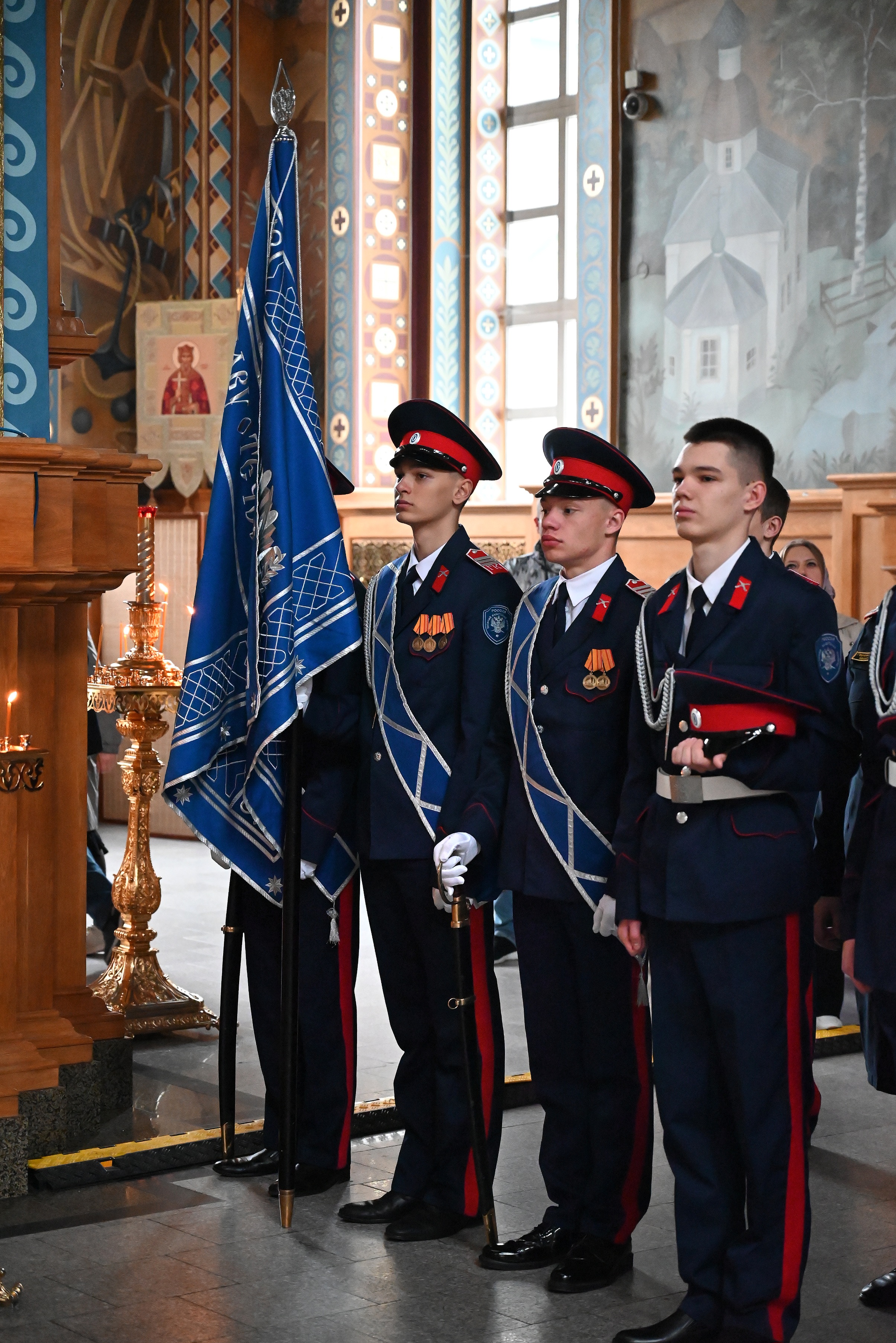 Чин молебна отслужили ключарь собора иерей Павел Колбасов и священник Сергий Мансуров. После окончания службы каждый кадет подошел к кресту, где священнослужители окропили их святой водой, благословляя на путь служения Отечеству.