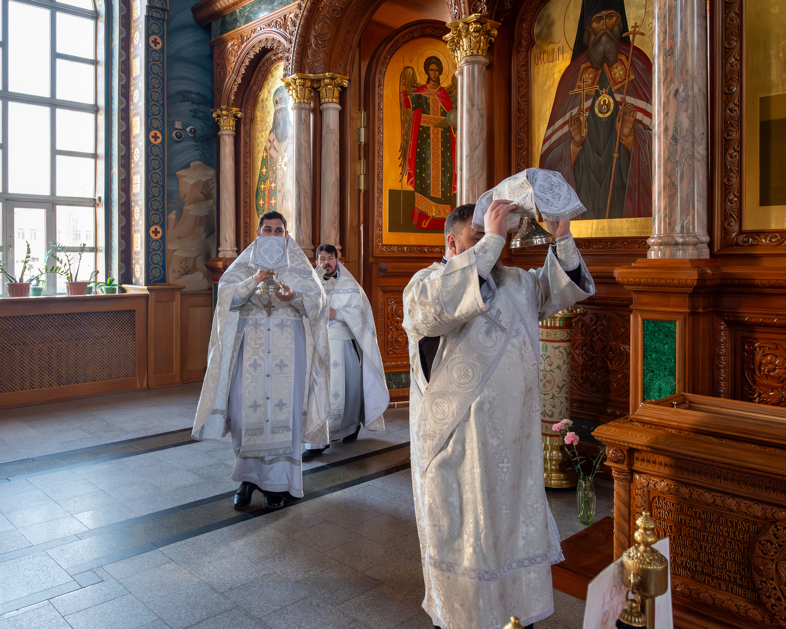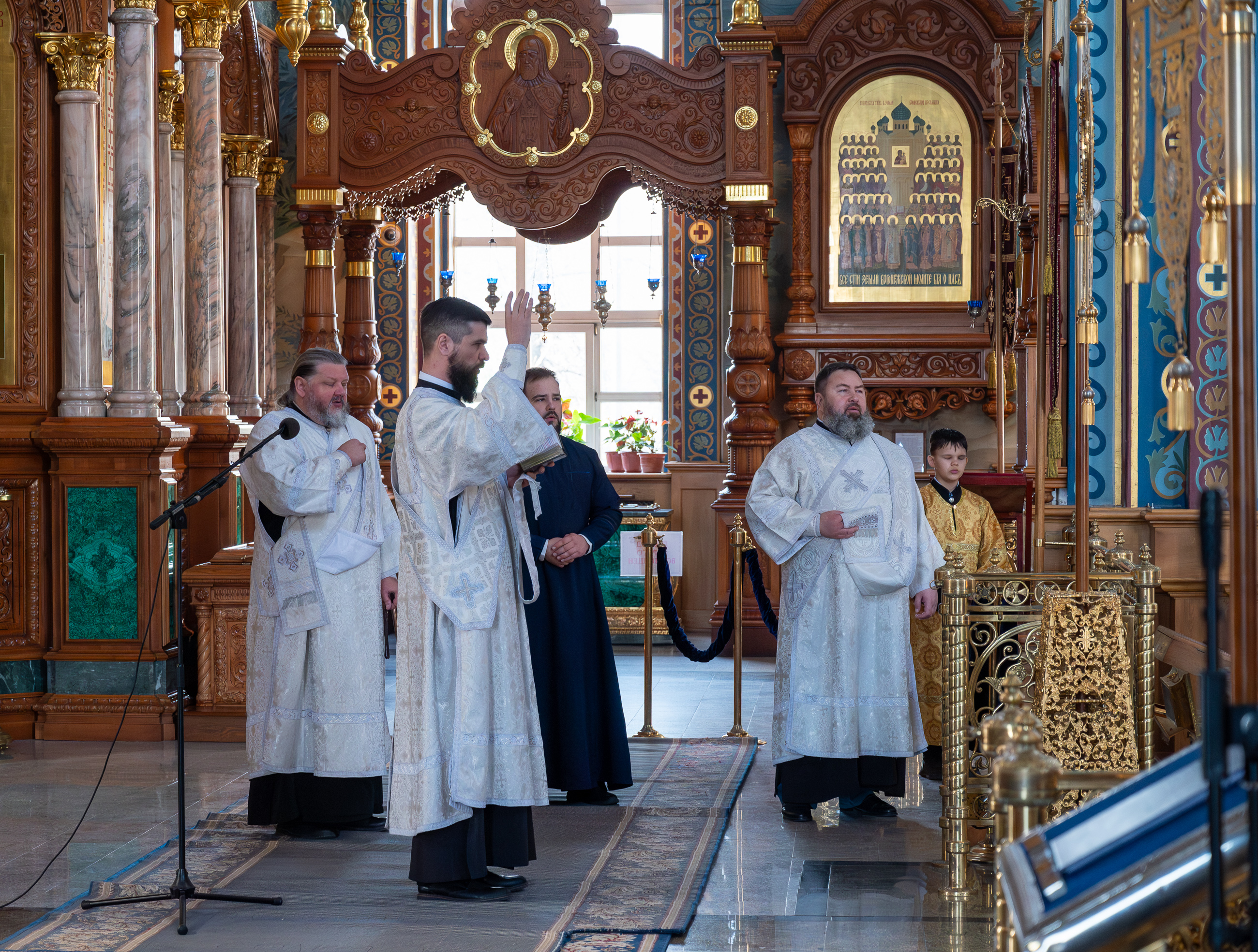 Богослужебные песнопения исполнил мужской хор Благовещенского кафедрального собора под управлением регента Михаила Перфильева.