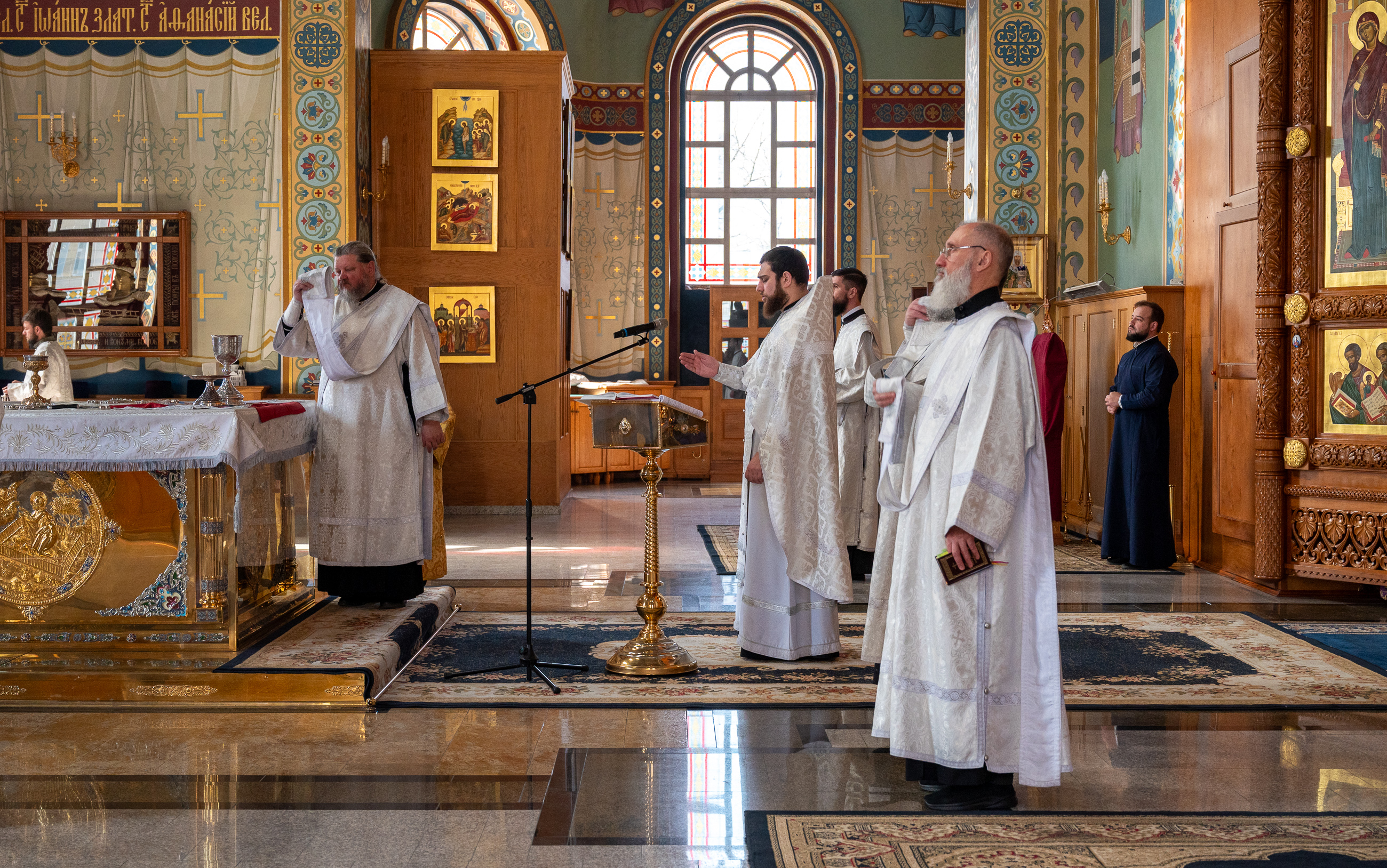 4 апреля 2026 года, в Лазареву субботу седмицы 6-й Великого Поста в Благовещенском кафедральном соборе города Воронеж была совершена Божественная литургия, которую возглавил ключарь собора иерей Леонид Куламов в сослужении клириков собора.