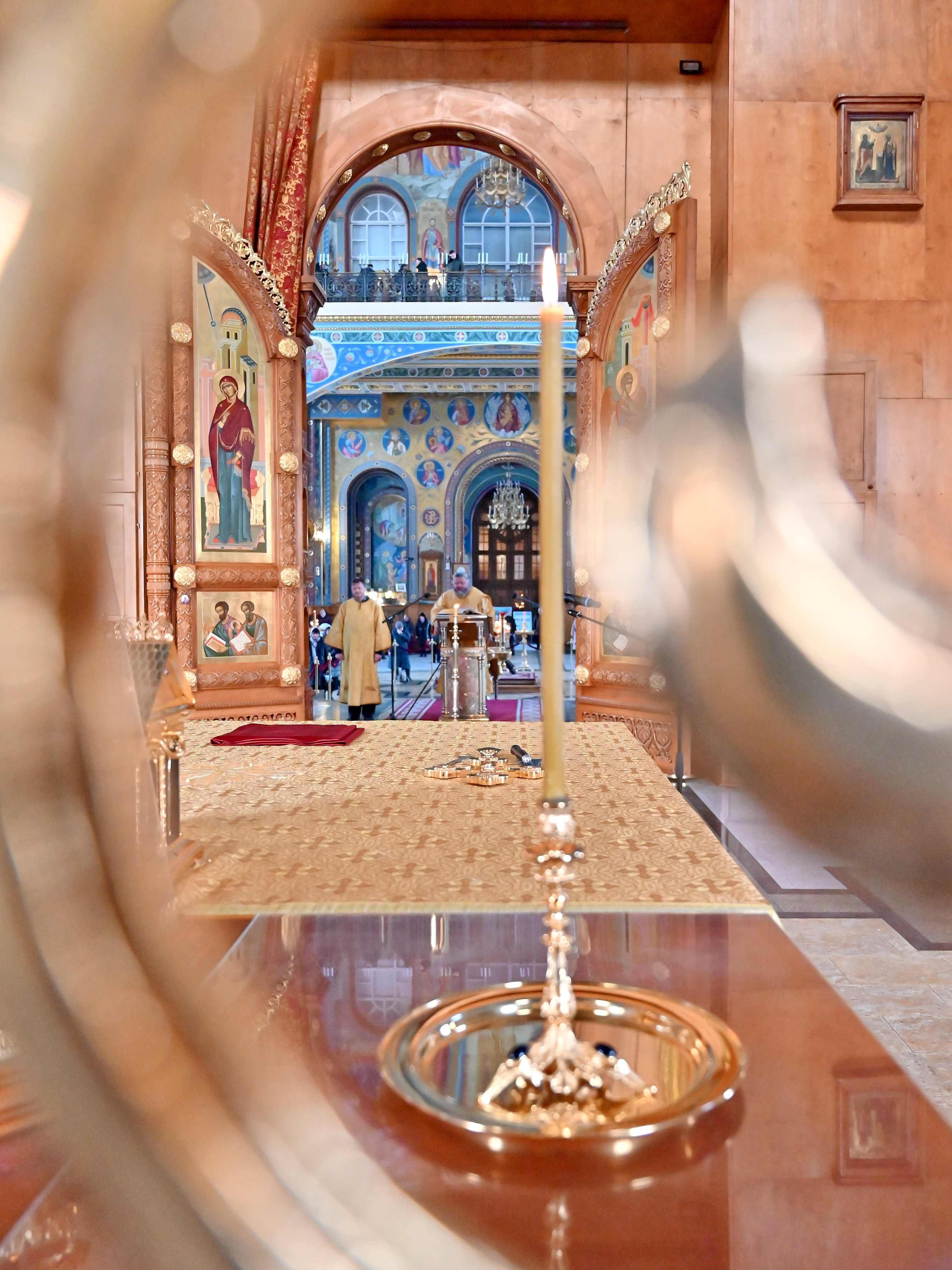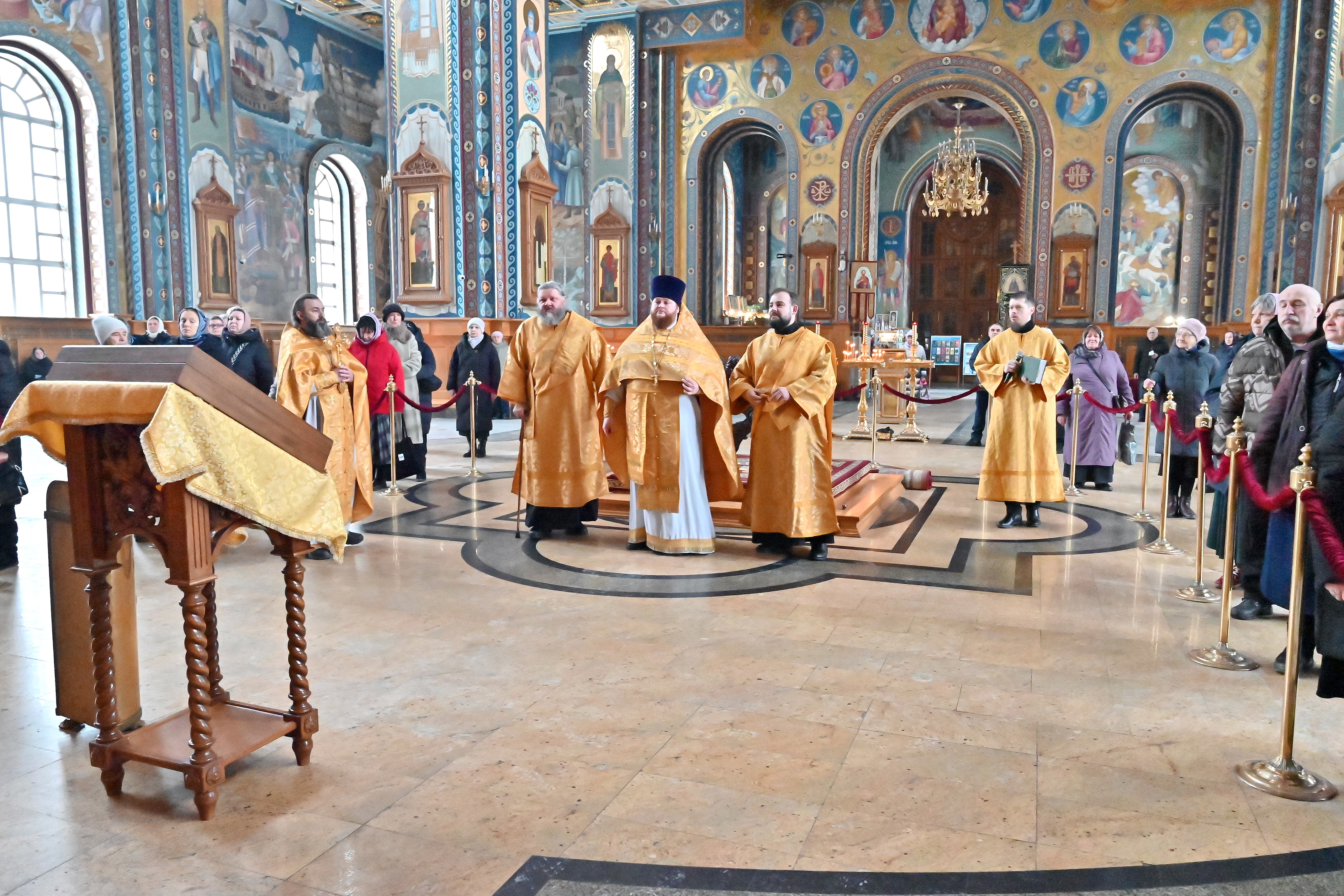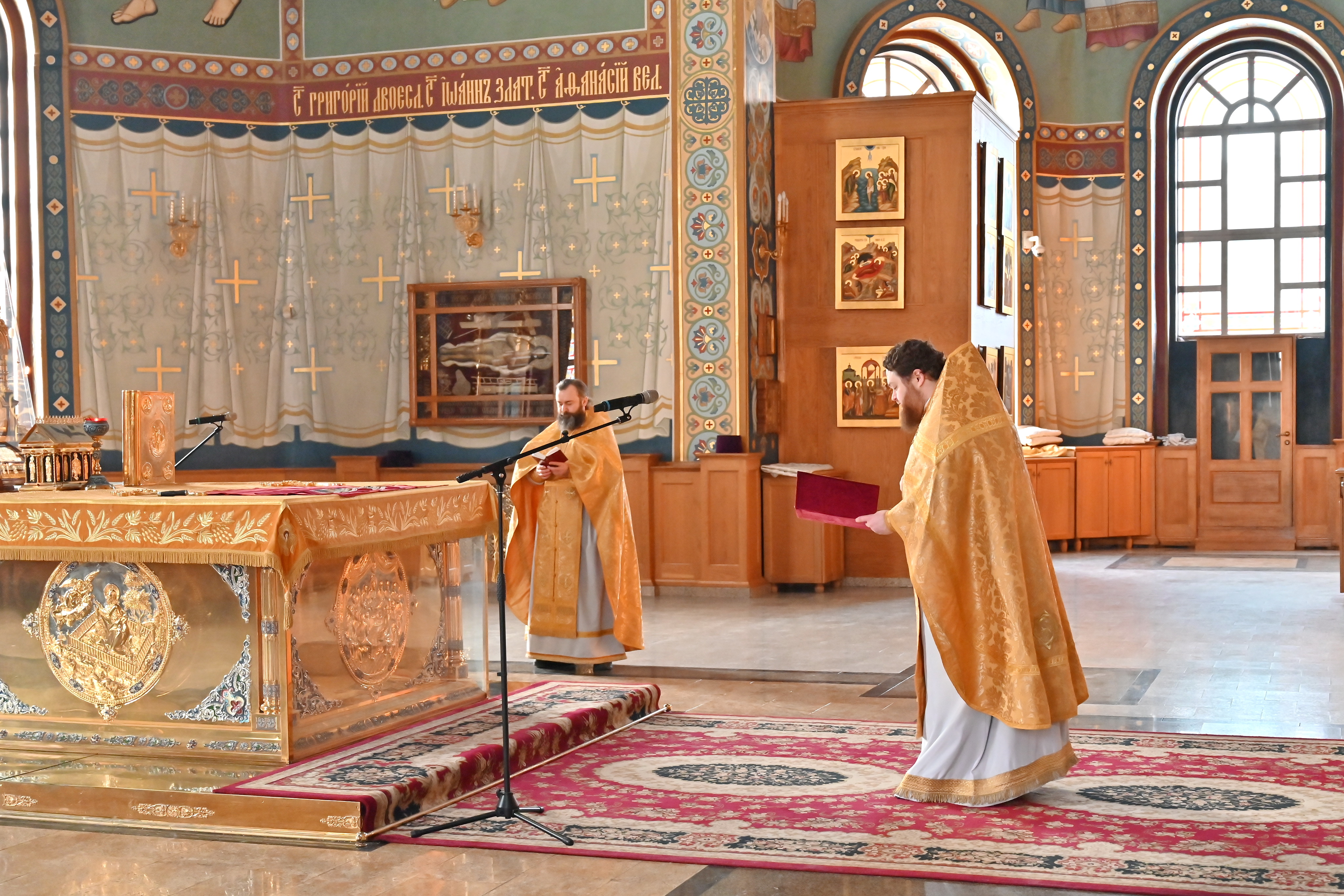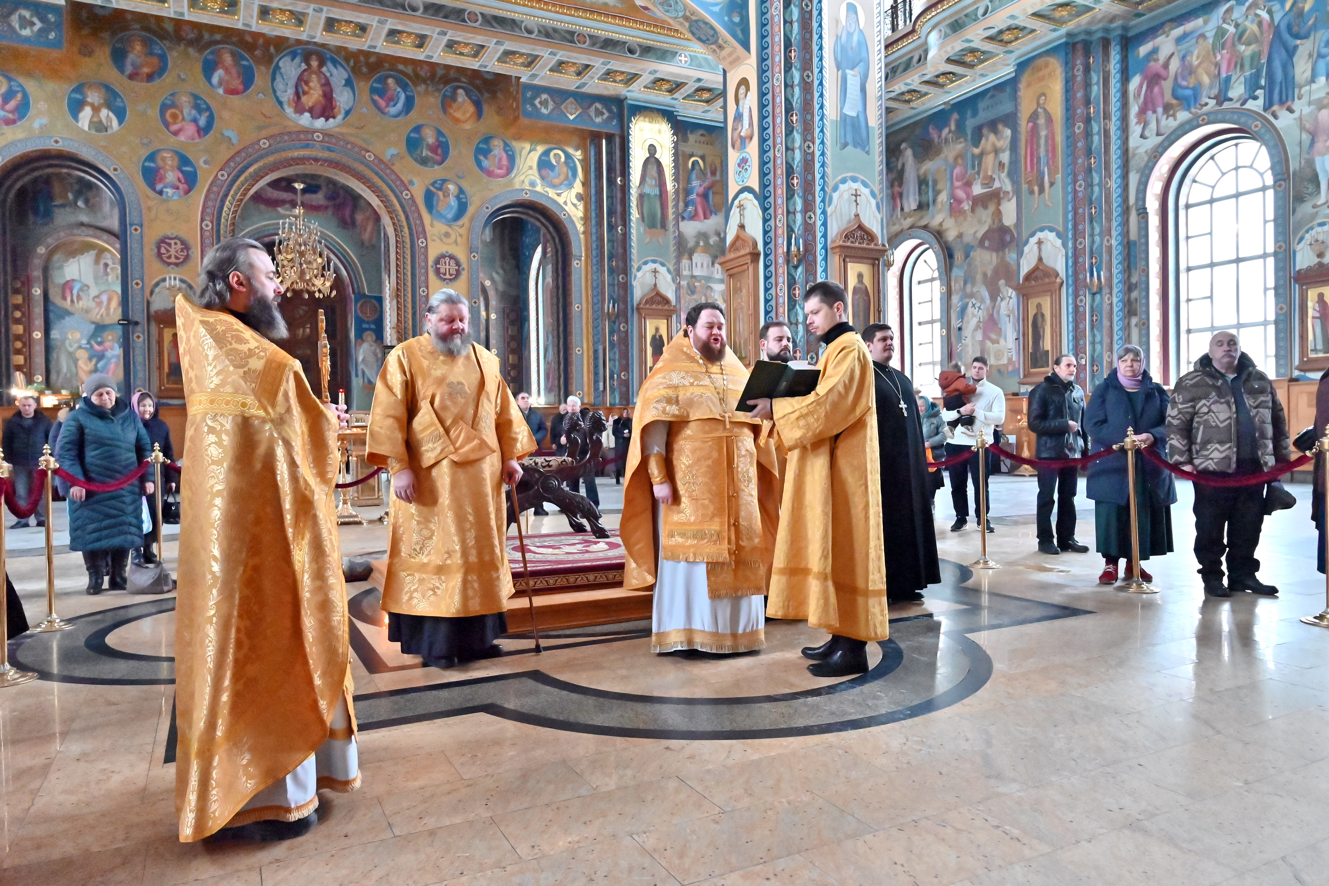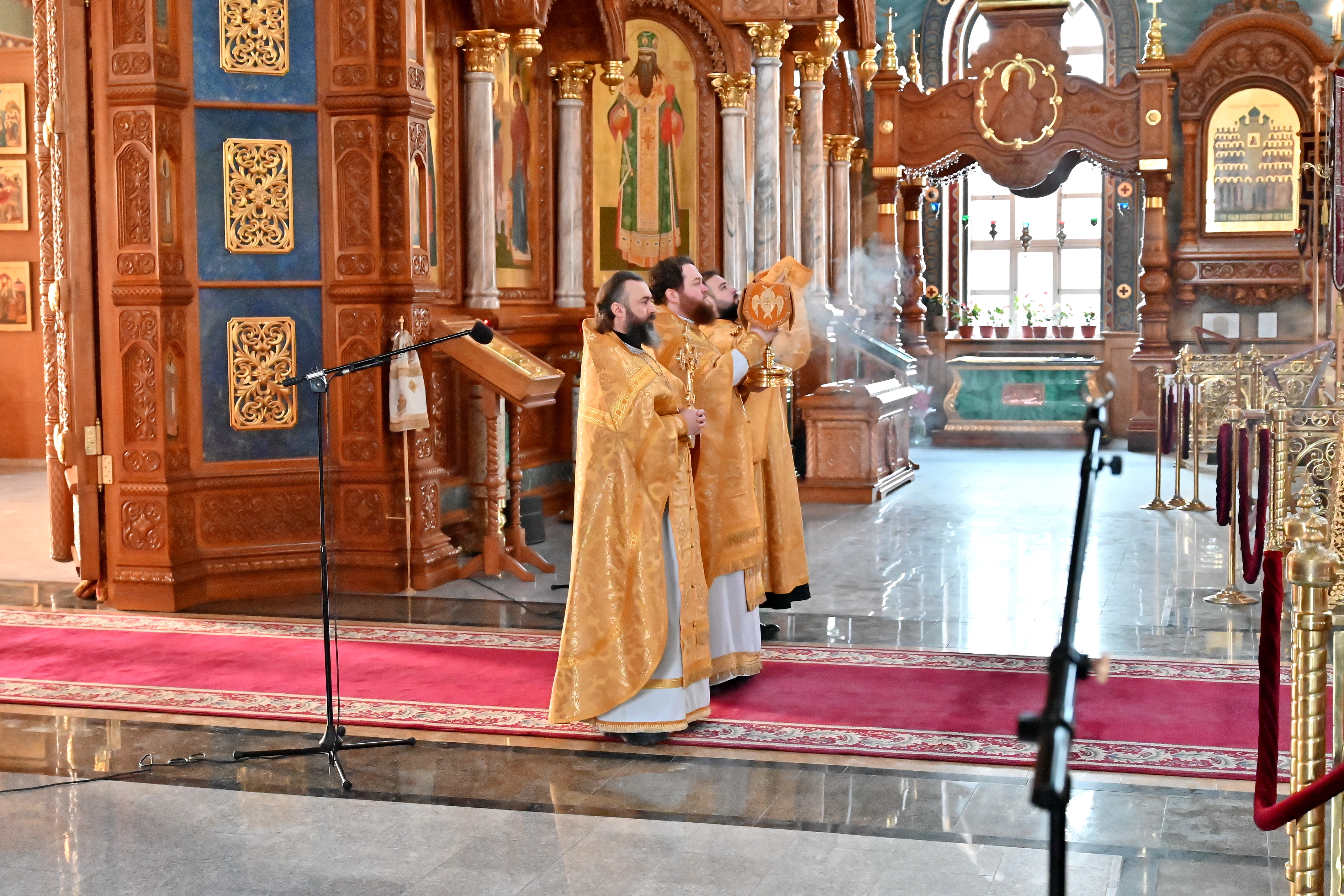 12 февраля 2026 года, в день празднования Собора вселенских учителей и святителей Василия Великого, Григория Богослова и Иоанна Златоуста, в верхнем храме Благовещенского кафедрального собора города Воронежа была совершена Божественная литургия.