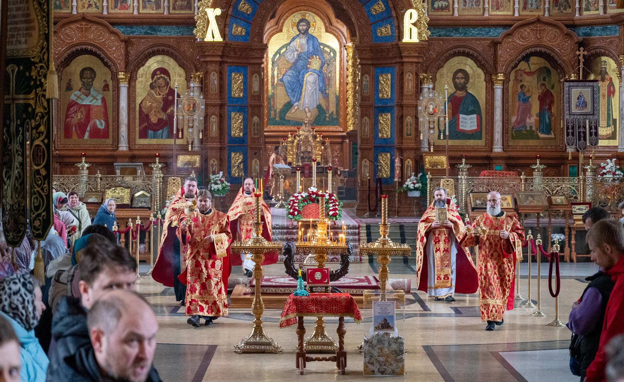 Торжественными песнопениями богослужение украсил мужской хор собора под управлением регента Михаила Перфильева.