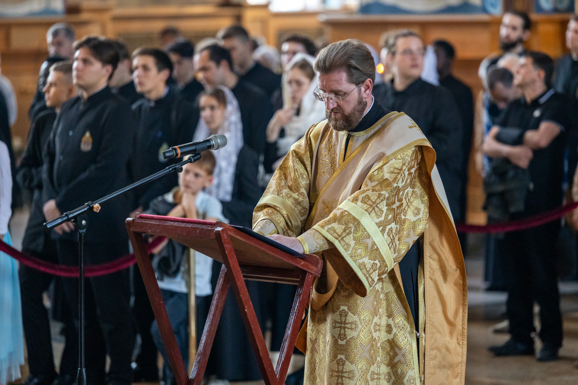 После пения антифона 4 гласа и прокимна глава Воронежской митрополии возгласил евангельское зачало, читаемое в дни памяти святых угодников Божиих, содержавшее фрагмент Нагорной проповеди Господа нашего Иисуса Христа – заповеди Блаженства (Мф. 10 зач., IV, 25 – V, 12).