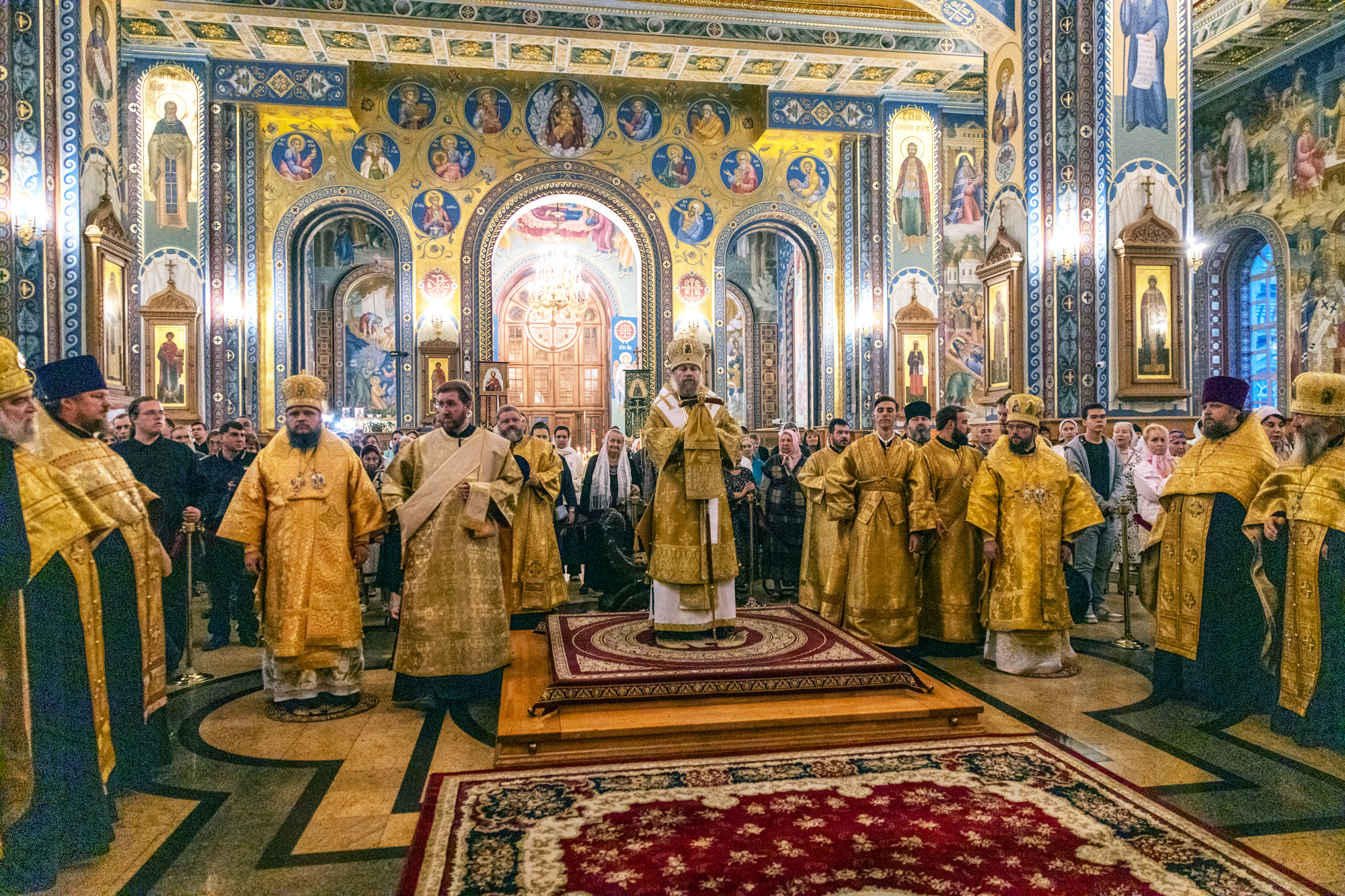 Всенощное бдение совершили митрополит Воронежский и Лискинский Леонтий, глава Воронежской митрополии, епископ Борисоглебский и Бутурлиновский Сергий, епископ Россошанский и Острогожский Дионисий. Архипастырям сослужил сонм клириков митрополии – настоятели епархиальных мужских монастырей, члены Епархиальных советов и благочинные церковных округов Воронежской, Борисоглебской и Россошанской епархий, сонм духовенства Воронежской митрополии.