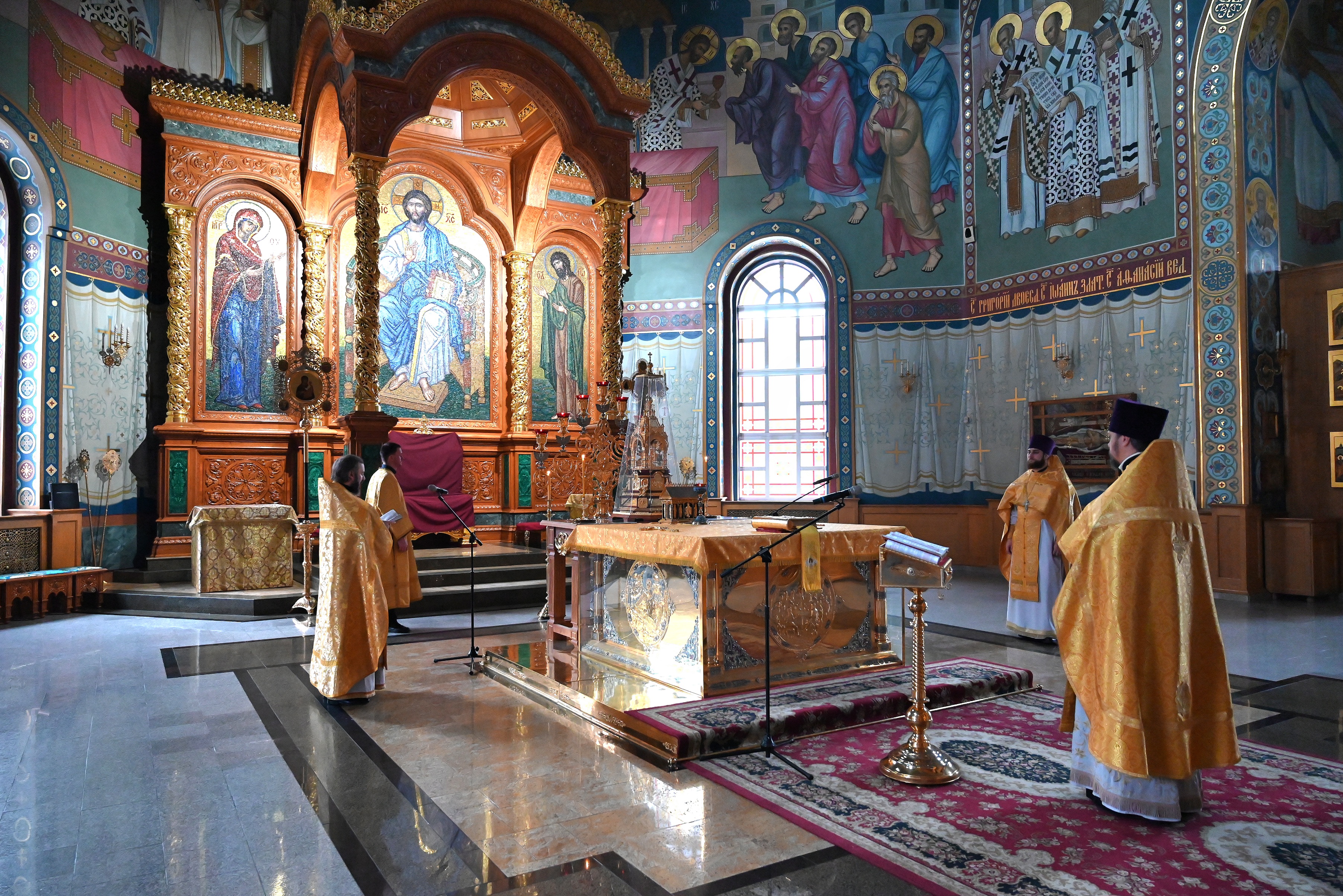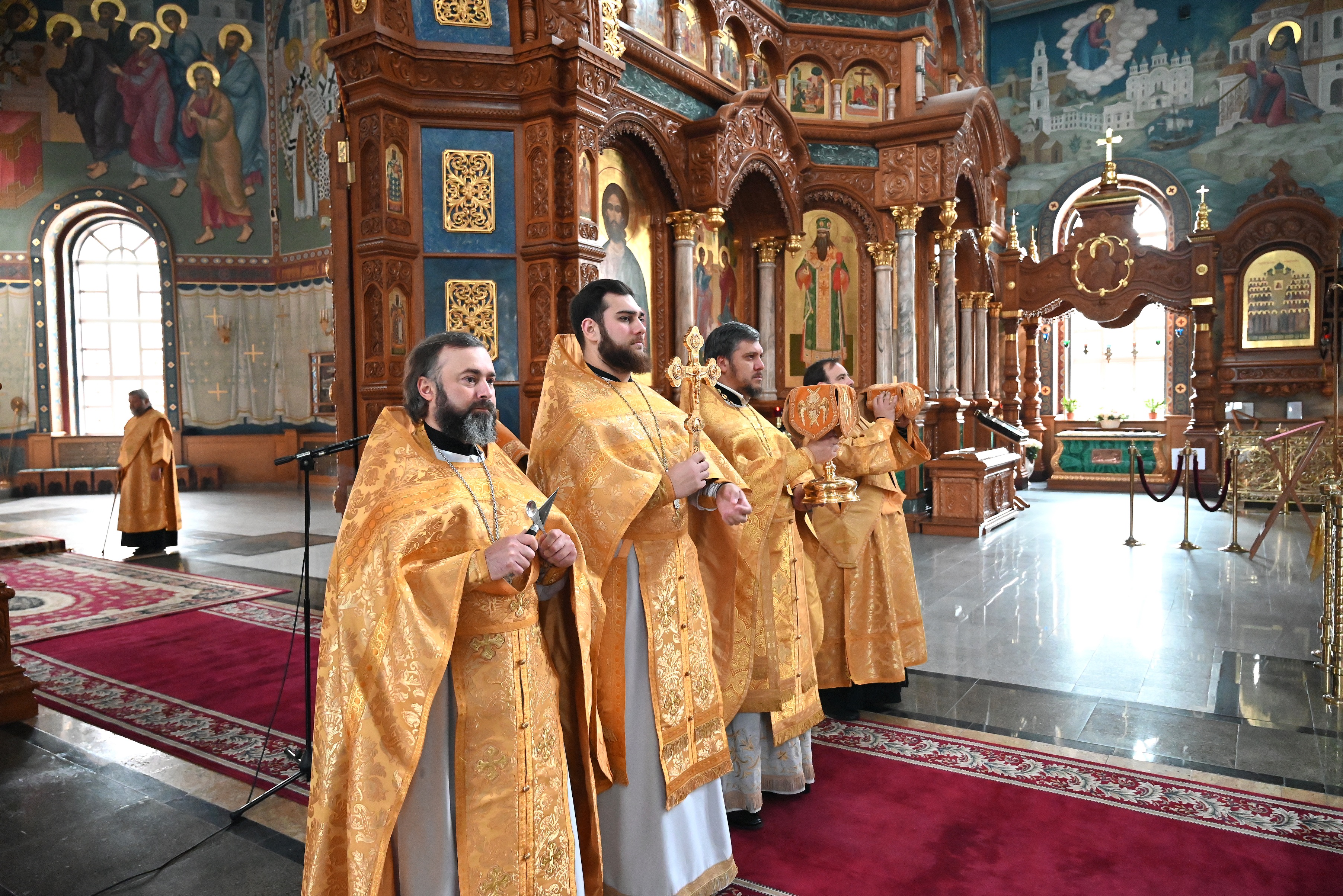Богослужение возглавил ключарь кафедрального собора иерей Павел Колбасов, в сослужении клириков храма.